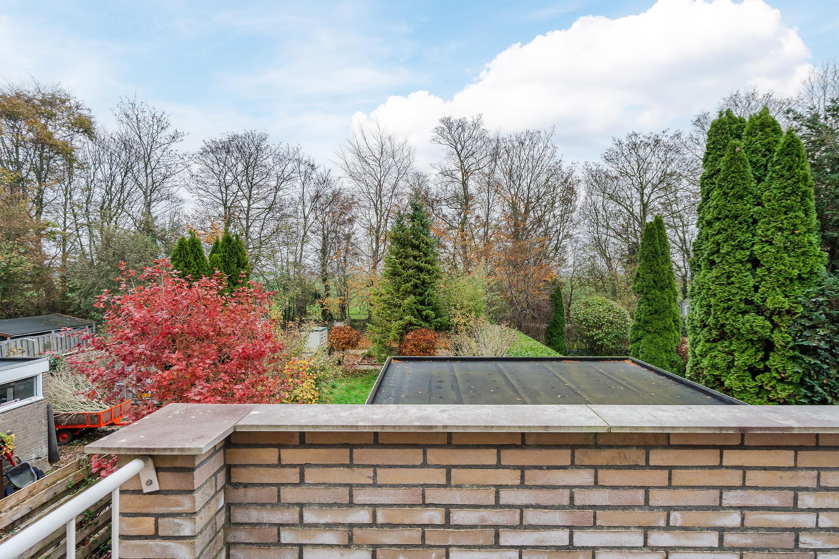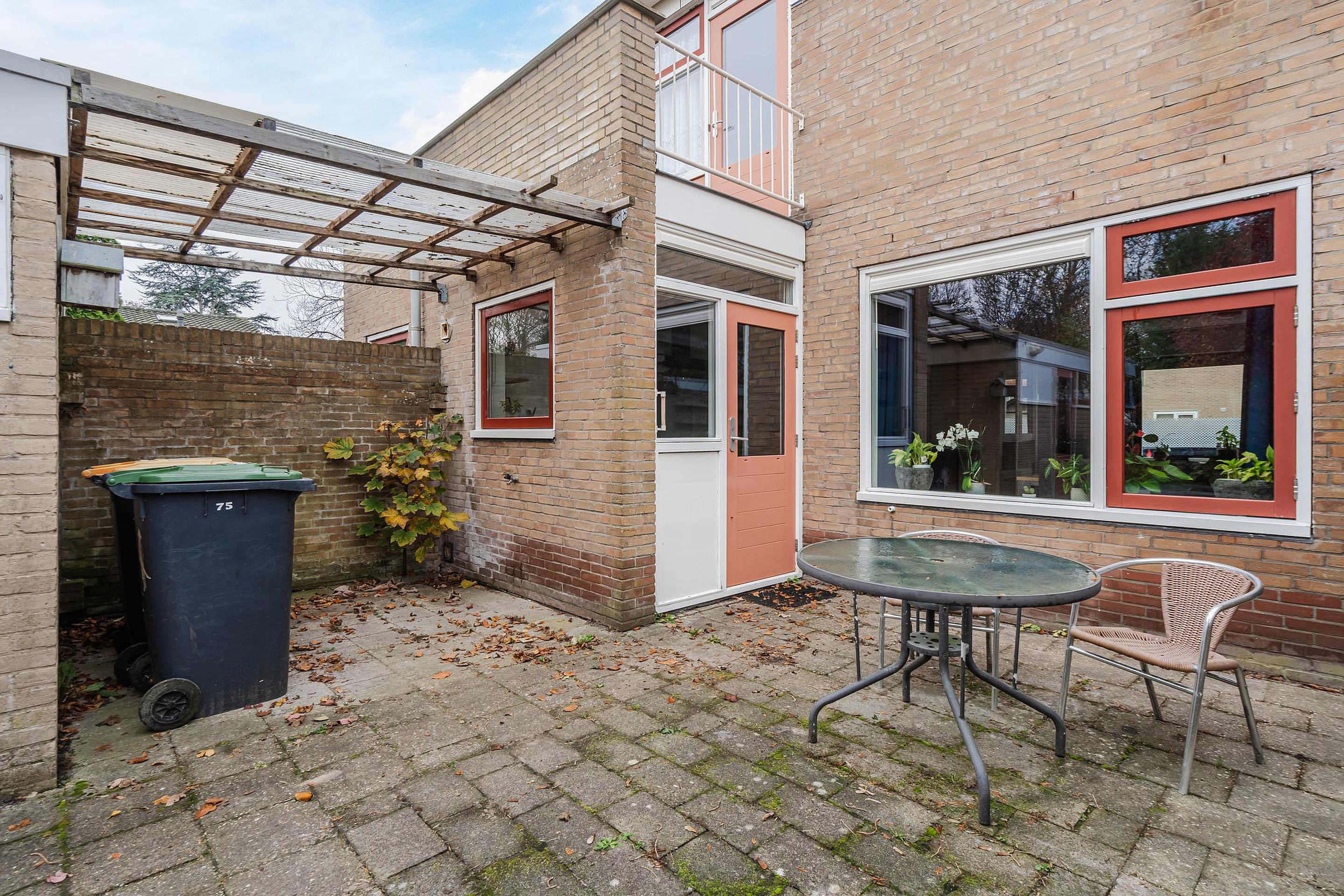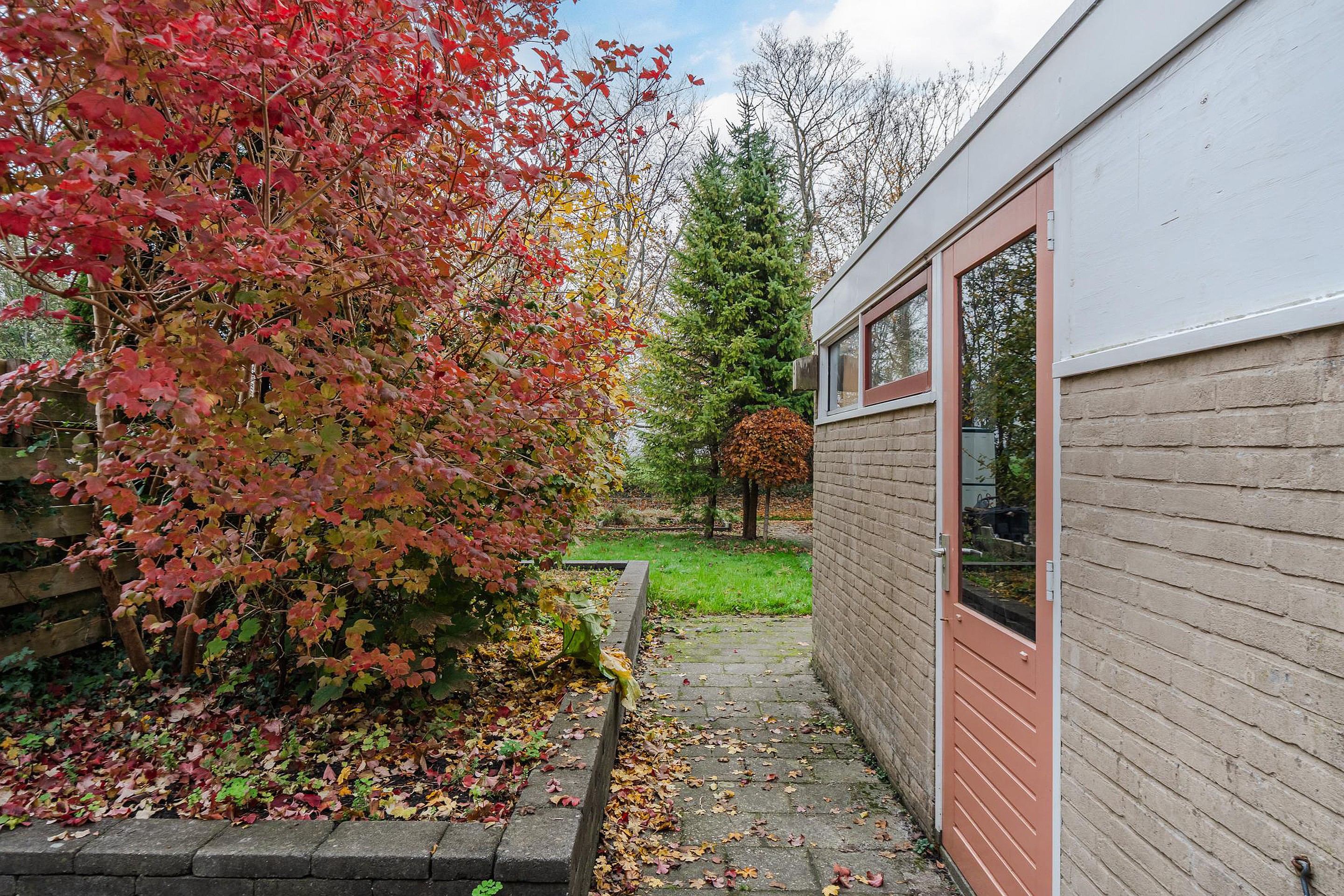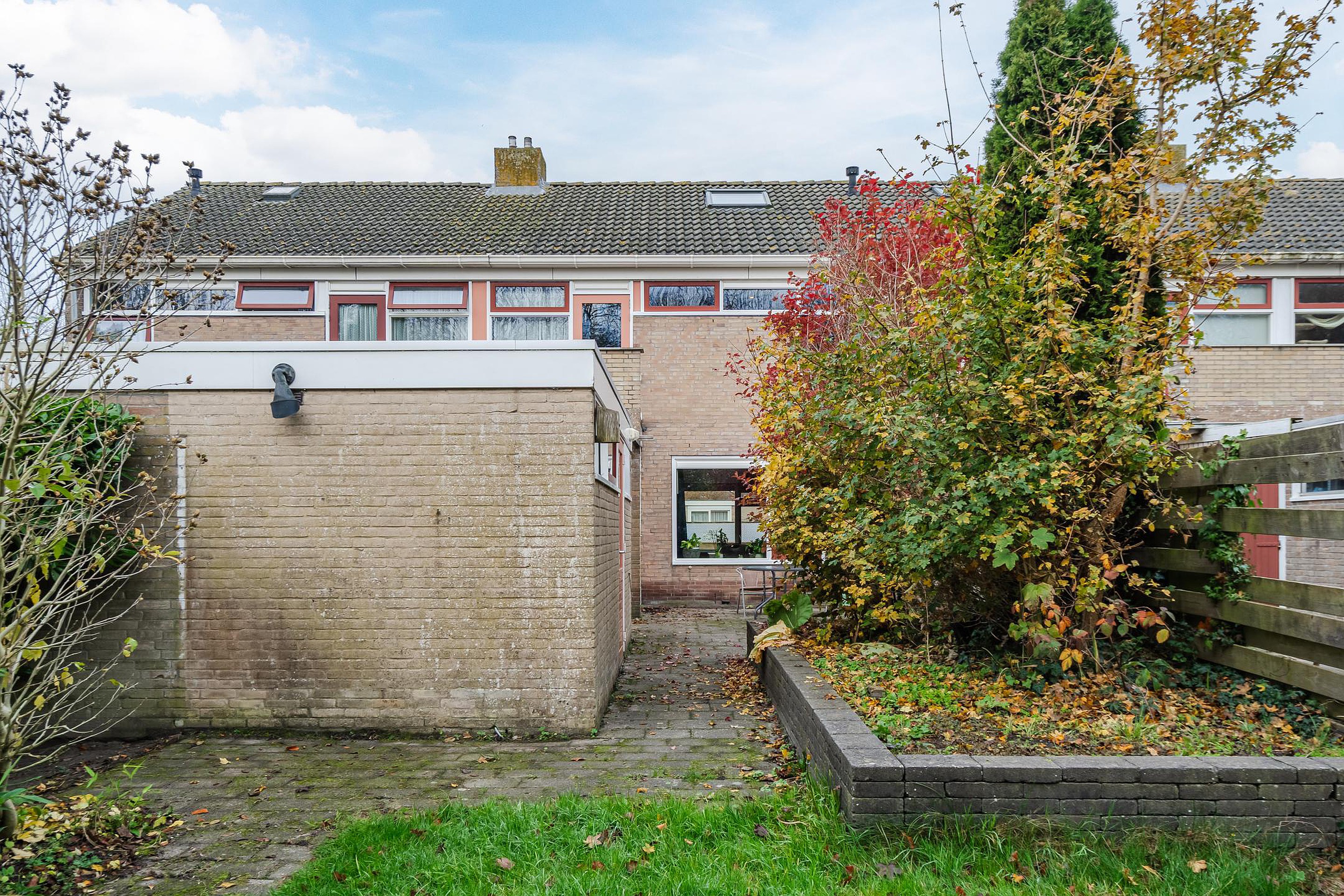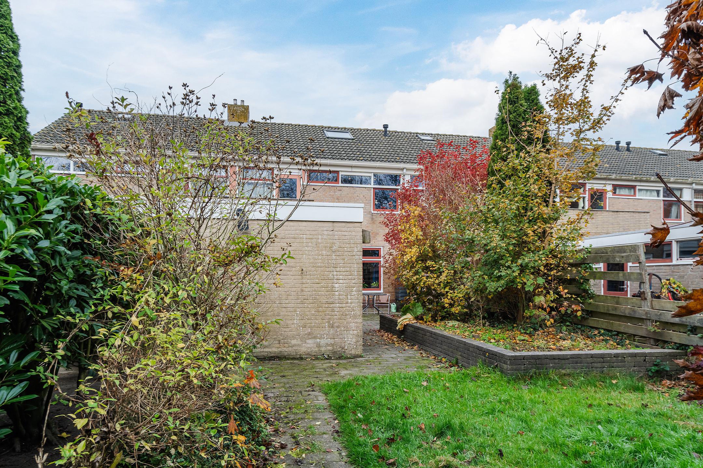 De achtertuin heeft een achterom en is circa 24 meter diep, is gedeeltelijk voorzien van sierbestrating, een verhoogde border, sierbeplanting zoals bomen en struikjes en een kleine moestuin aan het achterste gedeelte. Verder staat er nog een afsluitbare stenen berging, zijn er elektra en verlichtingspunten aangebracht en is er een buitenkraan aanwezig.