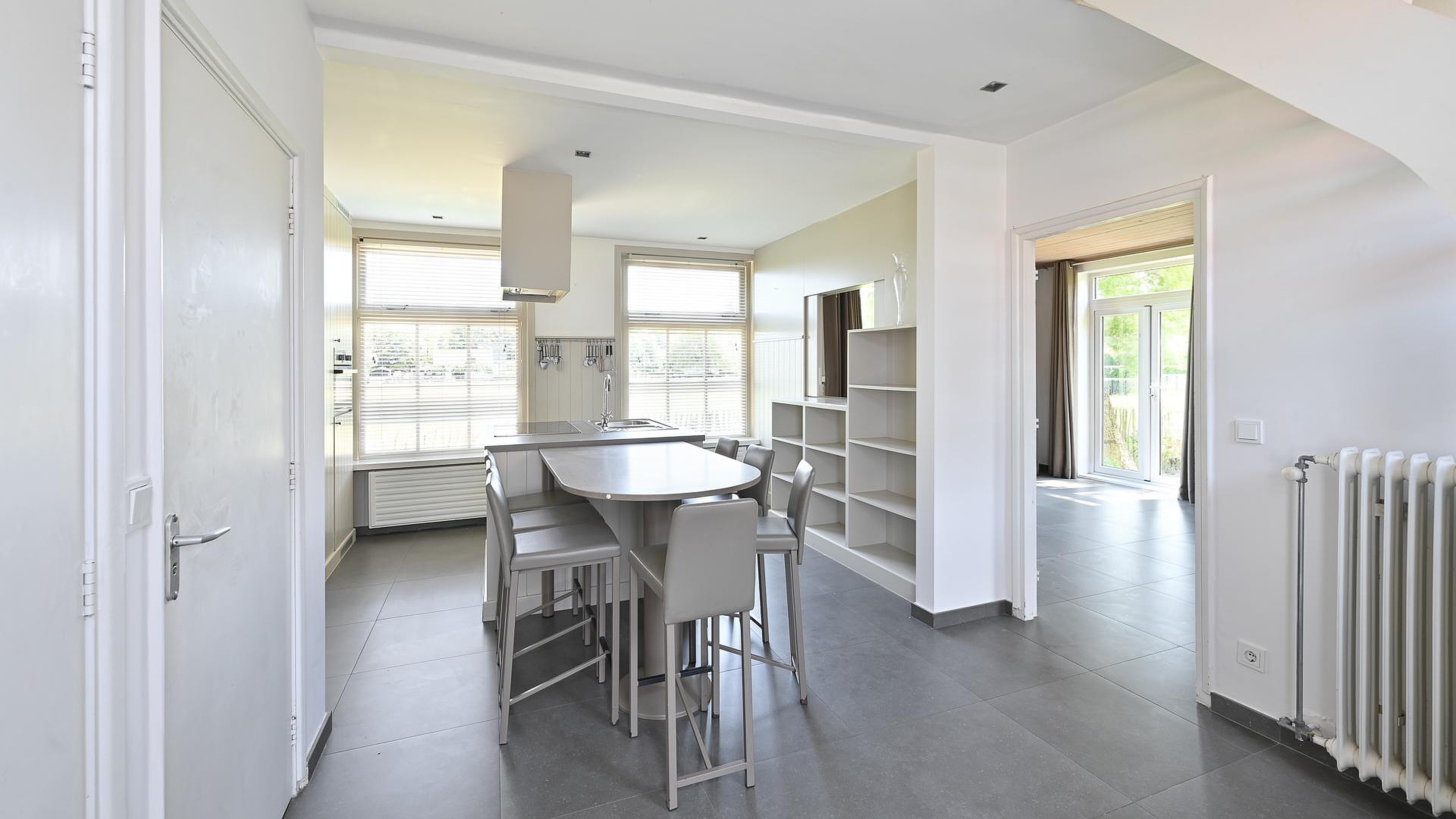 Bij binnenkomst valt direct de keuken op, die is uitgevoerd met een landelijk kookeiland. De aansluitende bartafel maakt deze ruimte tot een echte ontmoetingsplek, waar koken en gezellig samenzijn moeiteloos samengaan. Dankzij de inbouwapparatuur en de royale werkruimte is de keuken niet alleen praktisch, maar ook een echte eyecatcher.