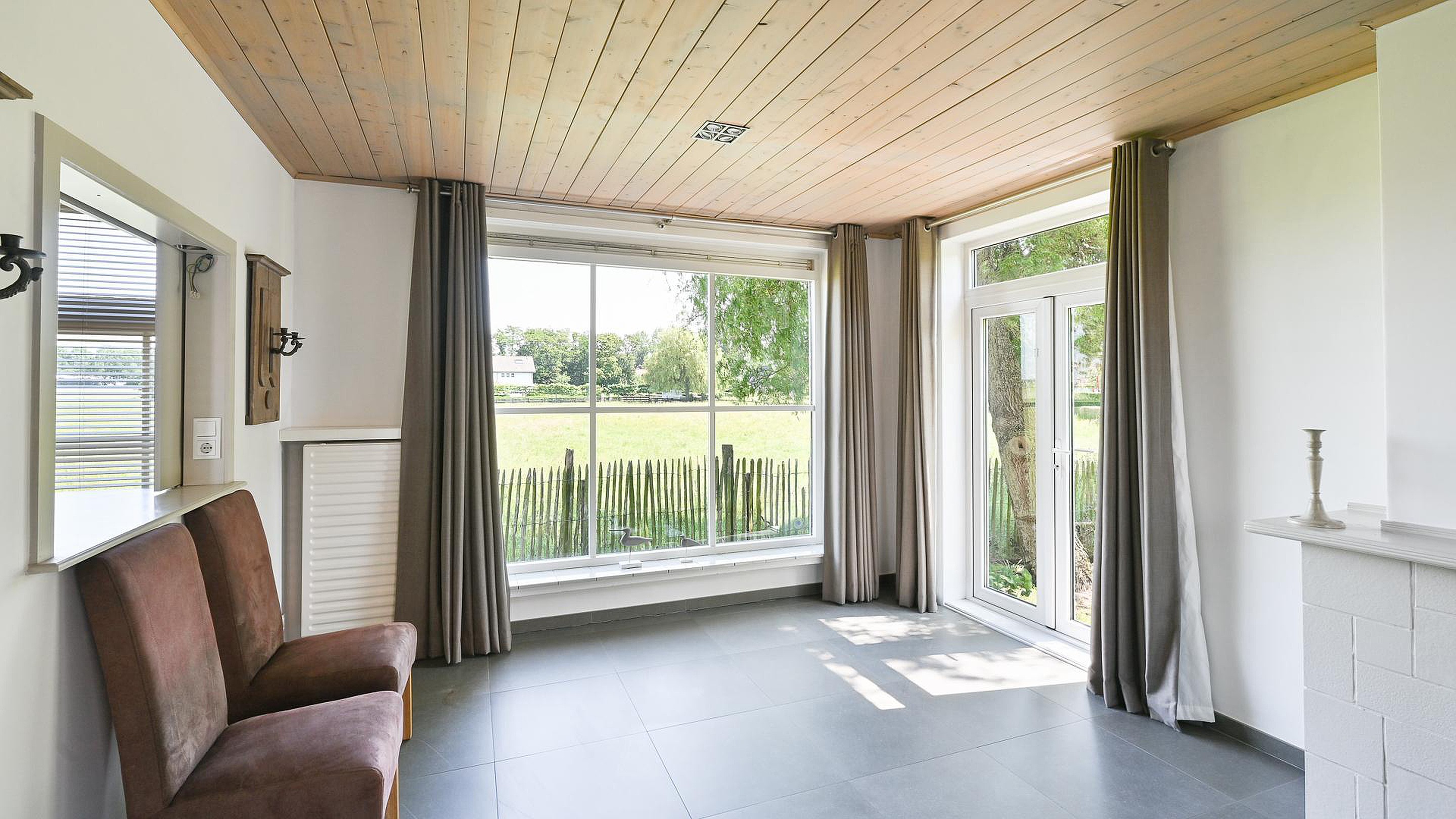 Vanuit de keuken bereikt u de gezellige woonkamer, waar grote raampartijen zorgen voor een prachtige lichtinval en een vrij uitzicht over de omliggende polders. De open haard voegt hier extra warmte en sfeer toe, waardoor dit een heerlijke ruimte is om te ontspannen. Via de openslaande deuren heeft u directe toegang tot de achtertuin.