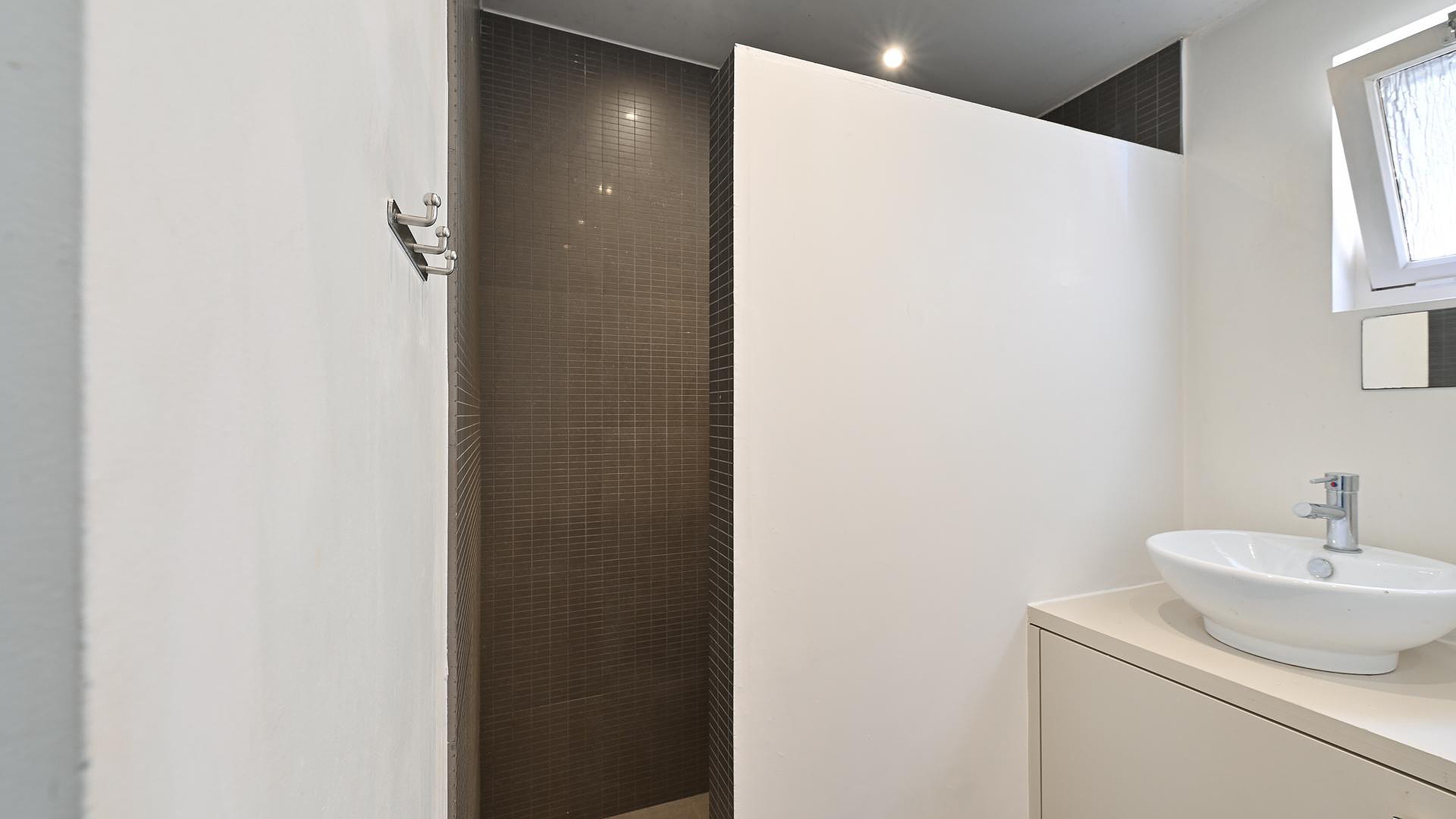 De woning beschikt daarnaast over een nette badkamer, voorzien van een dubbele wastafel met meubel en een ruime inloopdouche, uitgevoerd in een stijlvolle afwerking.
