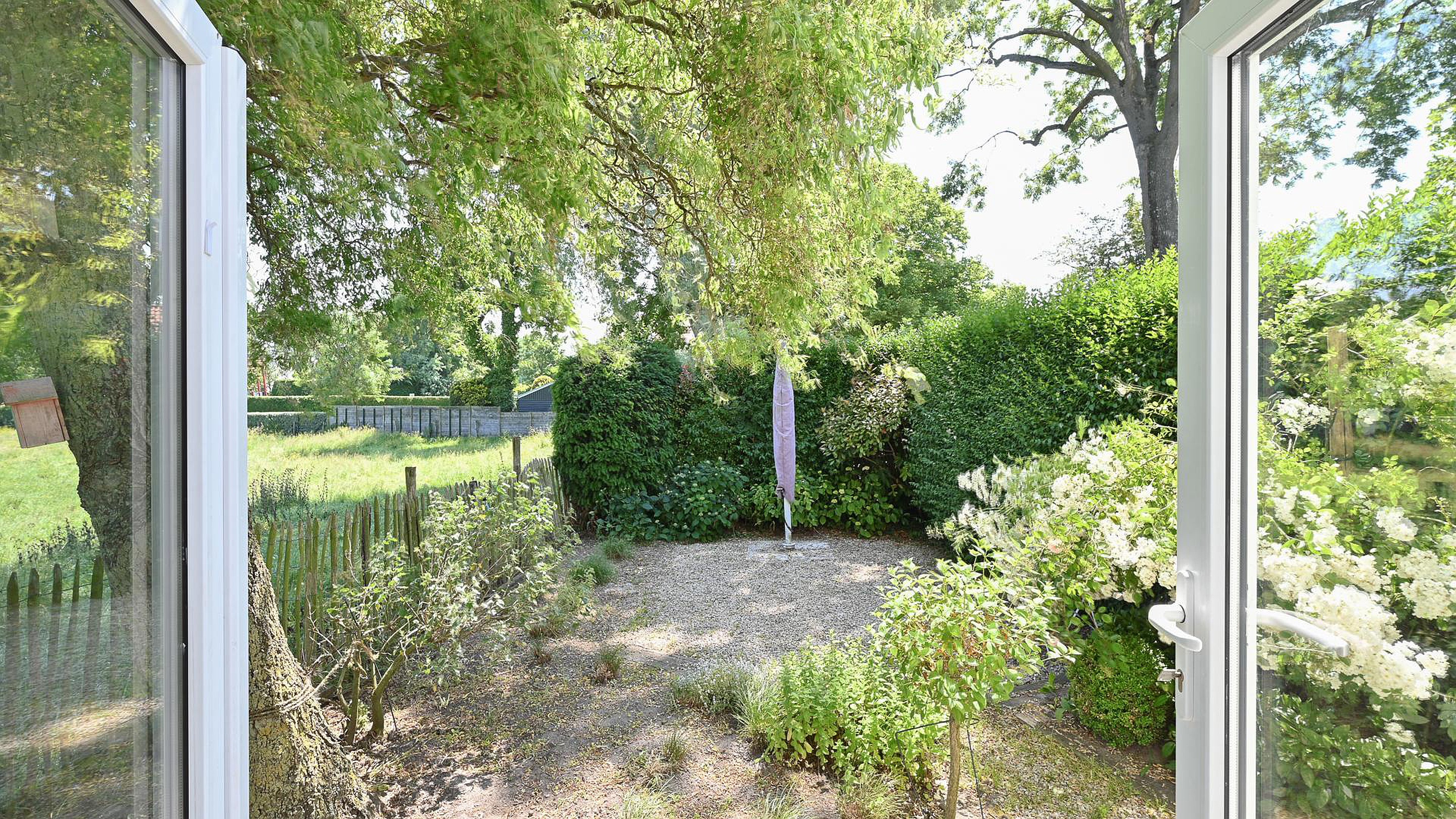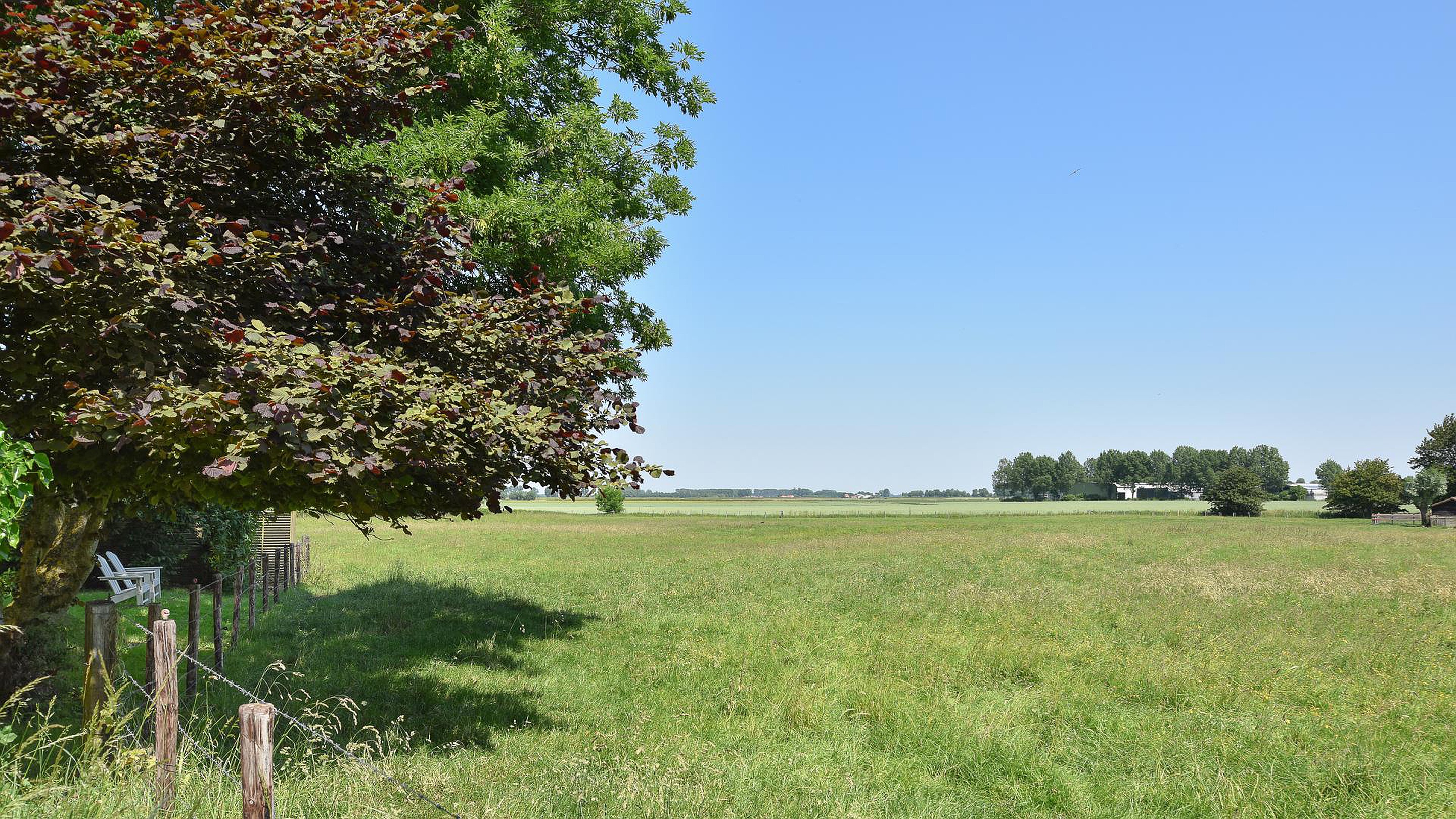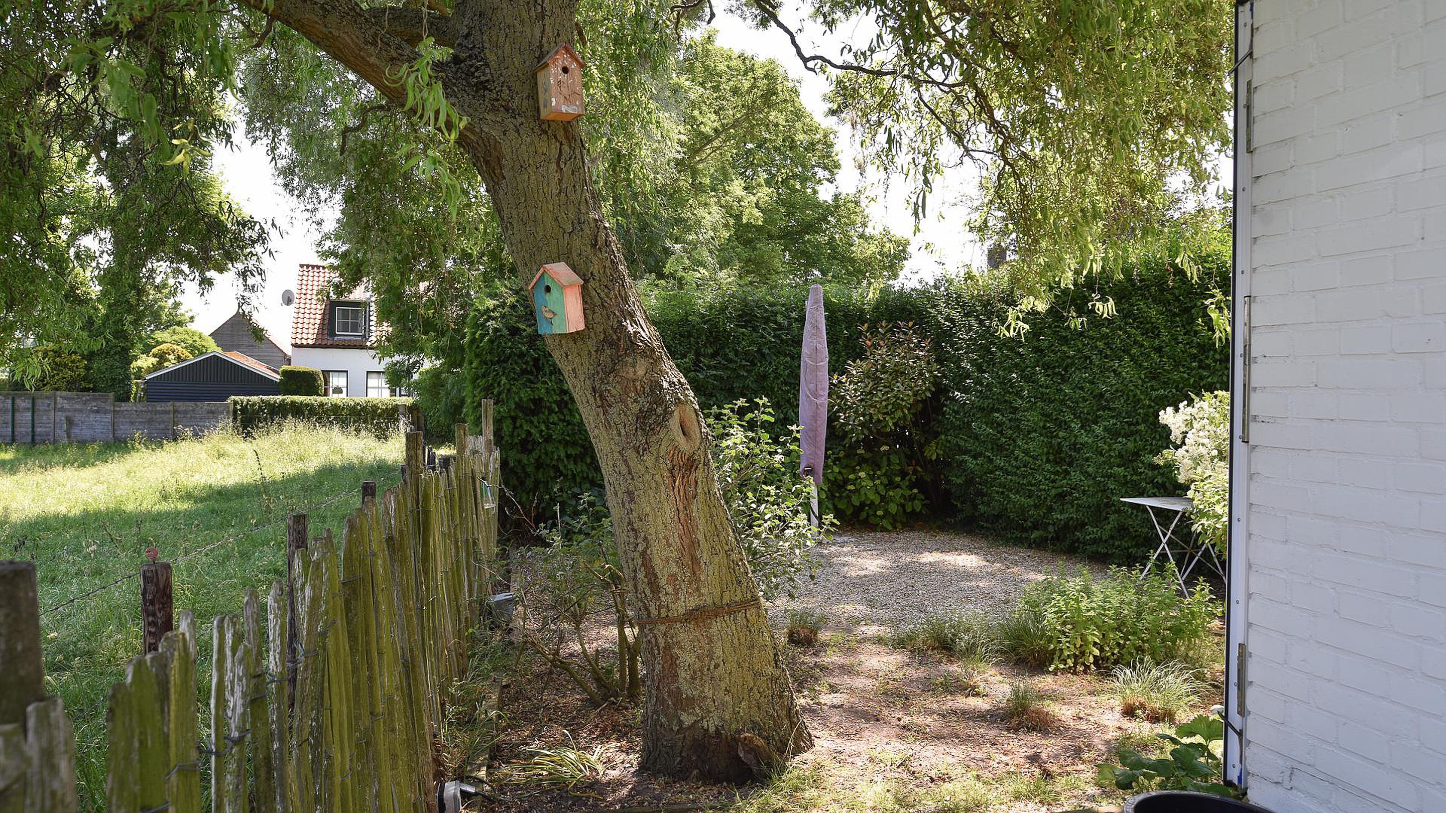 De knusse achtertuin biedt volop privacy en een prachtig uitzicht over de polders van Sint Anna ter Muiden en Sluis. Een heerlijke plek om in alle rust buiten te zitten en te genieten van het weidse landschap.