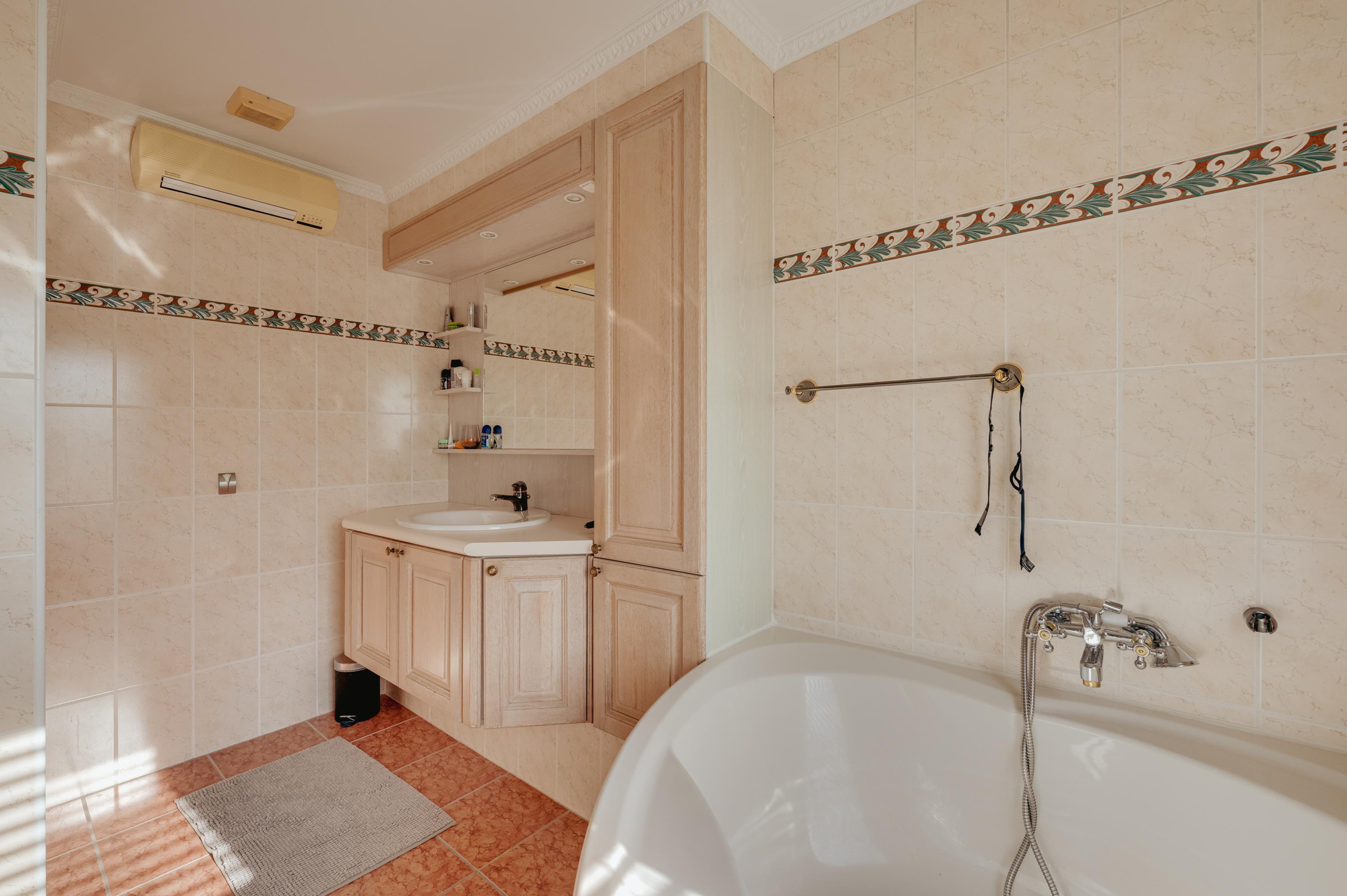 Op de eerste verdieping bevinden zich drie slaapkamers en een badkamer, die is voorzien van een douche, bad, wastafel en toilet.