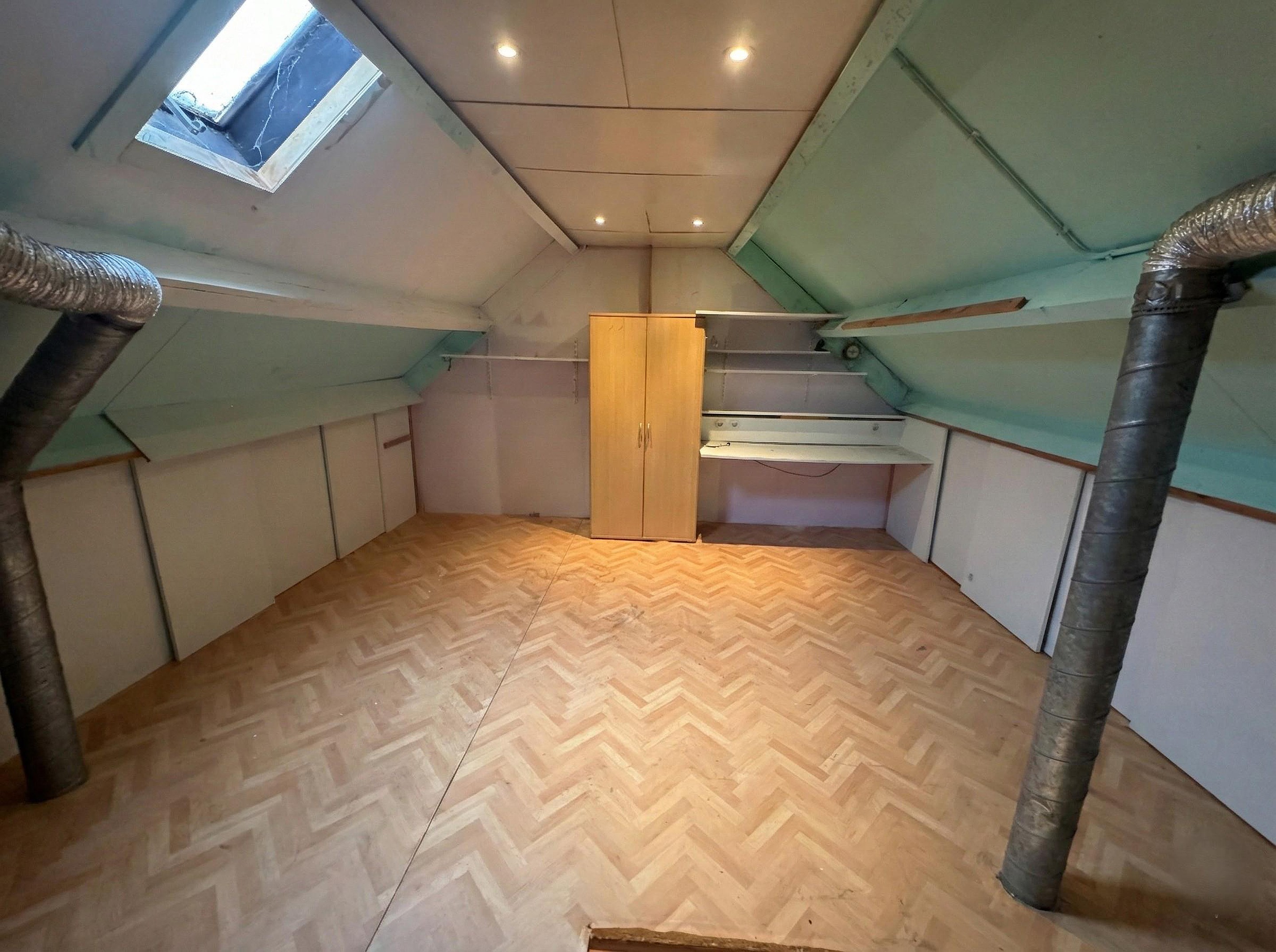 Op de verdieping bevinden zich drie slaapkamers en de badkamer, waardoor alles overzichtelijk en functioneel is ingedeeld. De zolder is bereikbaar via een vlizotrap en biedt extra bergruimte.