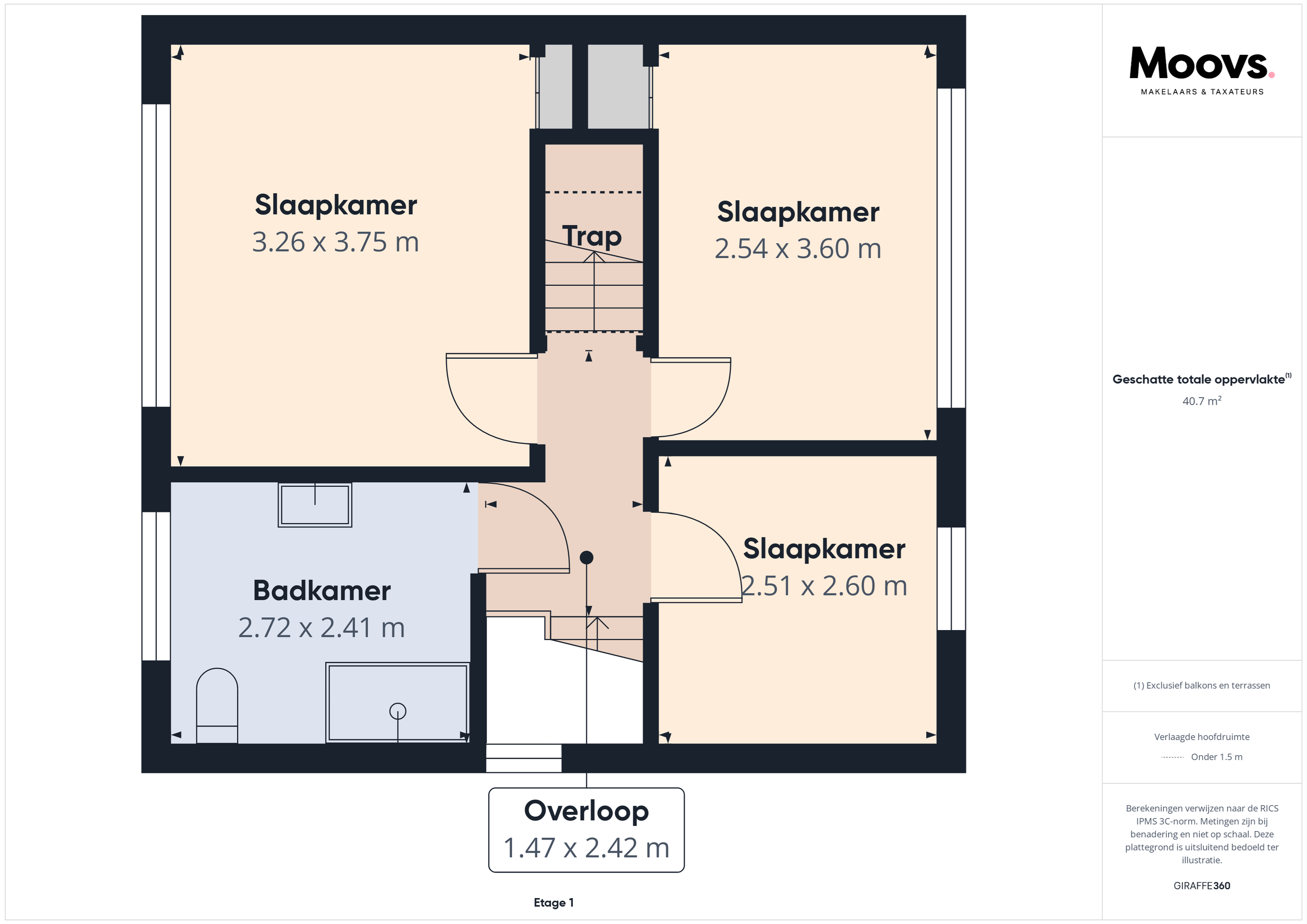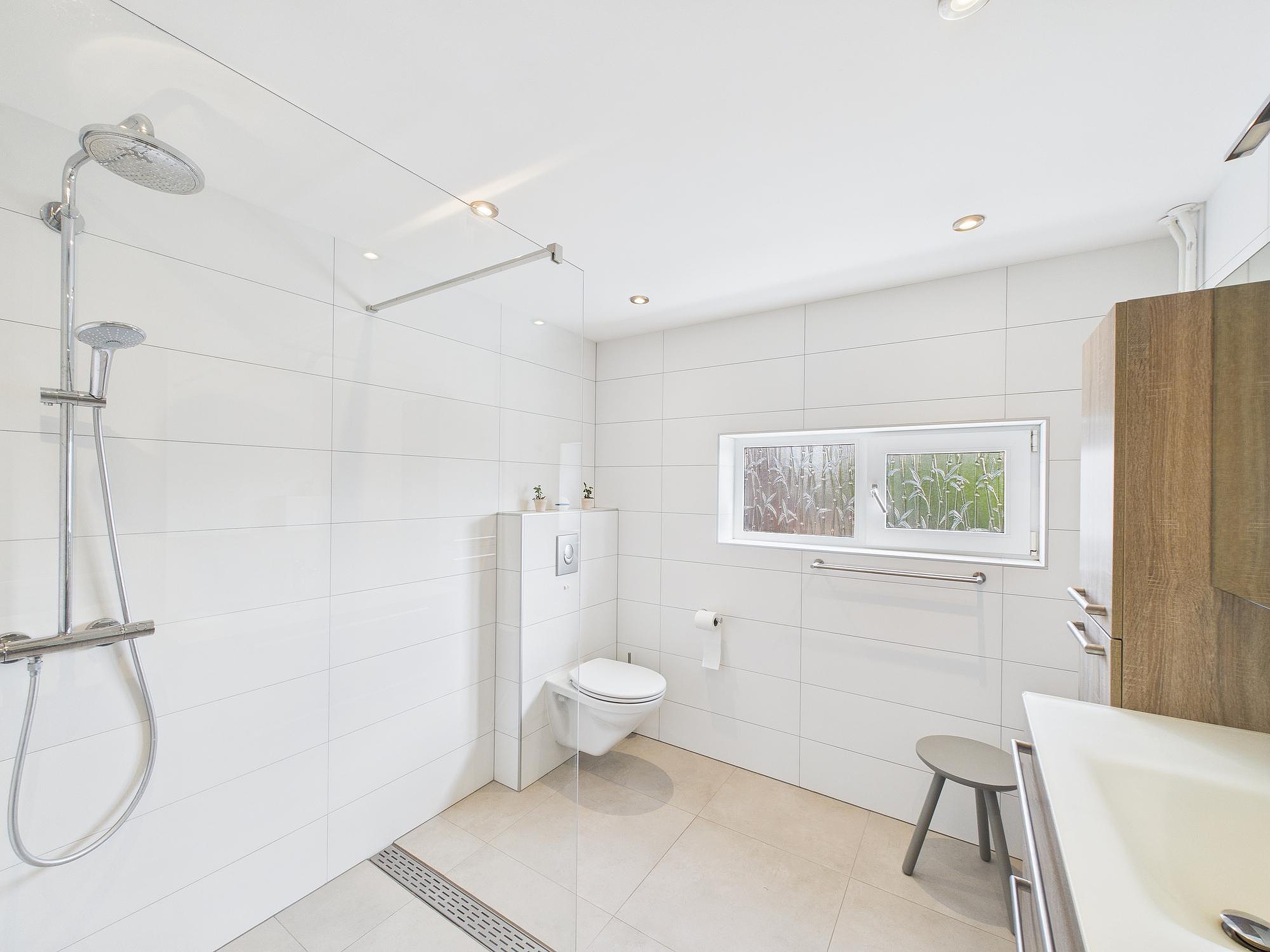 Overloop met vaste trap naar de 2e verdieping. Drie ruime slaapkamer en een badkamer met wastafelmeubel, inloopdouche en toilet. De badkamer is geplaatst in 2018.