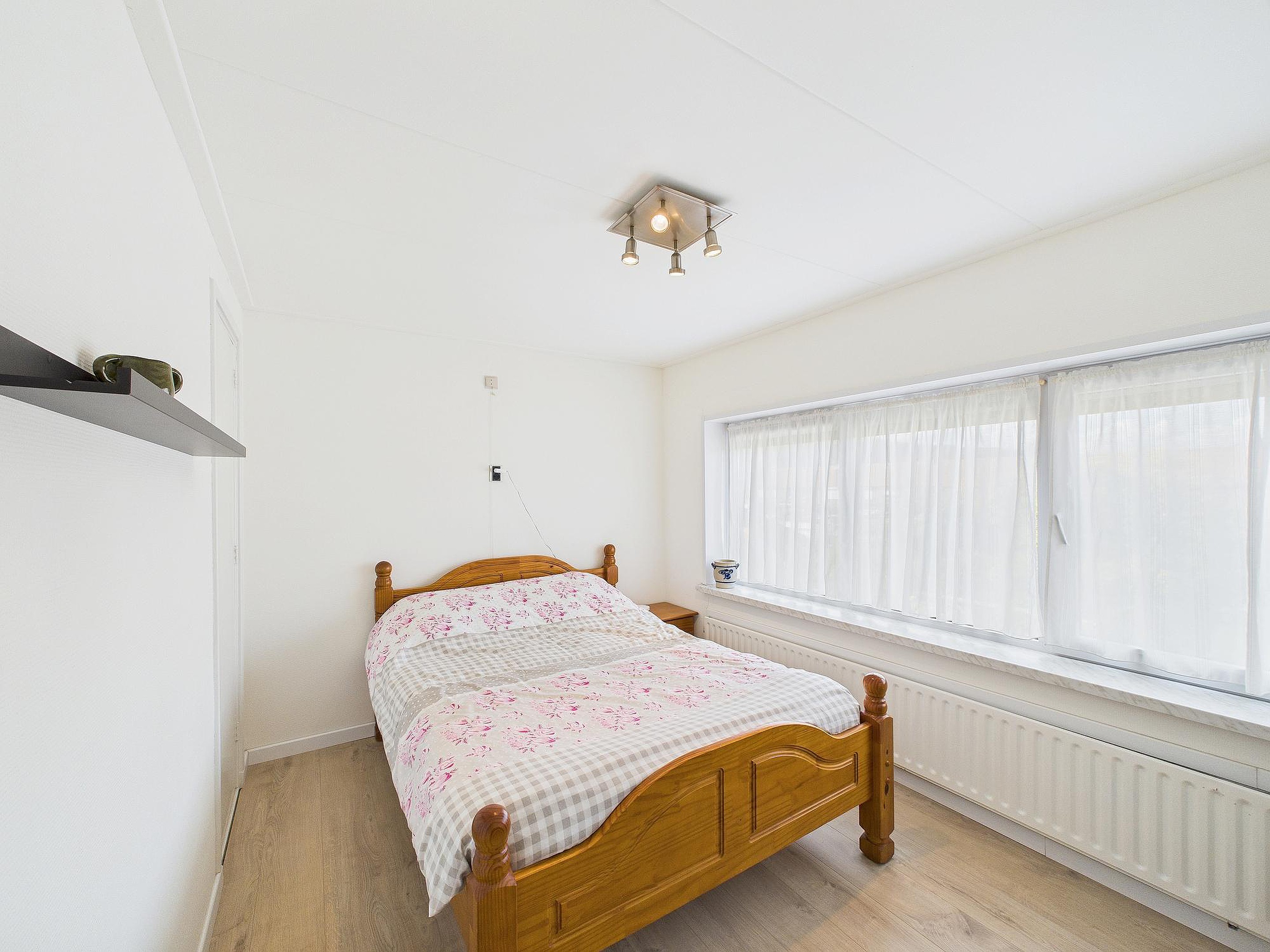 Hal met meterkast, toilet en trap naar de verdieping. Ruime lichte woonkamer met aangrenzend de moderne keuken (2024), de keuken is voorzien van inbouwapparatuur en er is voldoende ruimte voor een eethoek. Bijkeuken met witgoedaansluitingen en toegang tot de tuinkamer en garage. Hierin is een extra slaapkamer gerealiseerd met tuindeuren waardoor de kamer heerlijk licht is en leuk uitzicht heeft op de tuin. De slaapkamer heeft een badkamer en-suite met douche en wastafel. Garage met dubbele deur en ruime oprit.