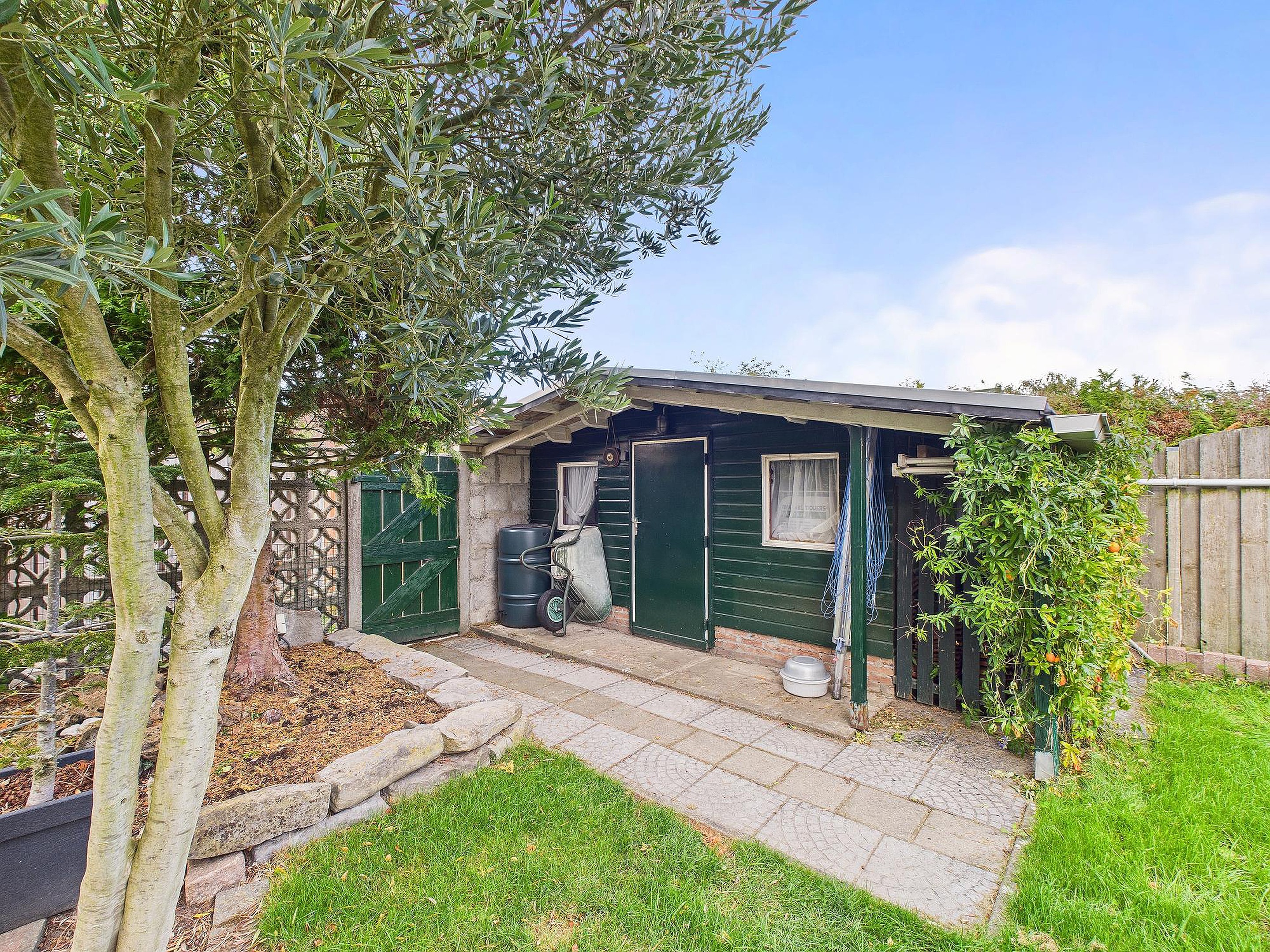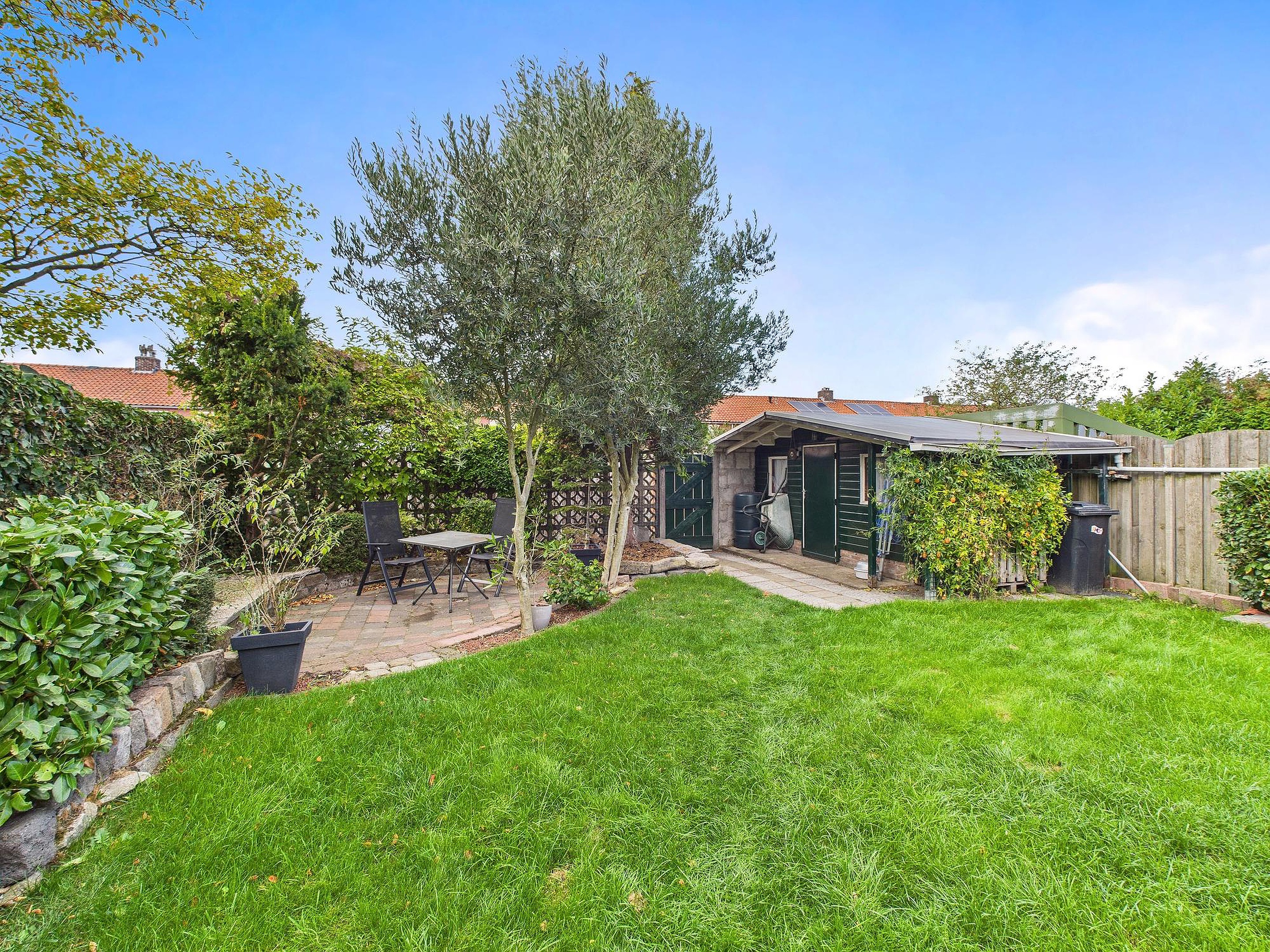De tuin is gelegen op het Noordwesten. Er is een groot terras aanwezig direct aan het huis. Daarnaast is er achterin de tuin nog een tweede terras en een houten tuinhuis aanwezig. Ideaal voor het stallen van fietsen of tuingereedschap.