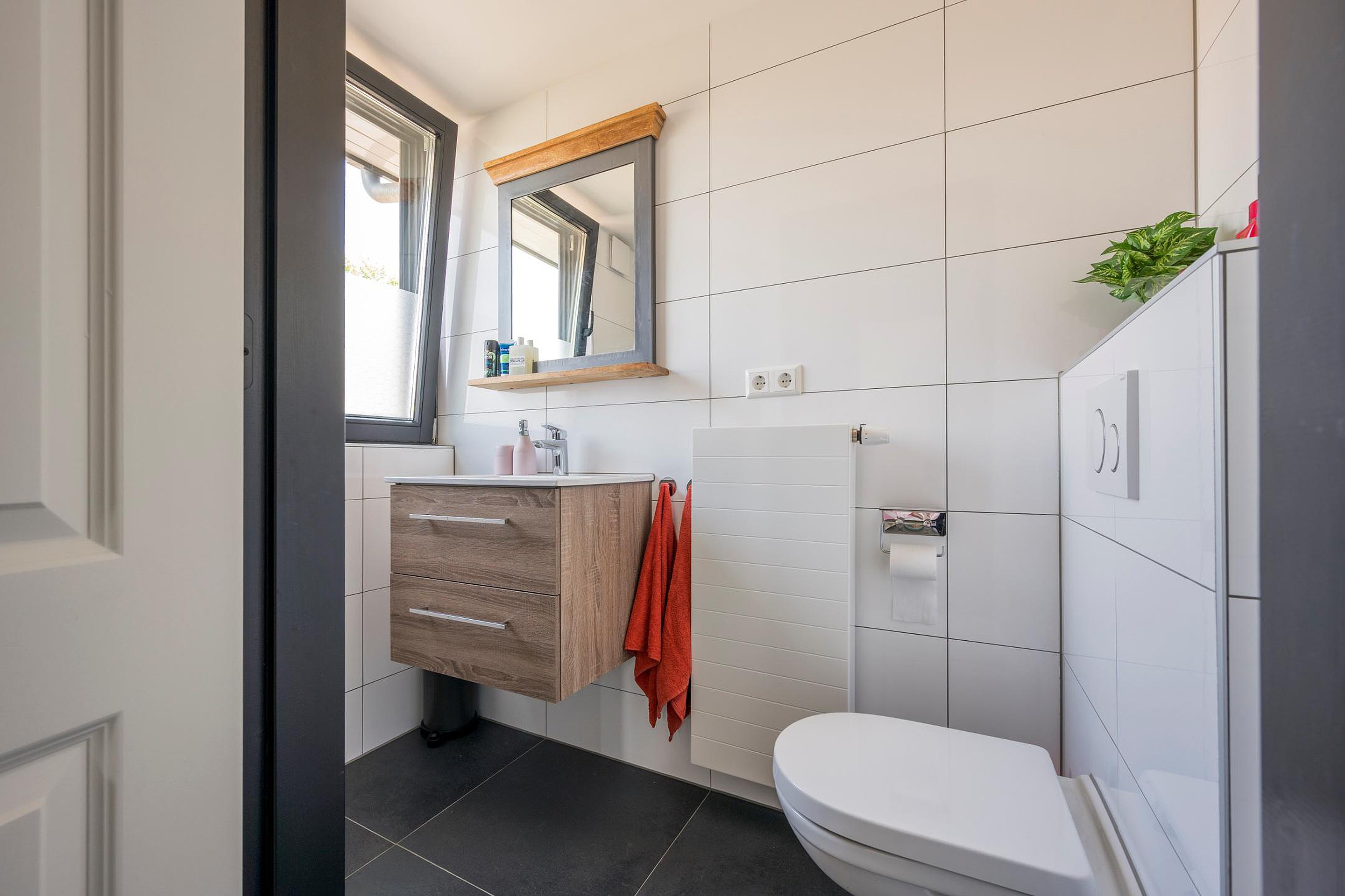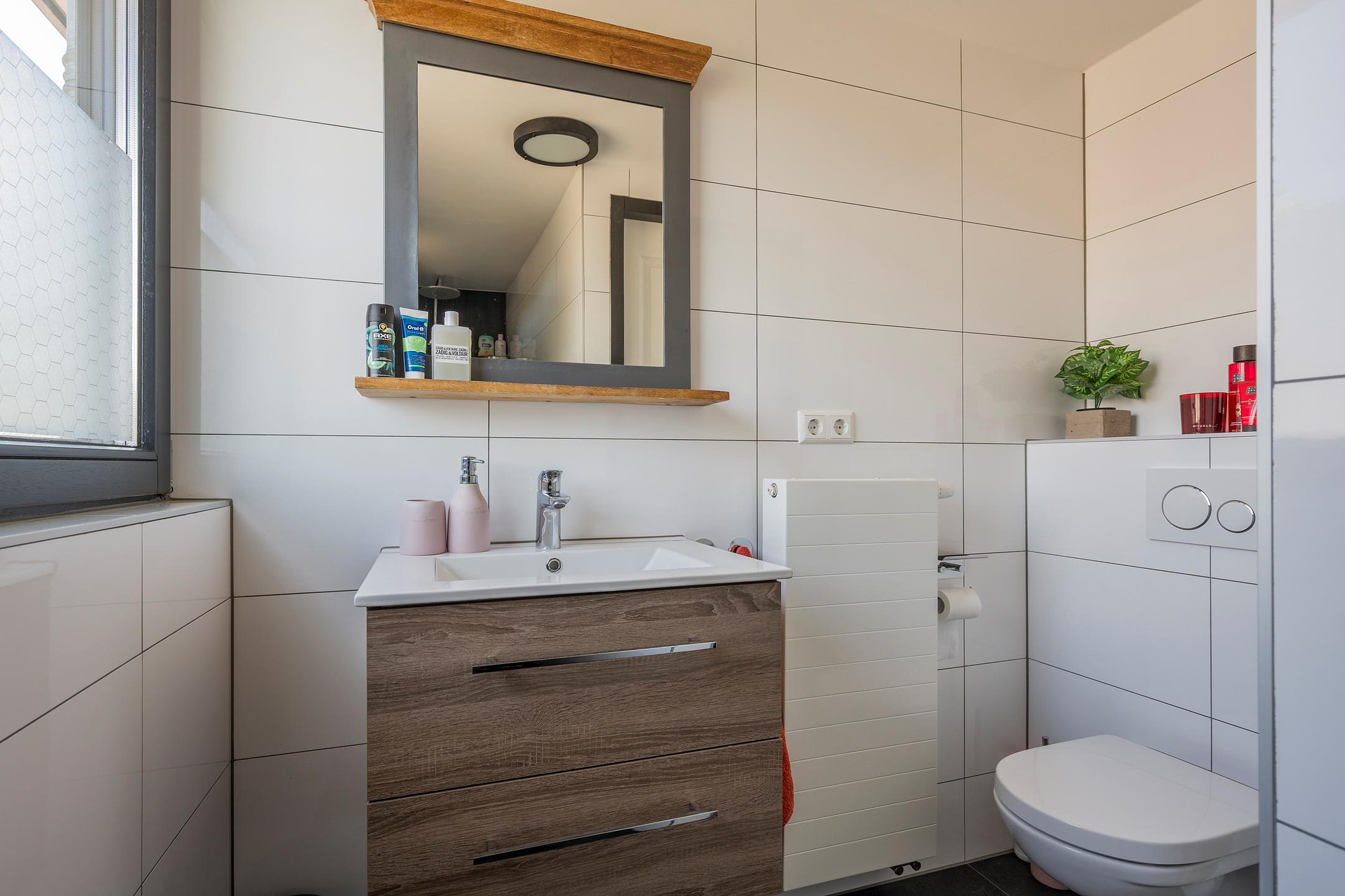 - Stijlvolle badkamer met inloopdouche, tweede toilet, wastafelmeubel en designradiator