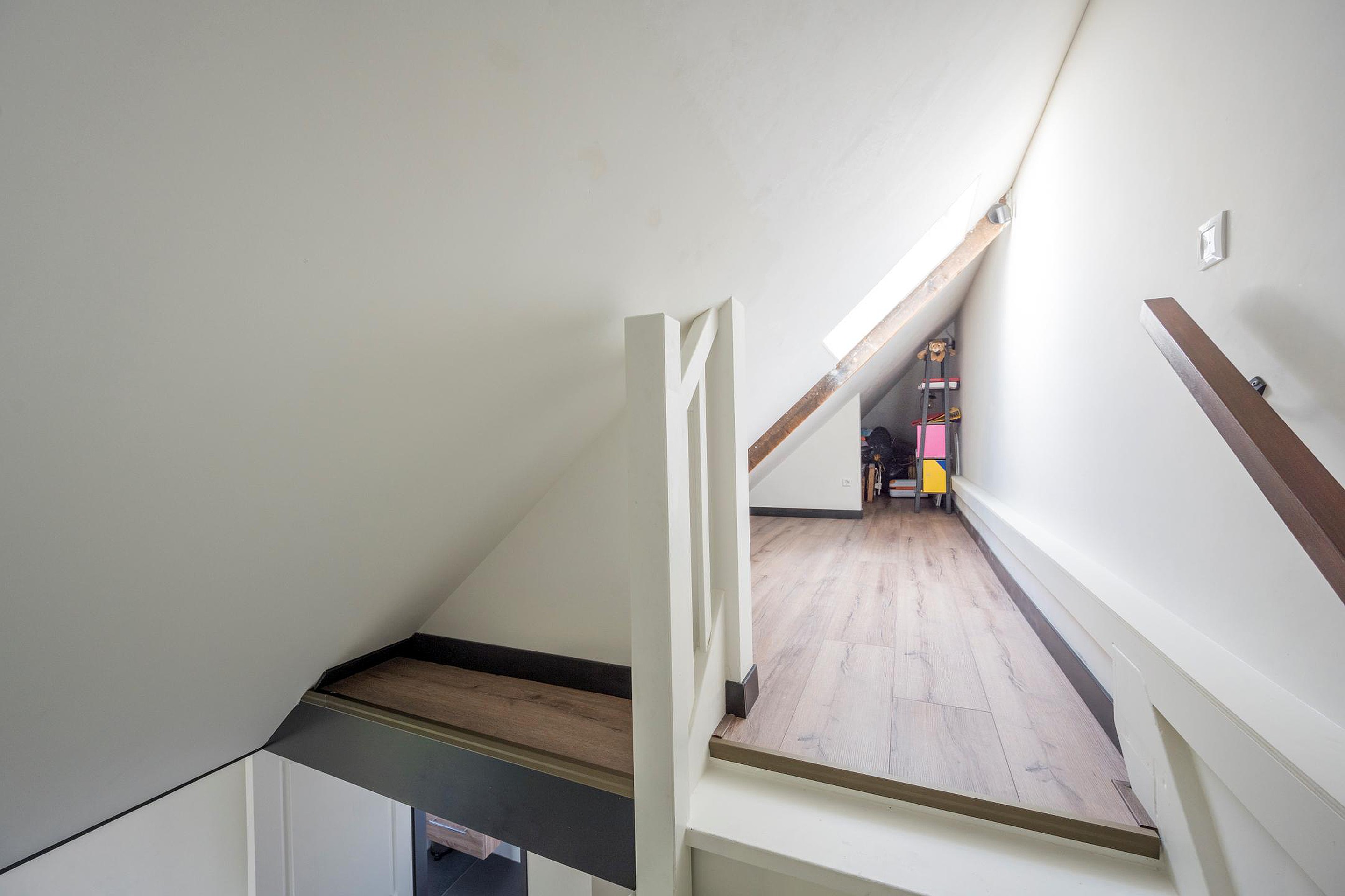 Tweede verdieping Slim benut en goed bereikbaar. Via een vaste trap kom je op de zolderverdieping met een vloeroppervlak van 19m2: een praktische ruimte voor opslag, met genoeg plek voor koffers, dozen of seizoensspullen. Ook de cv-installatie (Intergas Xtreme 36) is hier geplaatst. Geen loze meters, maar slim benutte ruimte.