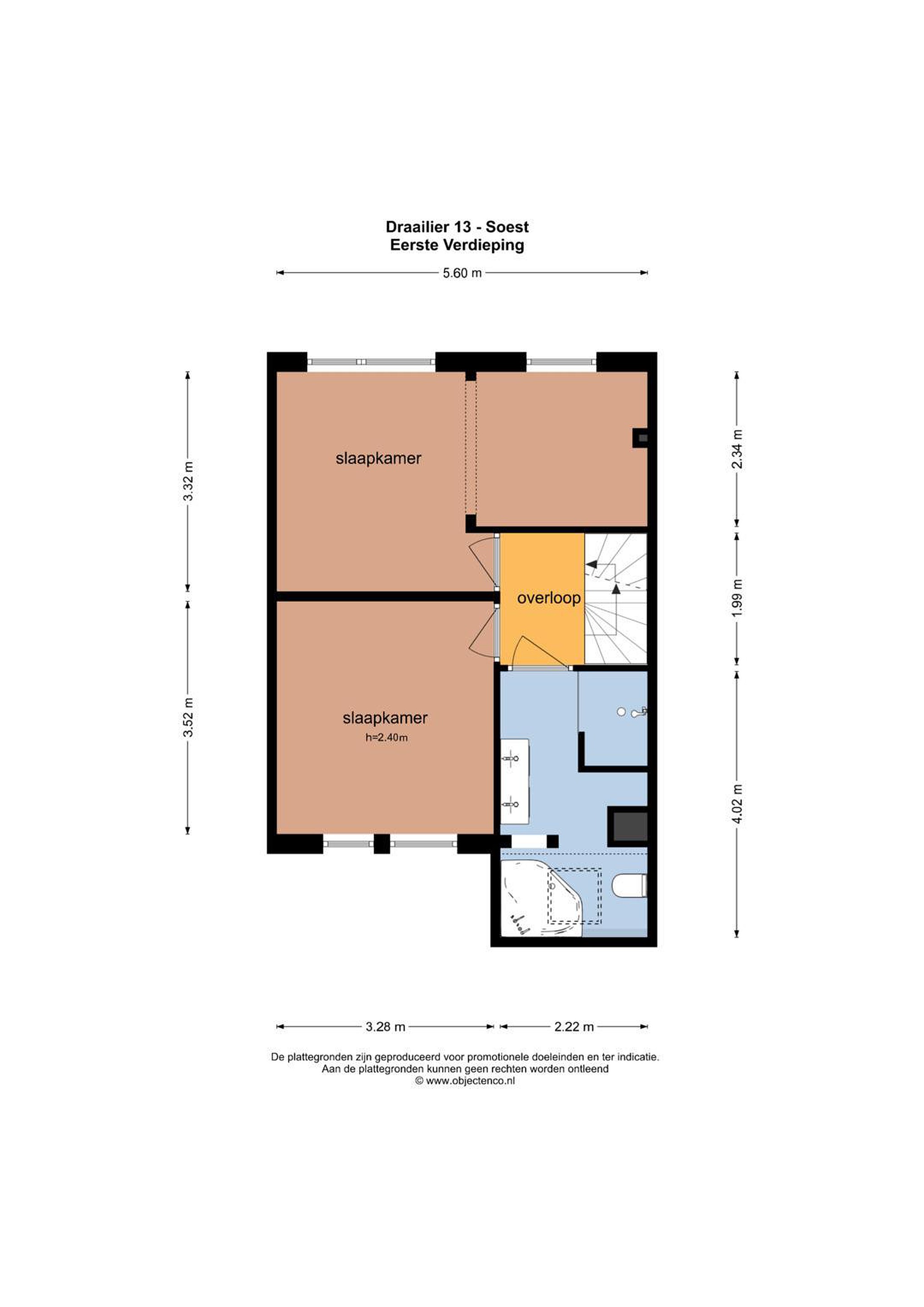 Eerste verdieping De overloop geeft toegang tot de slaapkamers en de badkamer. Oorspronkelijk waren hier drie slaapkamers aanwezig; momenteel zijn dit twee ruime kamers. De huidige indeling maakt het eenvoudig om weer een derde slaapkamer te realiseren, bijvoorbeeld als extra kinderkamer, werkplek of hobbyruimte.