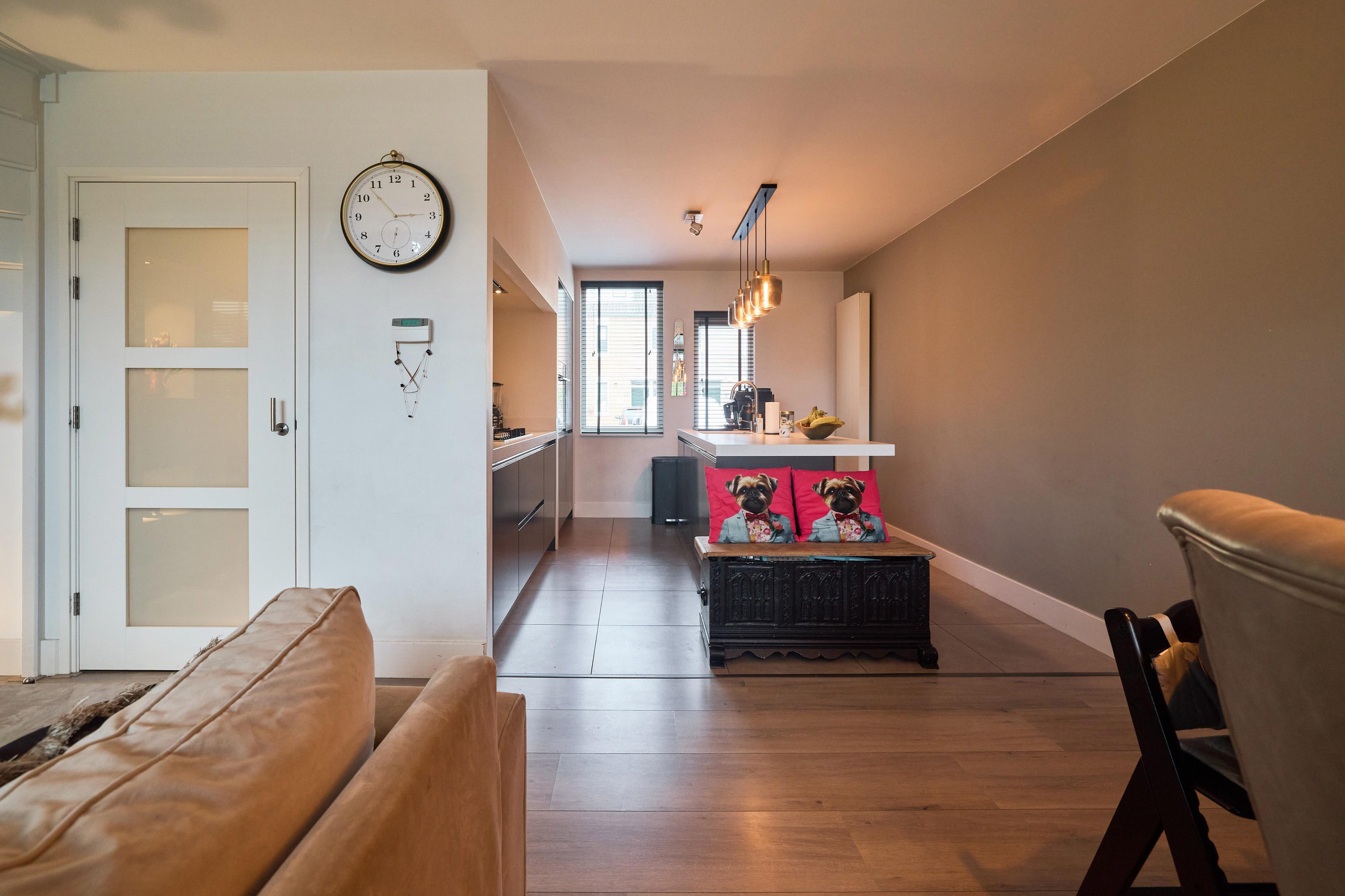 Vanuit de hal stap je de tuingerichte woonkamer binnen. Dankzij de grote raampartijen aan de achterzijde geniet je hier van een fijne lichtinval en een prettige verbinding met de tuin. De woonkamer voelt ruim en comfortabel aan en biedt voldoende plek voor een royale zithoek en eettafel.