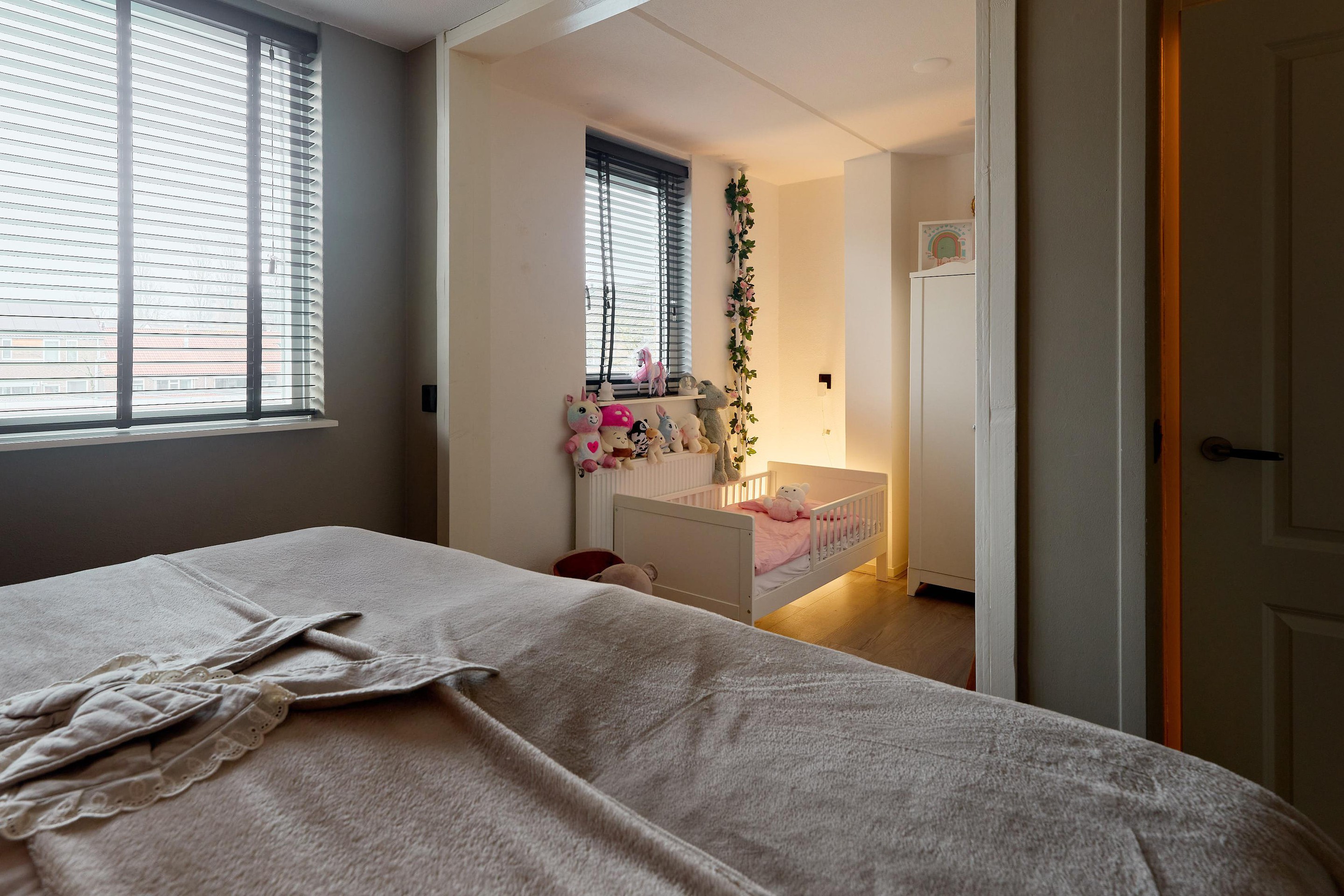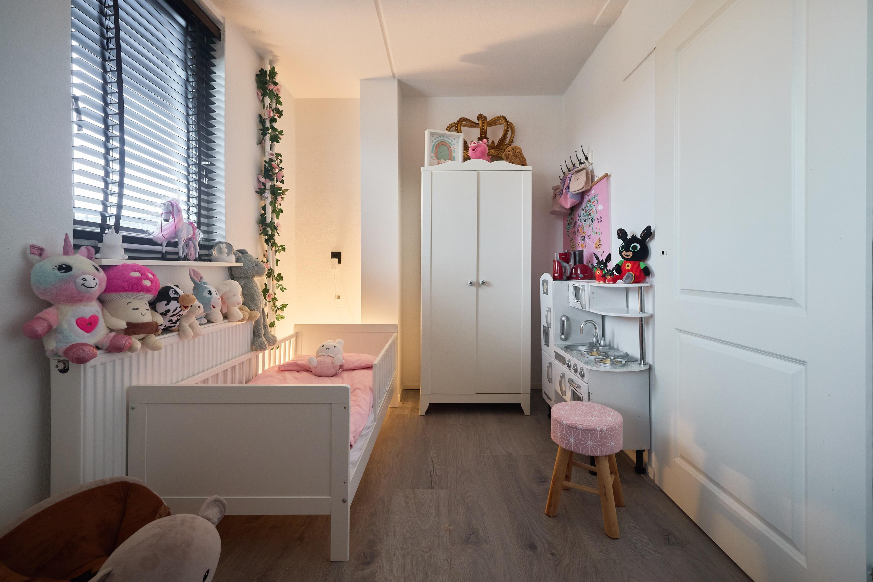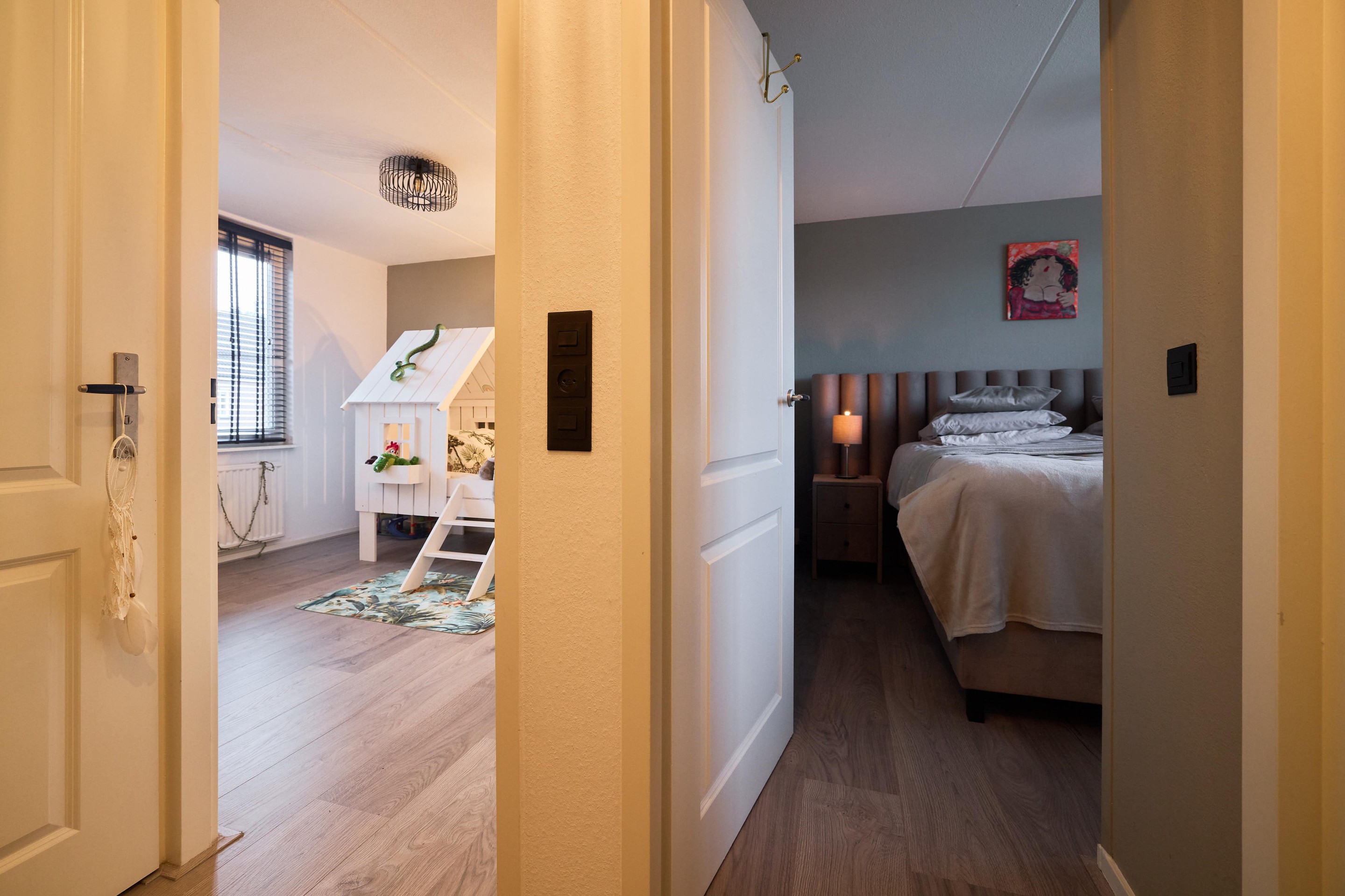 De hoofdslaapkamer is royaal opgezet en rustig van uitstraling, met volop ruimte voor een groot bed en kasten. De tweede slaapkamer is eveneens goed van formaat en flexibel in gebruik. Ook op deze verdieping ligt dezelfde mooie laminaatvloer, wat zorgt voor een prettige eenheid door de hele woning.