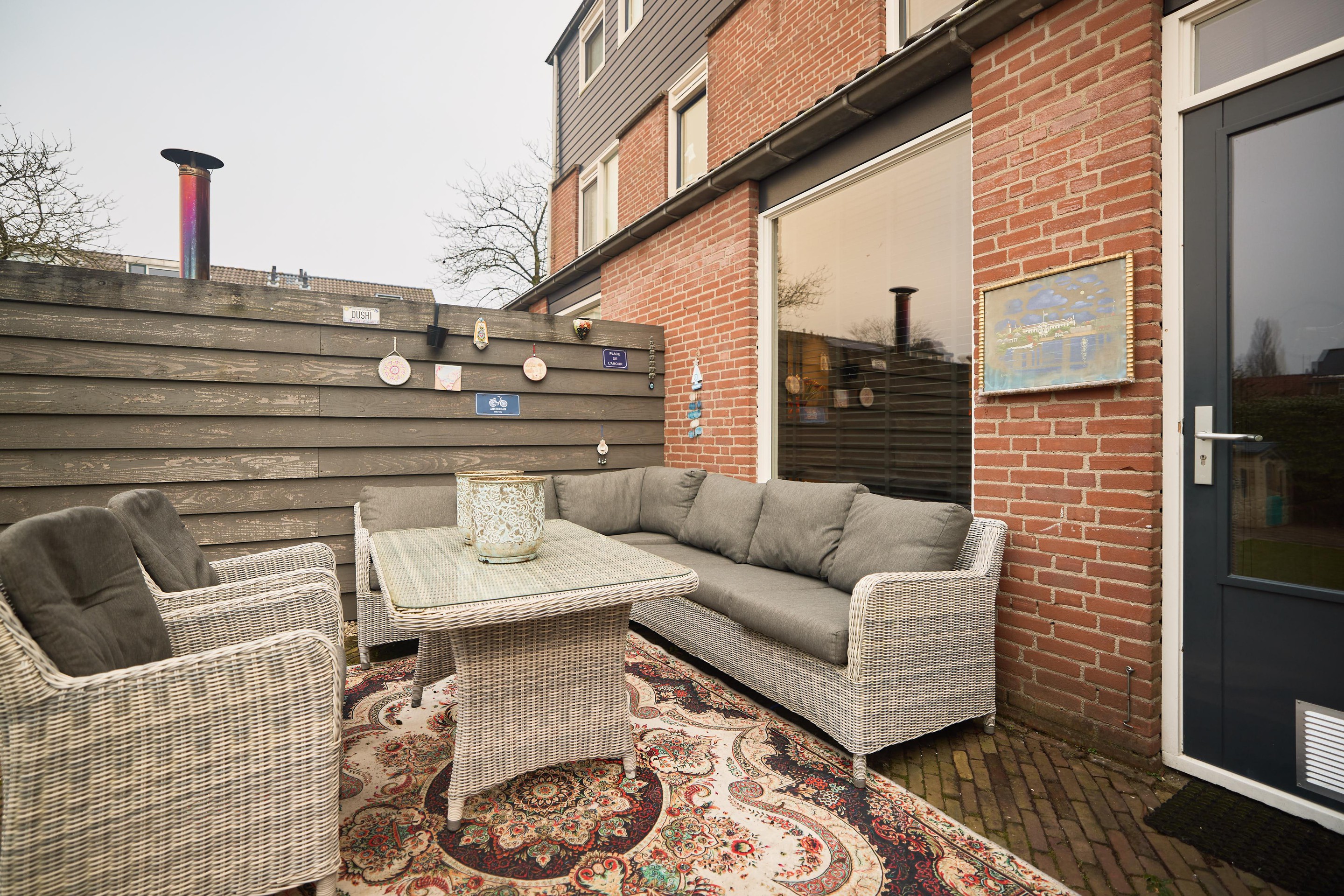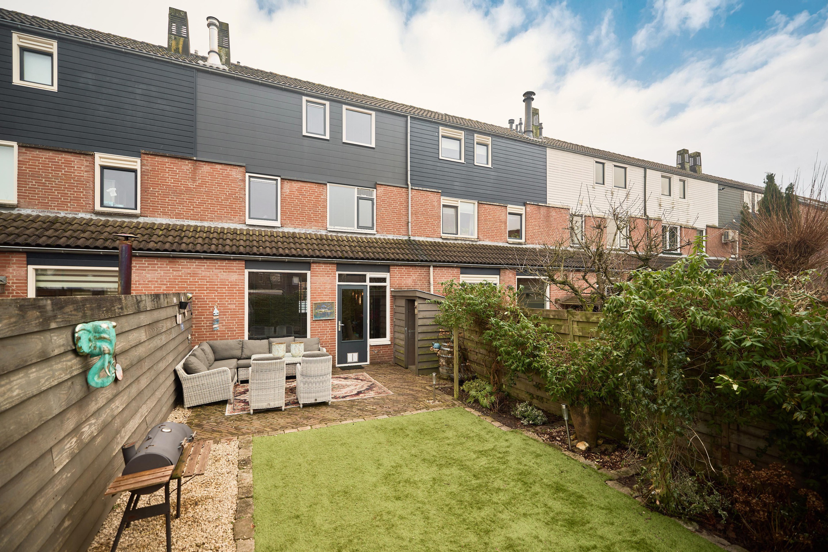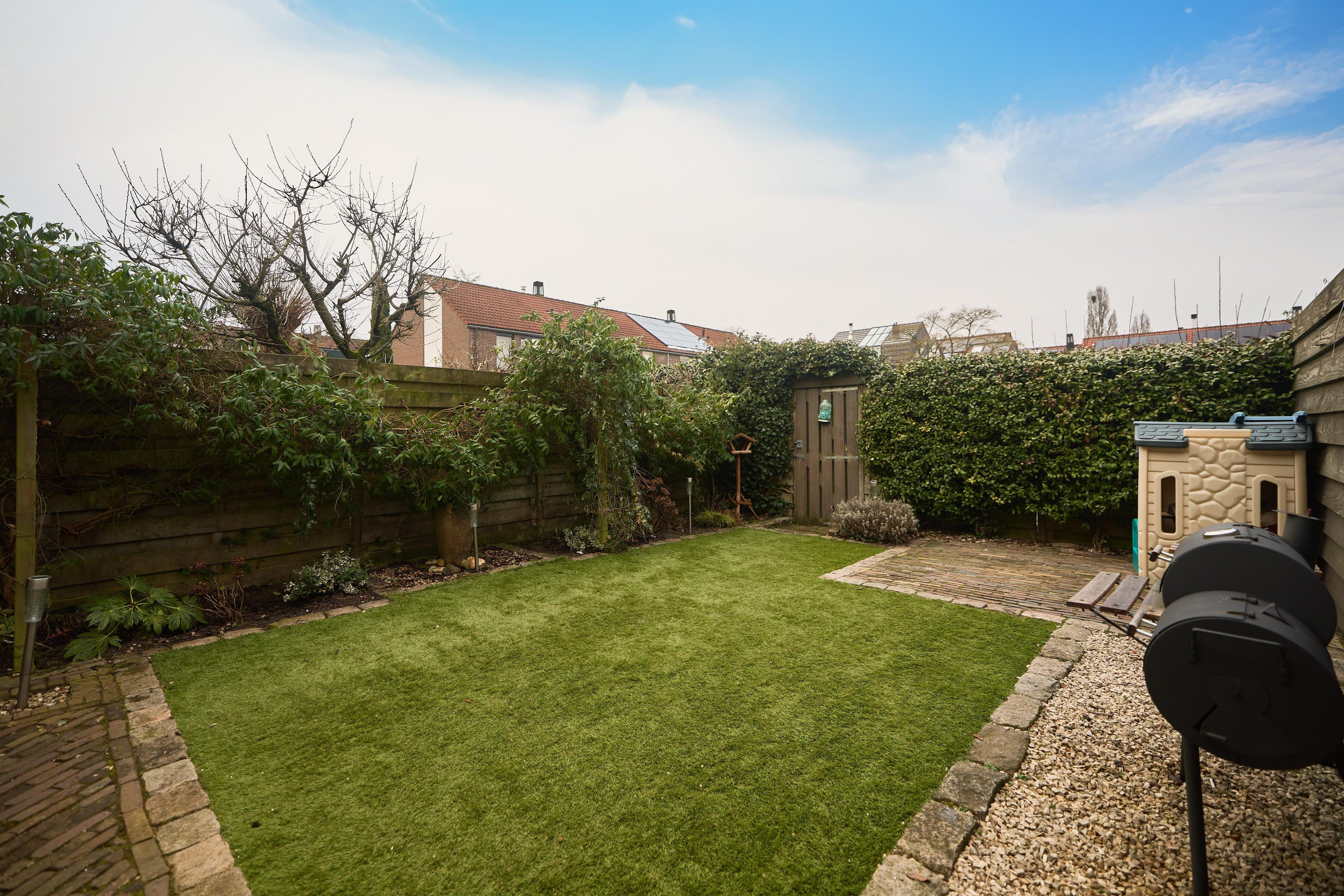 Tuin De achtertuin is verzorgd aangelegd en biedt een prettige mix van groen en zitruimte. Er is volop ruimte om buiten te ontspannen of samen te eten, met een fijne beschutting die zorgt voor een rustig gevoel. Via de achterom bereik je een hofje dat hoofdzakelijk wordt gebruikt voor bestemmingsverkeer, met openbare parkeergelegenheid en een kleine speelvoorziening in de directe nabijheid.