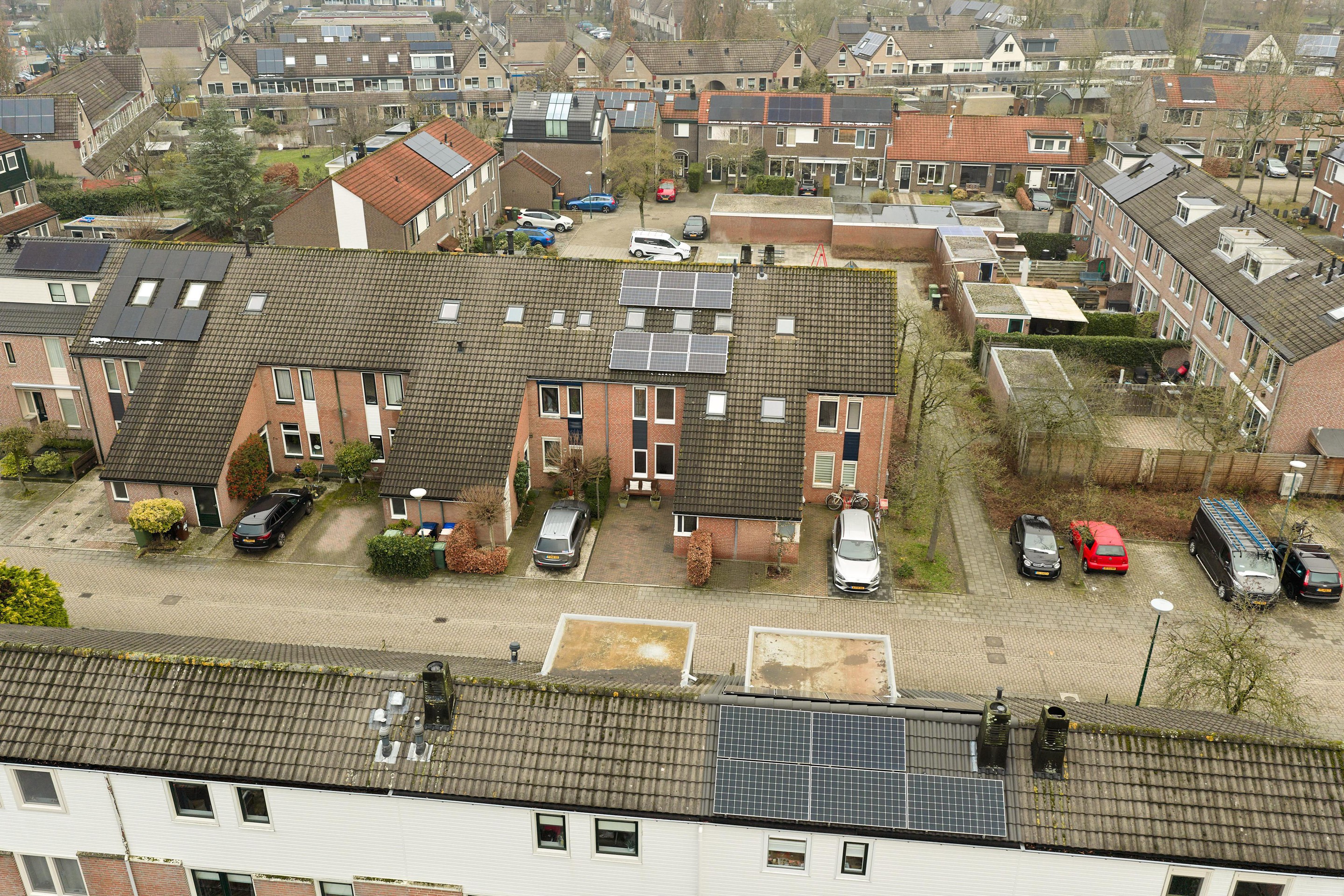 - 12 zonnepanelen op het hellende dak aan de voorzijde