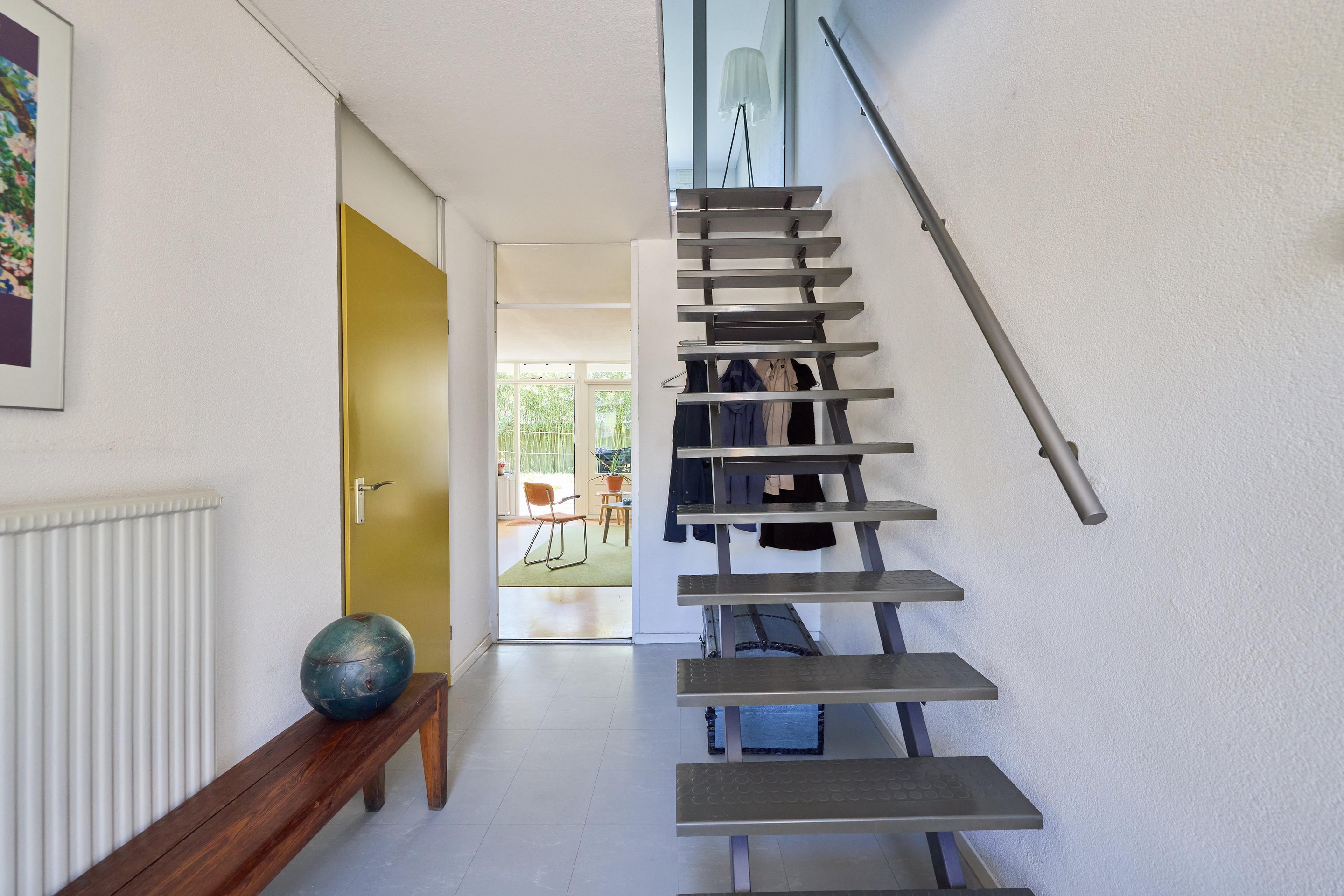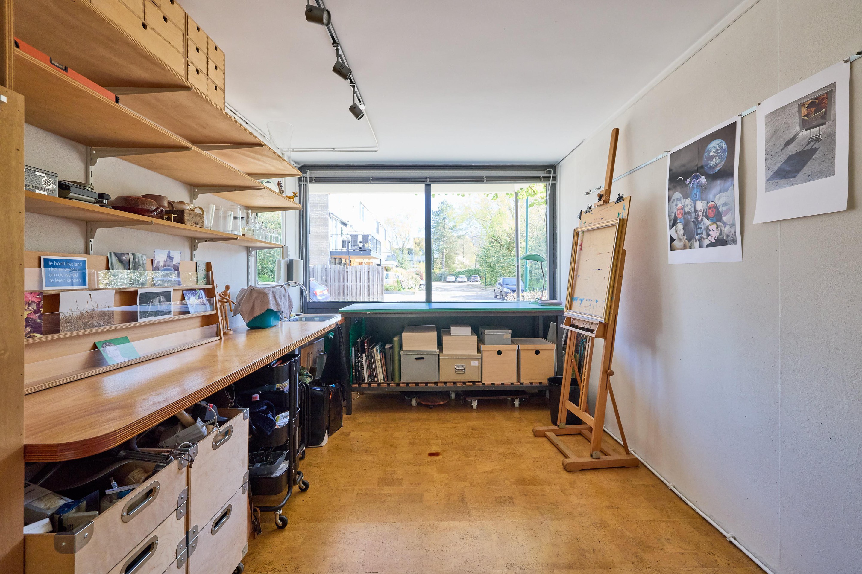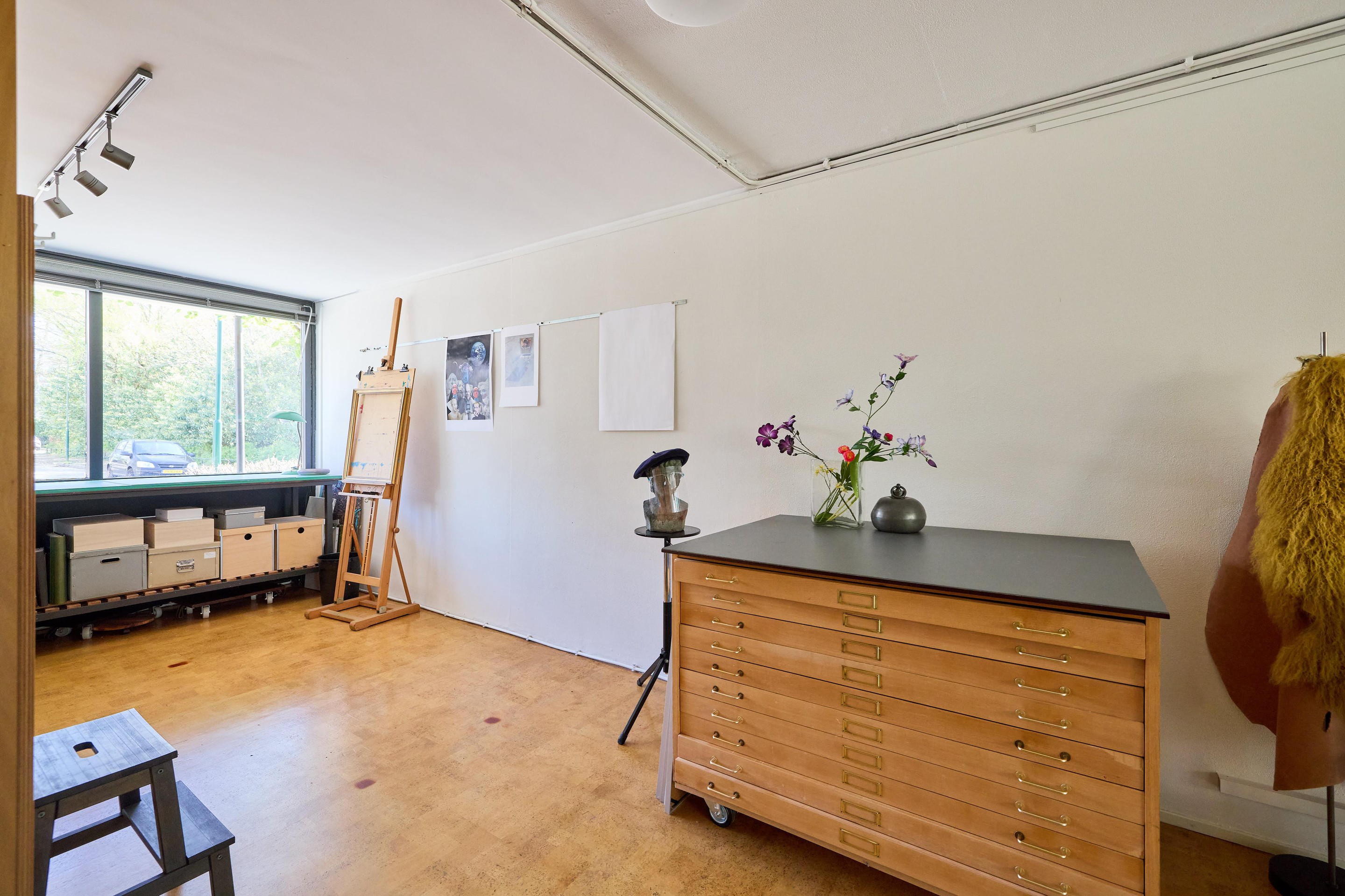 Begane grond Je komt binnen in de entree met meterkast en trapopgang. Vanuit hier heb je toegang tot de ruime, multifunctionele ruimte op de begane grond van de woning. Wat direct opvalt is het licht en de lengte van de ruimte. Aan de tuinzijde zorgen de grote raampartijen en de deur naar buiten voor een prettige verbinding met de tuin, terwijl je aan de voorzijde juist goed kunt werken of creëren. Aan de voorzijde bevindt zich bovendien een wasbak met kraan en een close-in boiler, wat de ruimte extra praktisch maakt. De ruimte is de afgelopen jaren gebruikt als atelier en dat voel je: een plek waar je echt iets mee kunt. Of je nu denkt aan een werkruimte aan huis, hobbyruimte of extra leefruimte, hier heb je alle vrijheid. Met de aanwezige krachtstroom is de ruimte bovendien geschikt voor uiteenlopende toepassingen.
