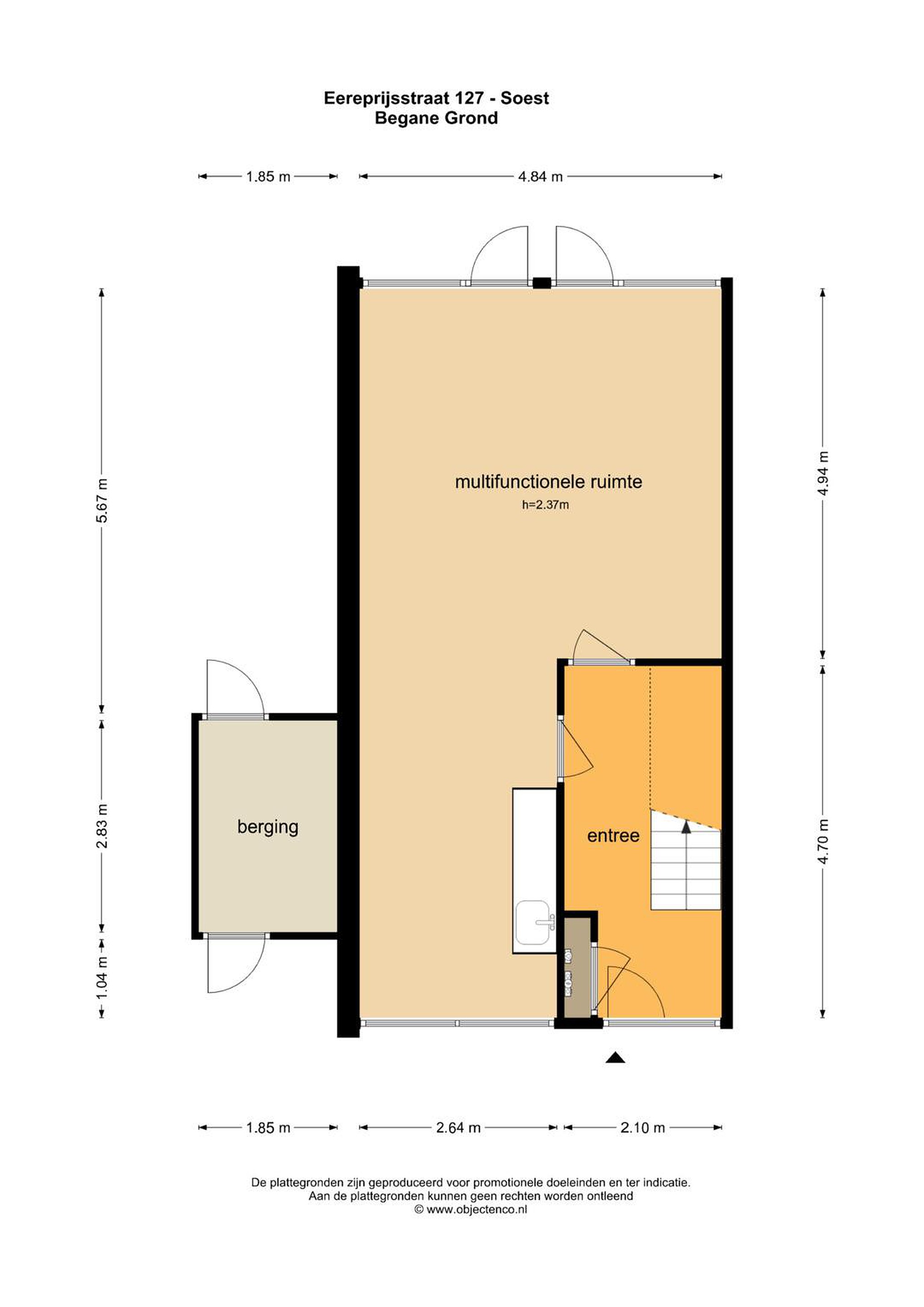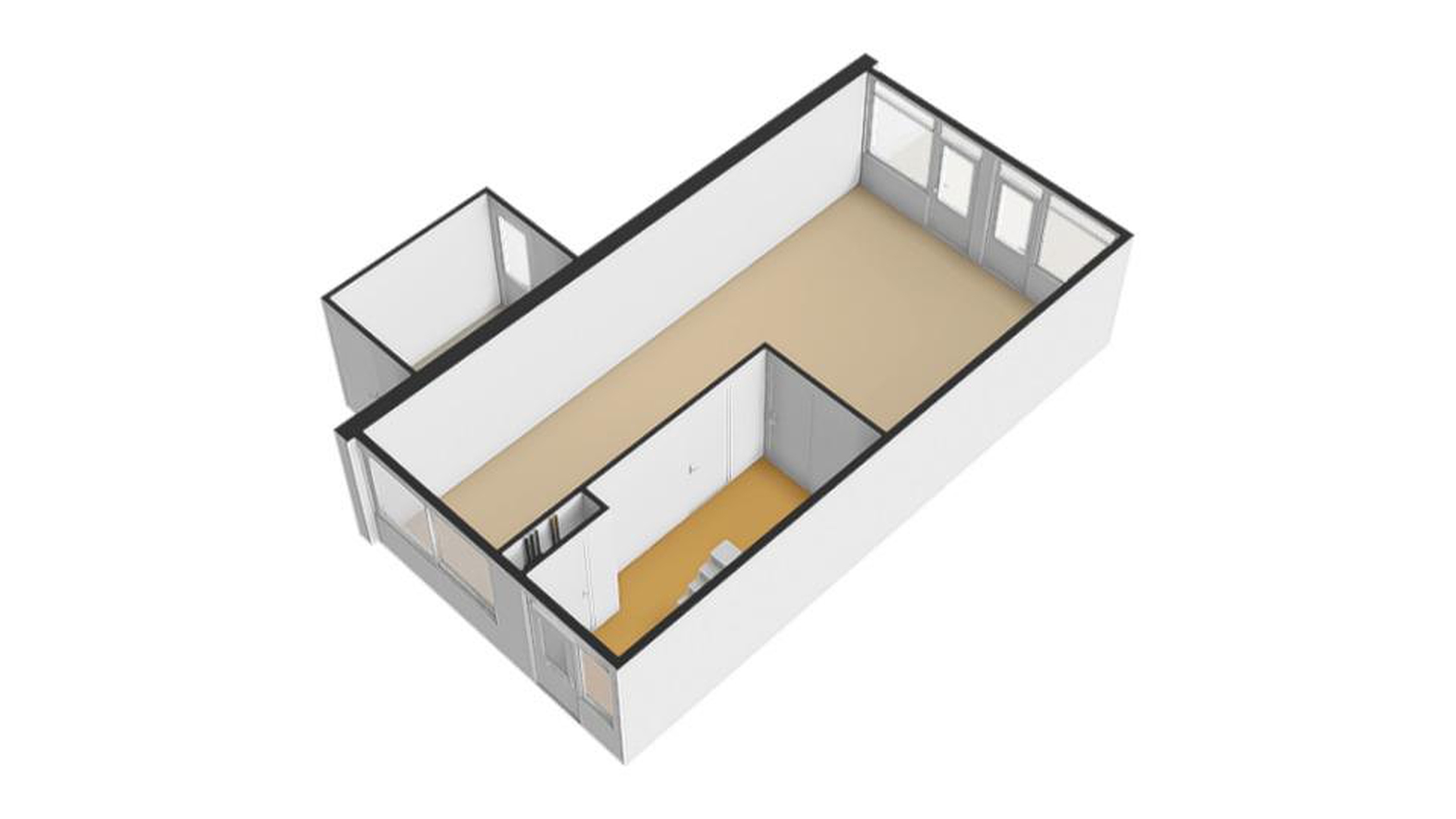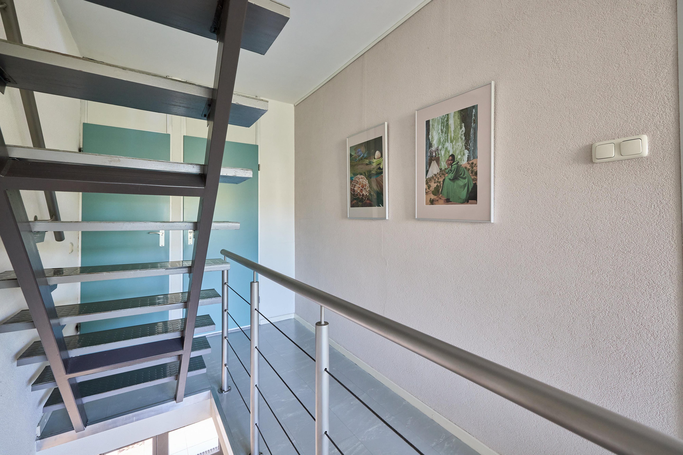 Begane grond Je komt binnen in de entree met meterkast en trapopgang. Vanuit hier heb je toegang tot de ruime, multifunctionele ruimte op de begane grond van de woning. Wat direct opvalt is het licht en de lengte van de ruimte. Aan de tuinzijde zorgen de grote raampartijen en de deur naar buiten voor een prettige verbinding met de tuin, terwijl je aan de voorzijde juist goed kunt werken of creëren. Aan de voorzijde bevindt zich bovendien een wasbak met kraan en een close-in boiler, wat de ruimte extra praktisch maakt. De ruimte is de afgelopen jaren gebruikt als atelier en dat voel je: een plek waar je echt iets mee kunt. Of je nu denkt aan een werkruimte aan huis, hobbyruimte of extra leefruimte, hier heb je alle vrijheid. Met de aanwezige krachtstroom is de ruimte bovendien geschikt voor uiteenlopende toepassingen.
