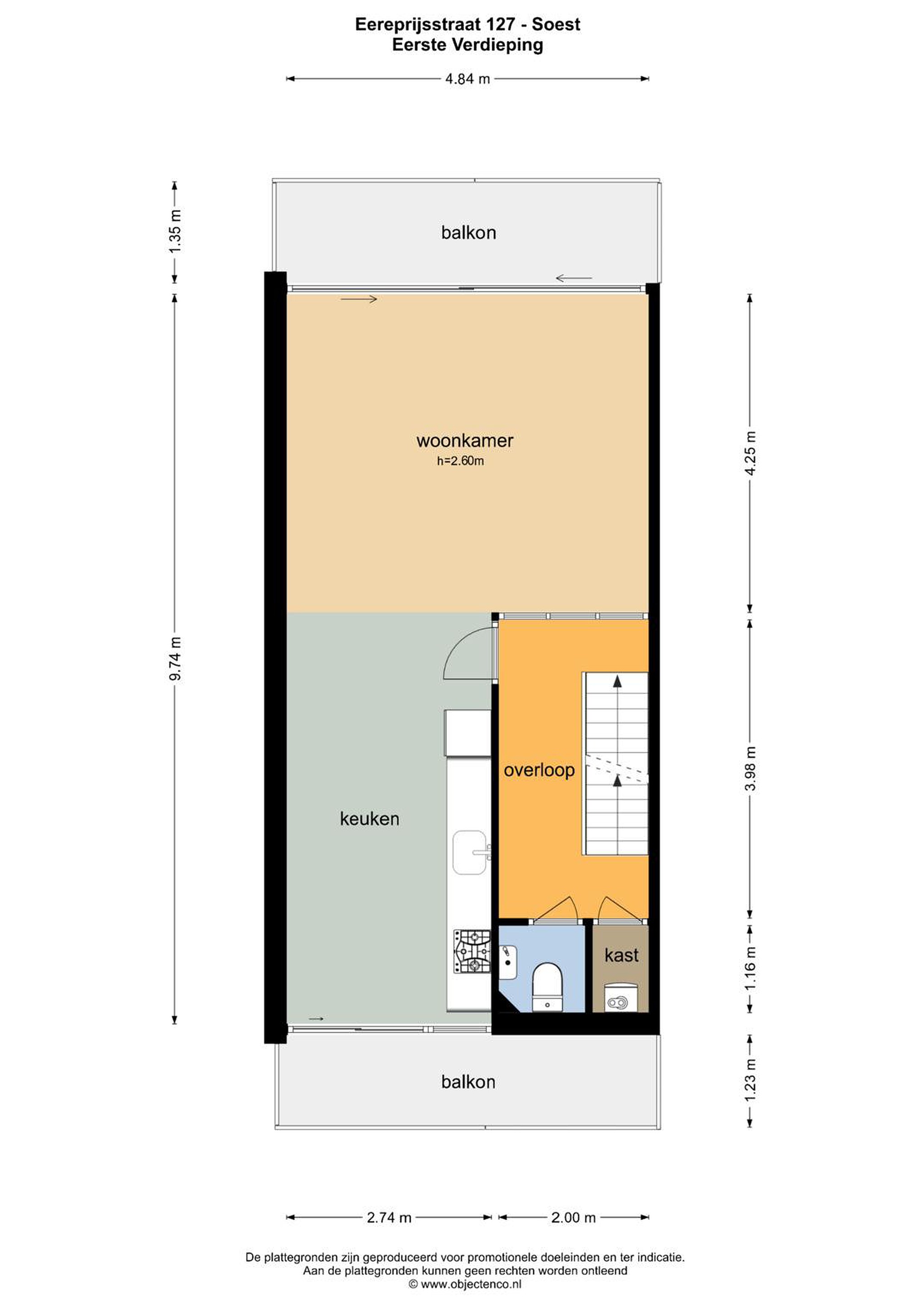 - Twee balkons op de eerste verdieping (voor- en achterzijde)