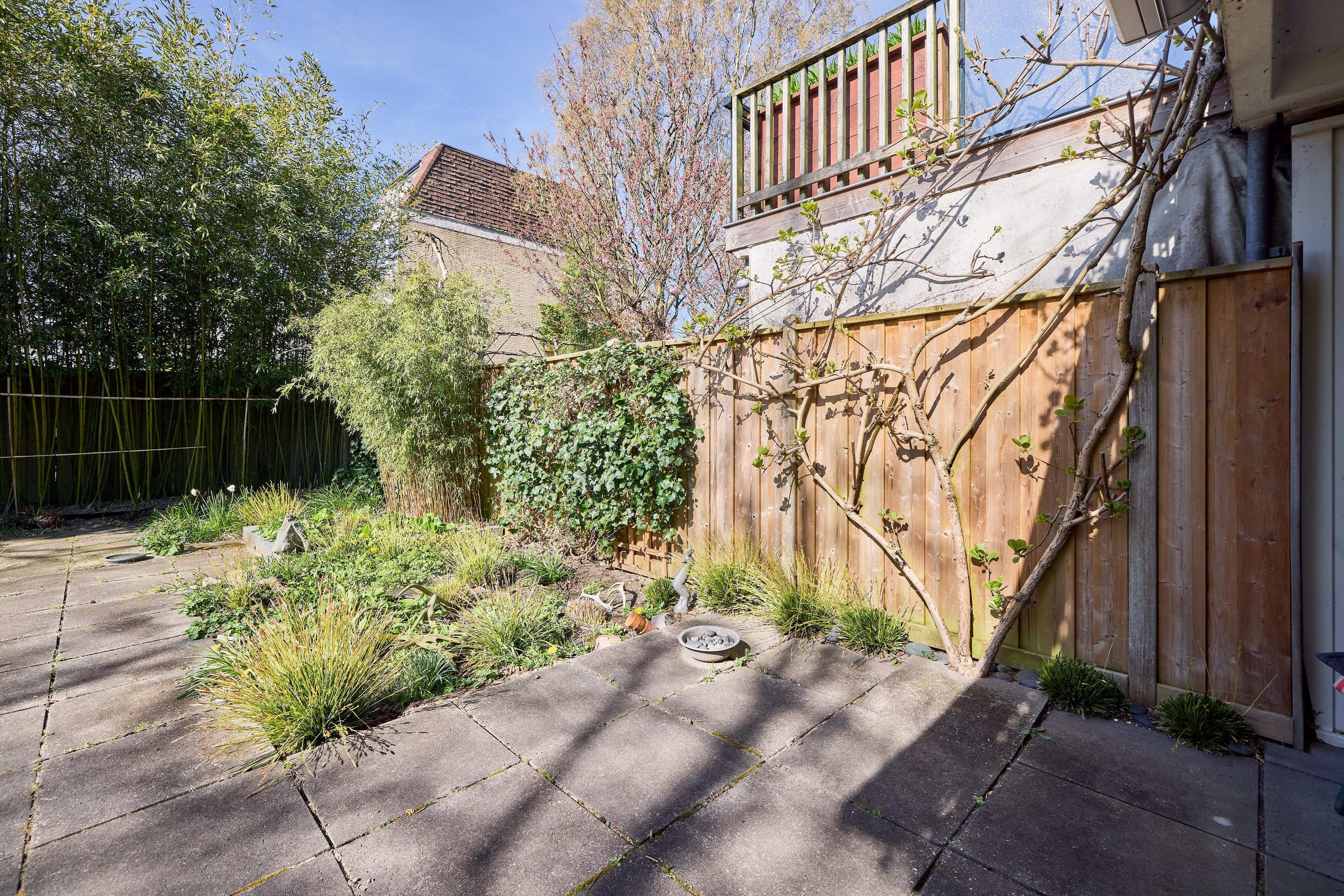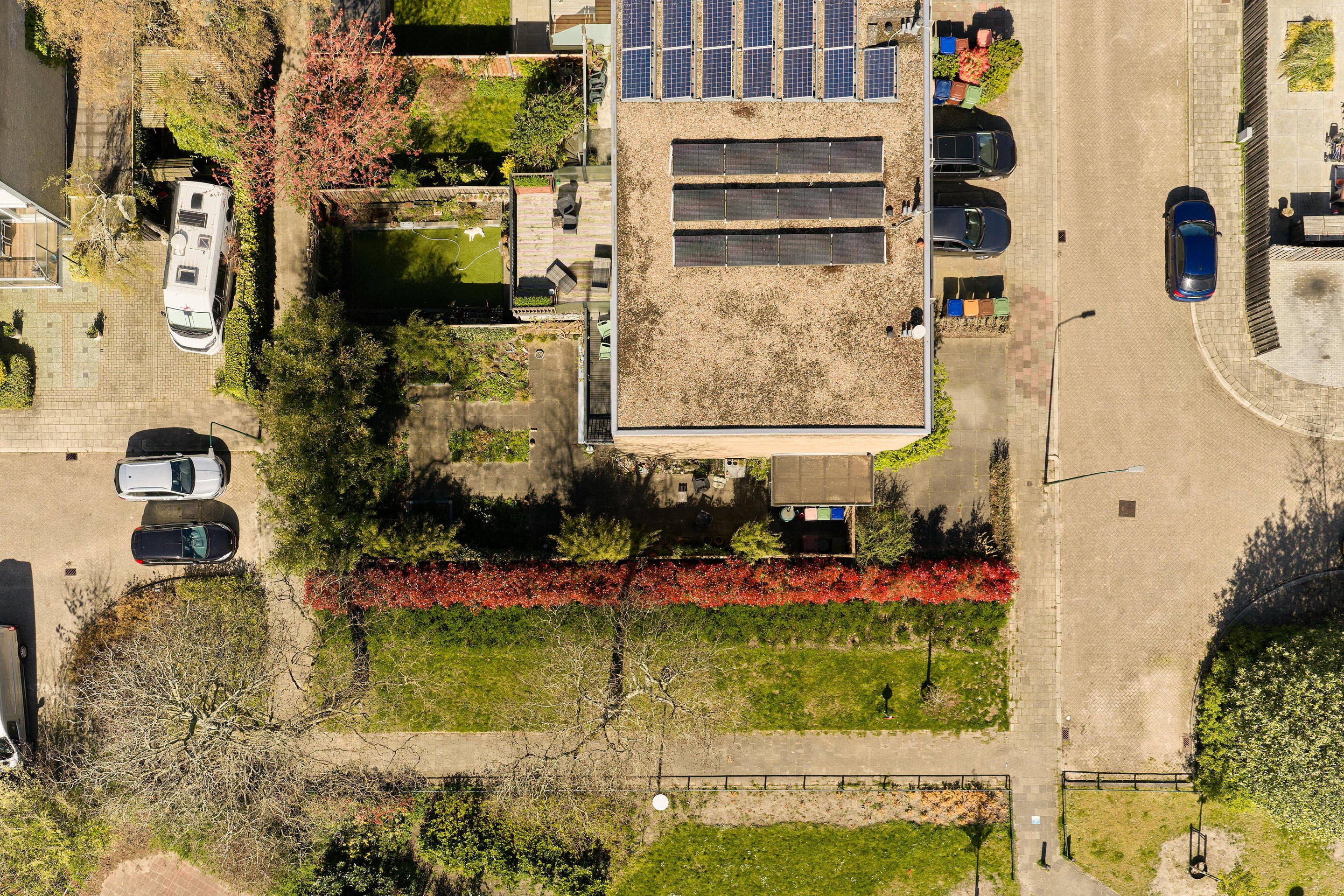 Direct aan de woning zit je prettig beschut onder het balkon van de eerste verdieping, een fijne plek waar je ook op warme dagen comfortabel buiten kunt zitten. Aan de zijkant van de woning bevindt zich de zijtuin op het zuidoosten: ideaal voor de ochtendzon en daarnaast praktisch als extra buitenruimte of doorgang. Voor extra comfort is de woning voorzien van handmatige zonwering. Daarnaast zijn er aan de achterzijde op de eerste verdieping elektrische zonwering aanwezig en op de tweede verdieping elektrische screens, wat bijdraagt aan een aangenaam binnenklimaat. Tot slot beschikt de woning over een aangebouwde berging, ideaal voor het opbergen van fietsen, gereedschap en tuinspullen. Ook de voortuin op het noordoosten draagt bij aan een verzorgde en groene entree van de woning. Een heerlijke buitenruimte met zon, privacy en praktische extra’s.