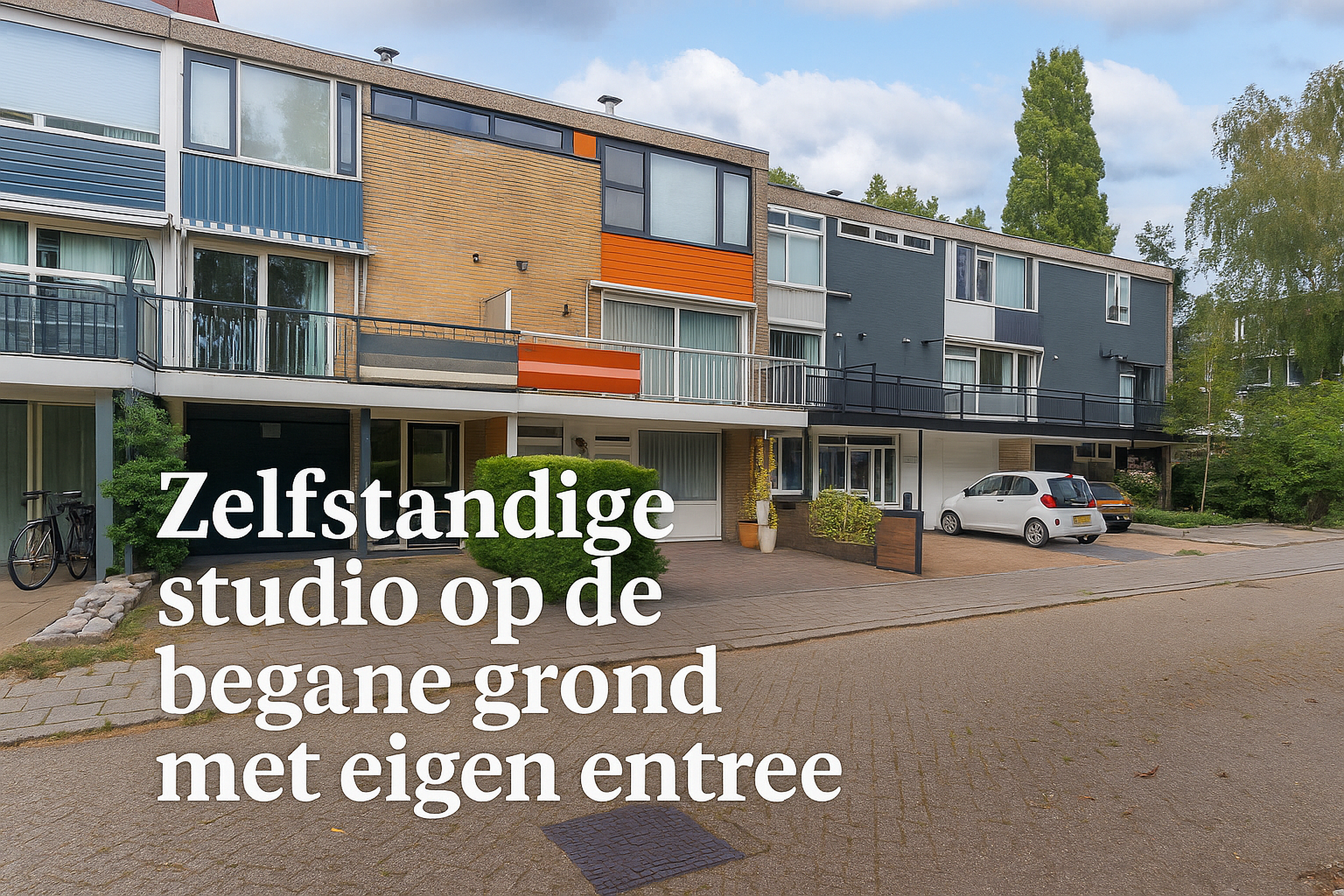 - Zelfstandige studio op de begane grond met eigen entree, keuken, badkamer en toegang tot de tuin
