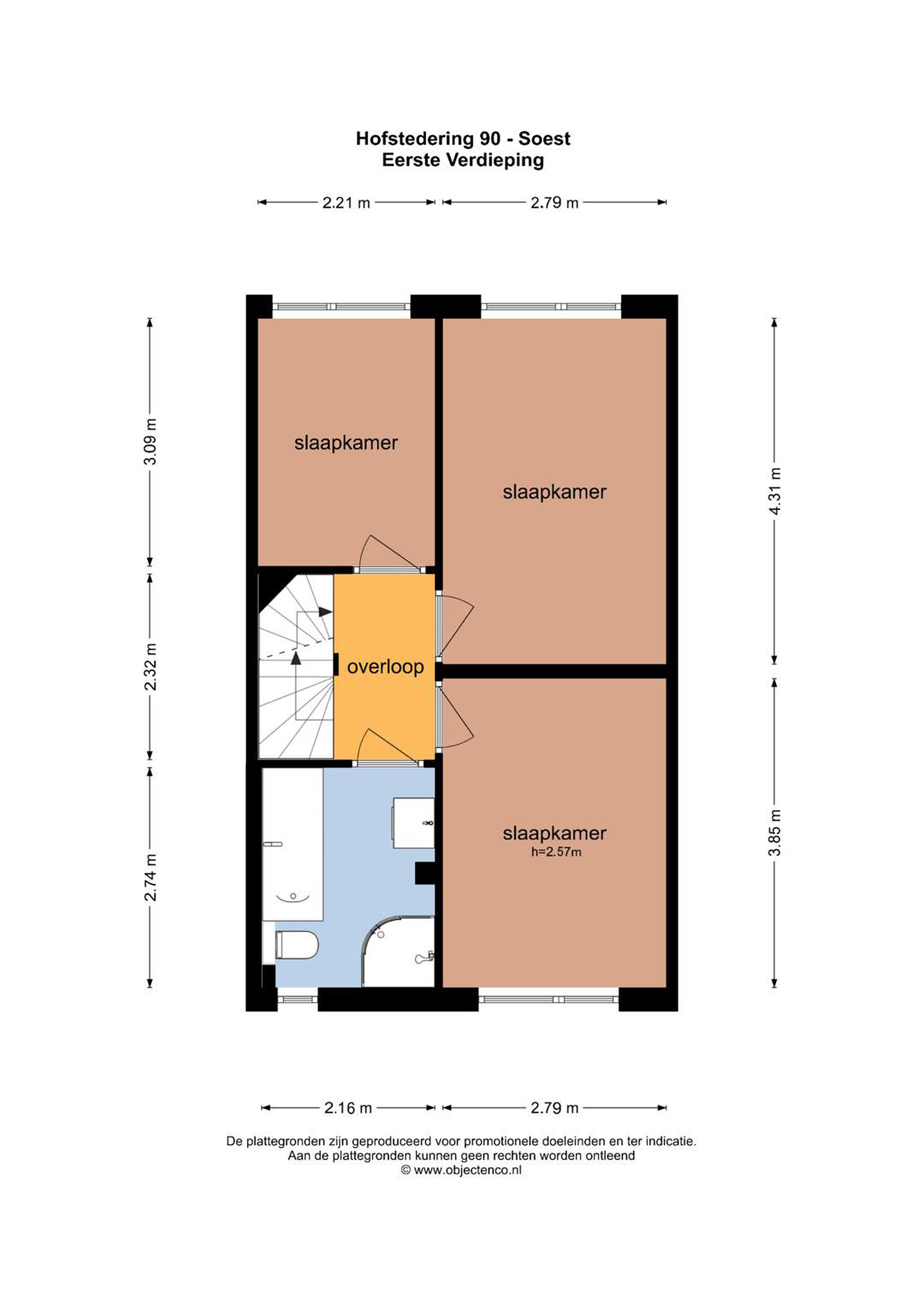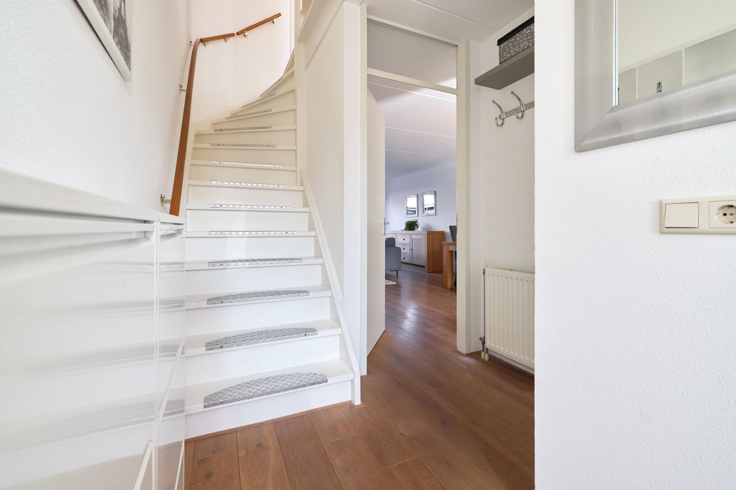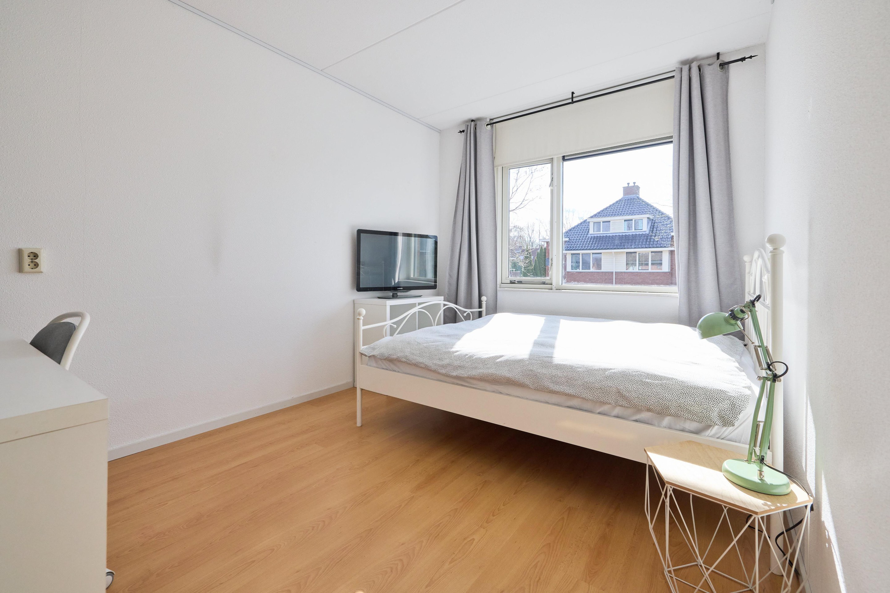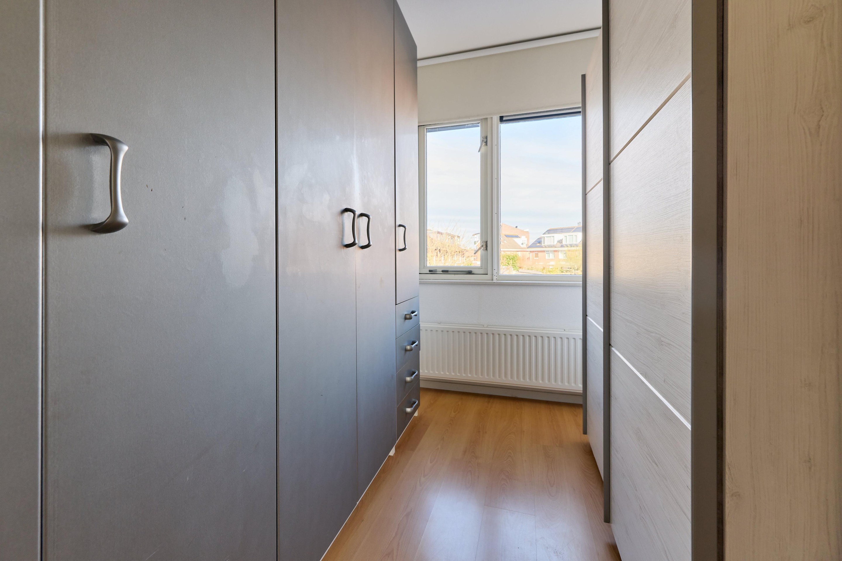 Eerste verdieping Op de eerste verdieping kom je uit op de overloop, die toegang geeft tot drie slaapkamers en de badkamer. De verdieping is voorzien van een nette laminaatvloer, wat zorgt voor een rustige en verzorgde basis. De slaapkamers zijn goed van formaat en hebben een fijne lichtinval dankzij de grote ramen. Daarnaast is er voldoende ruimte voor kasten, waardoor je ze praktisch en comfortabel kunt inrichten. De badkamer is compleet en verzorgd, met een ligbad, een aparte douche, een wastafelmeubel en een tweede toilet. De designradiator zorgt voor extra comfort en het raam brengt daglicht en natuurlijke ventilatie.