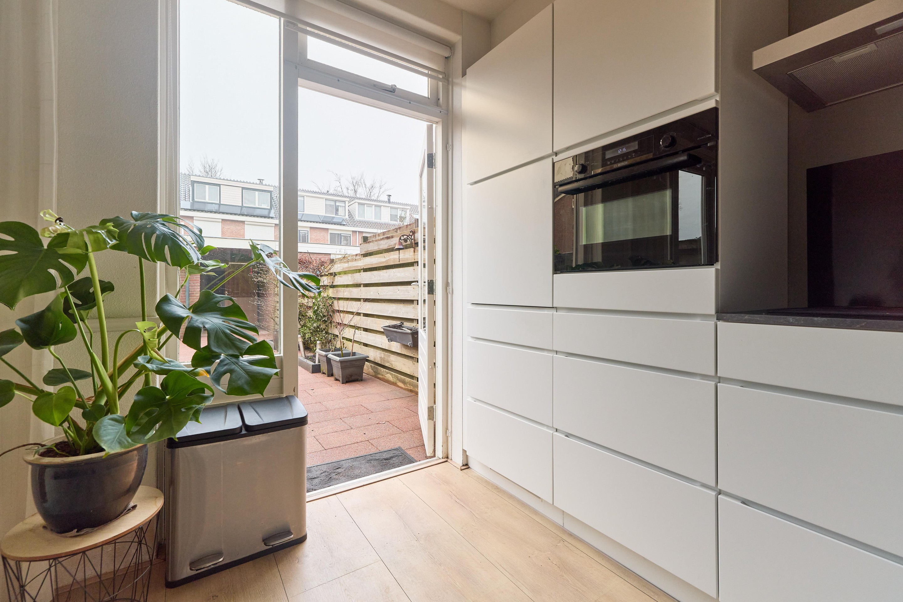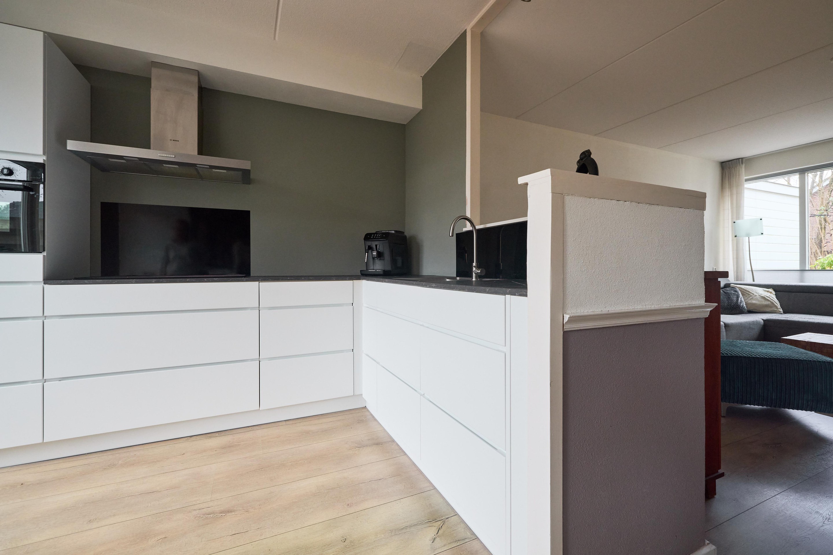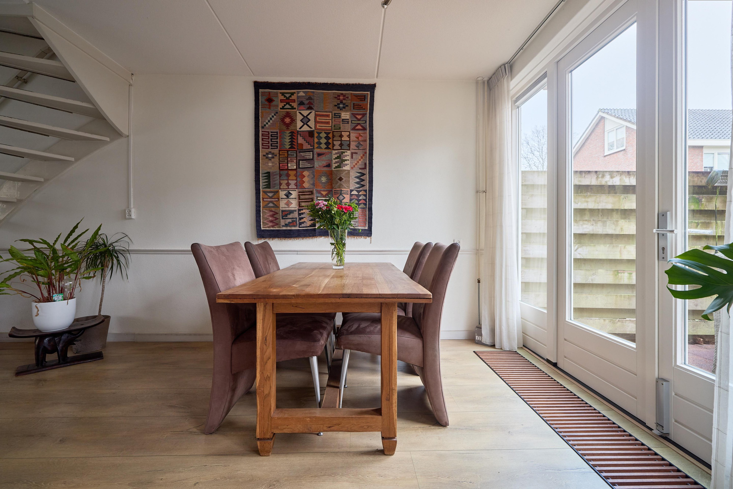 Begane grond Je komt de woning binnen via de entree aan de voorzijde. Hier bevinden zich de garderobe, de meterkast en het toilet. Vanuit de hal loop je door naar de woonkamer, die direct opvalt door de prettige lichtinval en de ruime opzet. De woonkamer is comfortabel en praktisch ingedeeld, met voldoende ruimte voor een royale zithoek. De afwerking is verzorgd en vormt een neutrale basis die past bij verschillende woonstijlen. De open verbinding met de keuken zorgt voor een ruimtelijk gevoel en maakt deze verdieping tot een fijne leefruimte. De open keuken (2022) is modern uitgevoerd en voorzien van een complete keukenopstelling met veel werk- en kastruimte. De keuken is uitgerust met een 5-pits inductiekookplaat, afzuigkap, vaatwasmachine, koelkast, vriezer en combimagnetron. Direct naast de keuken is ruimte voor een eettafel, waardoor koken en dineren op een natuurlijke manier één geheel vormen. Via de openslaande deuren loop je vanuit de woonkamer direct de achtertuin in, wat zorgt voor een prettige verbinding tussen binnen en buiten. De begane grond vormt hiermee een comfortabele en functionele woonlaag, waar wonen, koken en eten naadloos in elkaar overlopen.