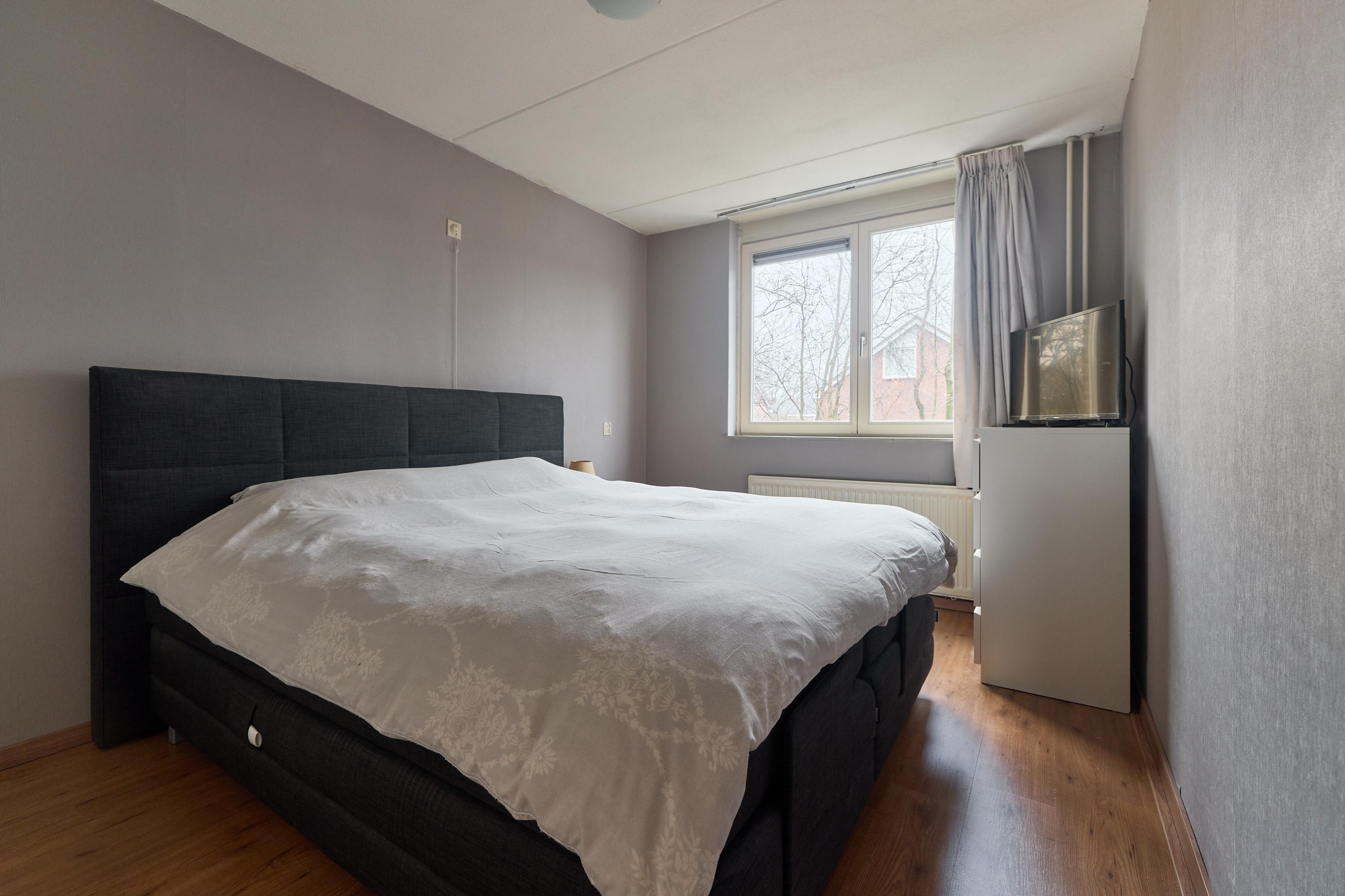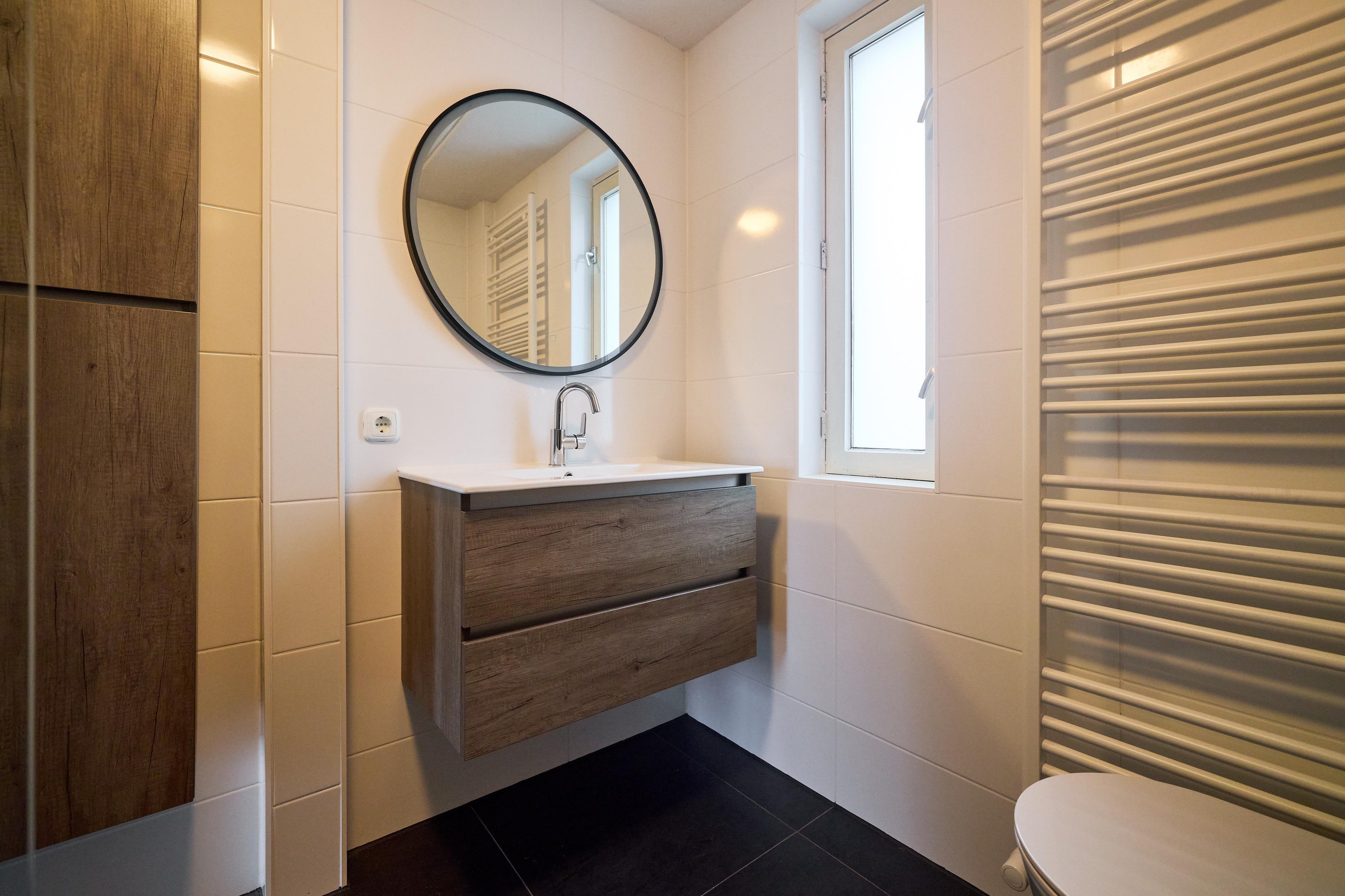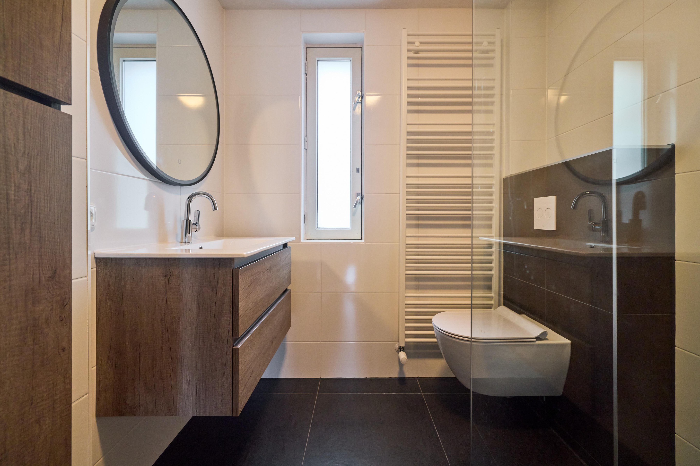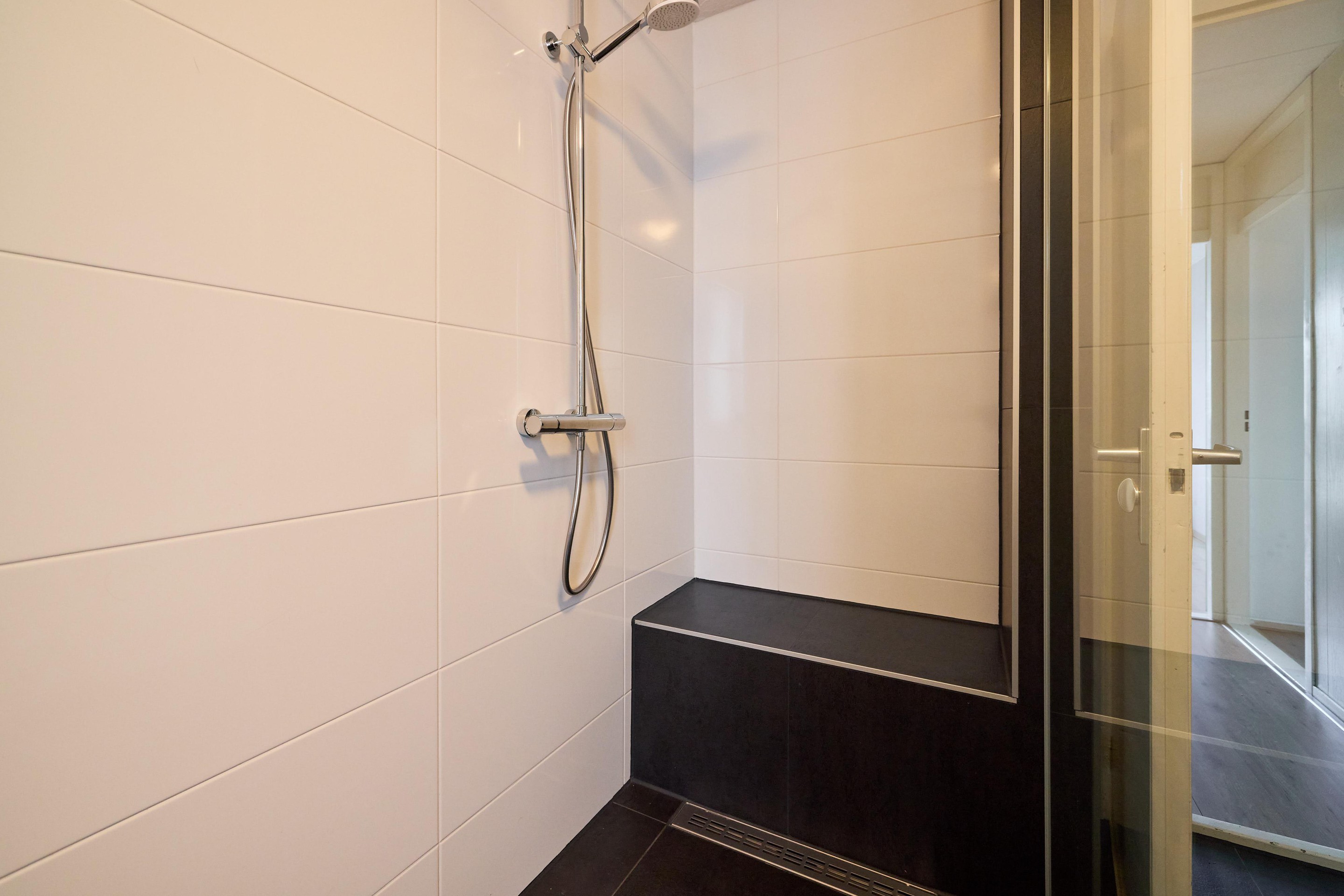Eerste verdieping Via de vaste trap bereik je de eerste verdieping. Hier bevinden zich drie slaapkamers, allemaal prettig van formaat en praktisch in te delen. De hoofdslaapkamer is voorzien van een fraaie vaste kastenwand, wat zorgt voor veel bergruimte en een opgeruimde uitstraling. De kamers zijn licht en veelzijdig, geschikt als slaap-, werk- of hobbyruimte. Net als de rest van de woning is ook deze verdieping voorzien van een laminaatvloer, waarbij per woonlaag is gekozen voor een passende afwerking. De badkamer (2022) is luxe uitgevoerd en straalt comfort en kwaliteit uit. Deze moderne badkamer is voorzien van een stijlvol wastafelmeubel, een hangend toilet en een royale inloopdouche met zitbank. Dankzij het raam is er natuurlijke lichtinval en goede ventilatiemogelijkheid, wat bijdraagt aan een prettige dagelijkse gebruikservaring. De eerste verdieping vormt hiermee een comfortabele en complete slaapverdieping, met een fijne combinatie van ruimte, functionaliteit en modern afwerkingsniveau.