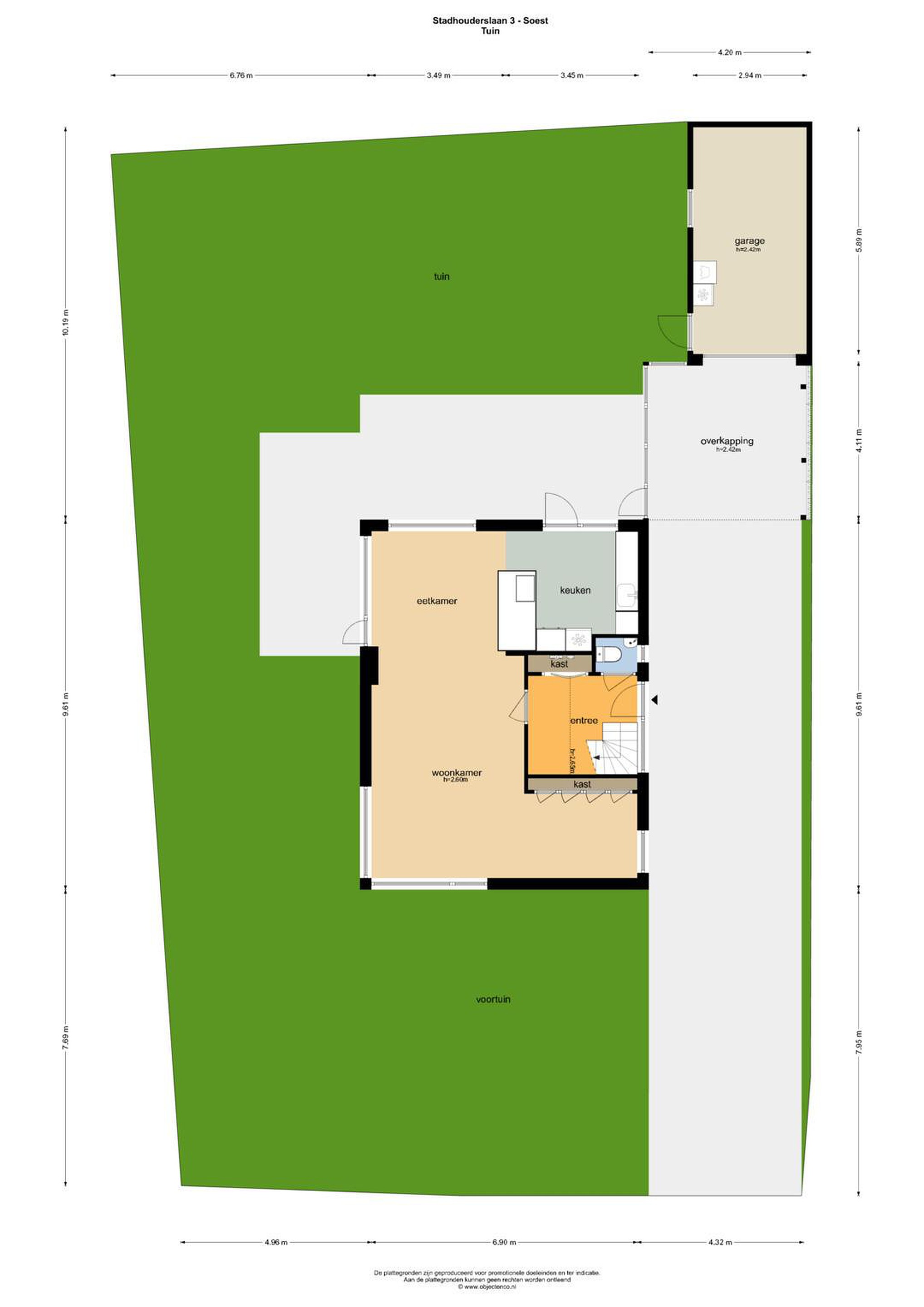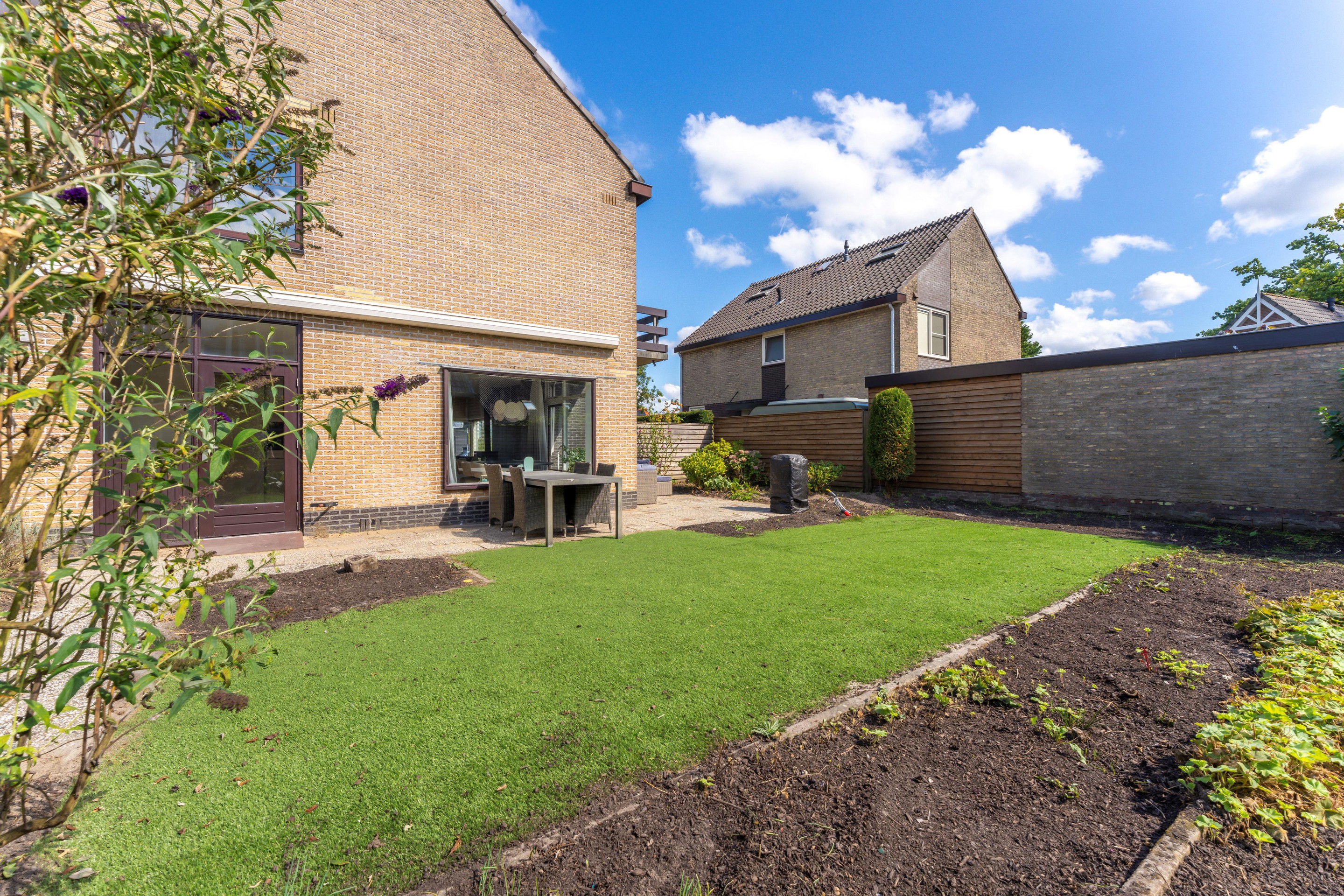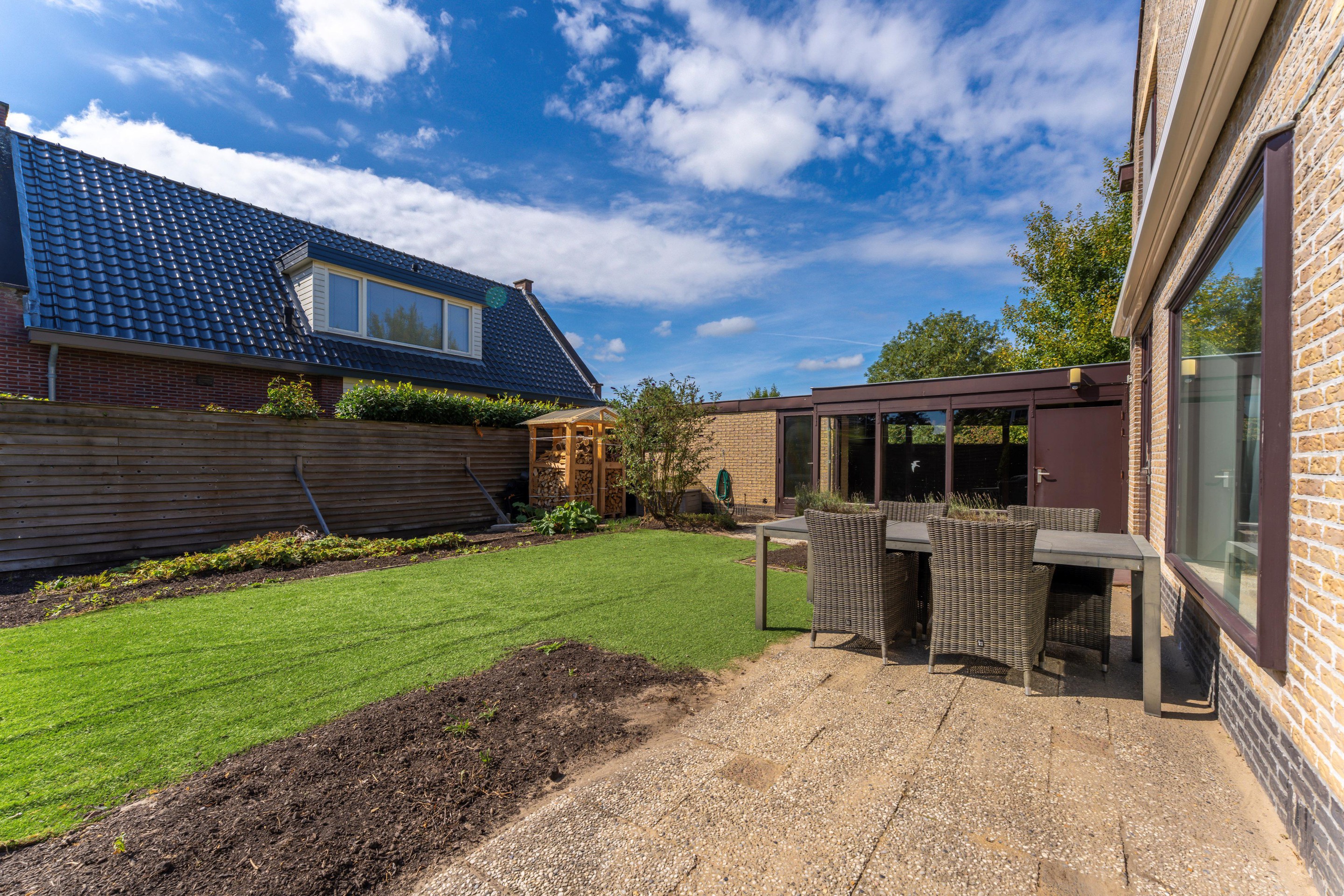 Aan de voorzijde van de woning ligt een ruime oprit die plaats biedt aan meerdere auto’s. De voortuin ligt op het oosten en ontvangt daarmee de ochtendzon: een fijne plek om de dag rustig te beginnen met een kop koffie. De achtertuin ligt op het westen en is daardoor ideaal om in de middag en avond van de zon te genieten. Er is volop ruimte voor een groot terras en een speelplek, met daarnaast voldoende mogelijkheden voor groen en beplanting naar eigen smaak. Dankzij de vrije ligging ervaar je hier veel rust en privacy. De woning beschikt bovendien over een ruime garage met carport. Deze praktische ruimte is ideaal voor het stallen van fietsen, motor of auto, maar kan ook uitstekend gebruikt worden als werkplaats of extra bergruimte. Vanuit zowel de tuin als de oprit is de garage goed bereikbaar.