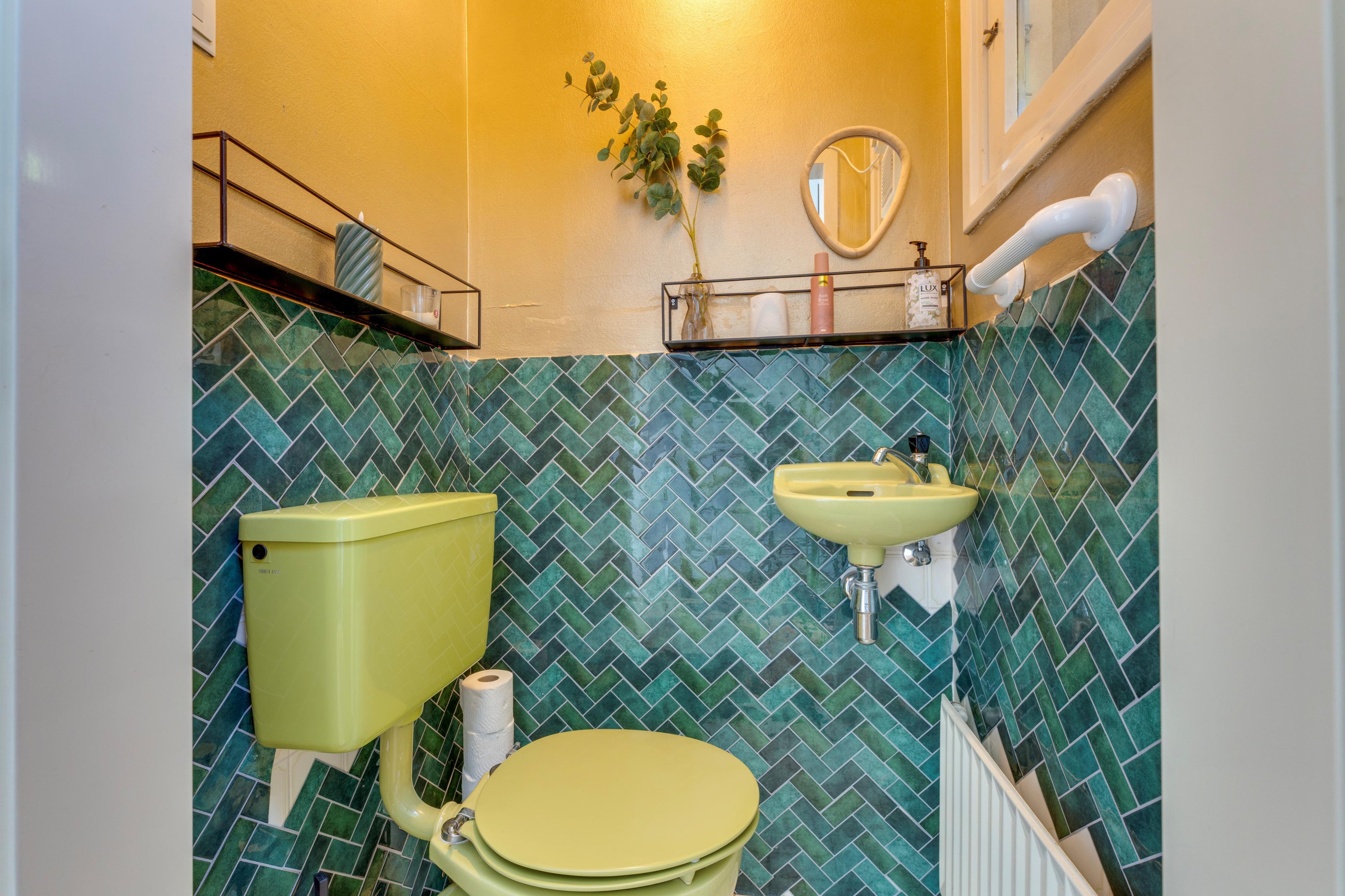 Eerste verdieping De overloop geeft toegang tot vier volwaardige slaapkamers en de badkamer. De slaapkamers zijn stuk voor stuk licht en ruim, met grote raampartijen die zorgen voor een prettige sfeer. Eén van de kamers aan de achterzijde beschikt bovendien over een balkon, ideaal om in de ochtendzon een kop koffie te drinken. Alle kamers zijn praktisch in te delen en daarmee geschikt als master bedroom, kinderkamer, logeerkamer of thuiswerkruimte. De badkamer is functioneel, voorzien van een douche, toilet, wastafel en ligbad. Hier ligt nog een duidelijke kans voor de nieuwe bewoners: de ruimte verdient een moderne afwerking en kan volledig naar eigen smaak worden vernieuwd.