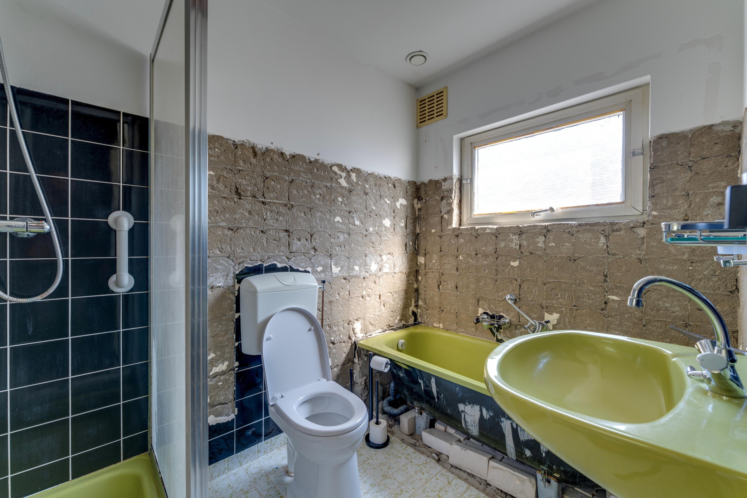 - Badkamer met ligbad, douche en toilet – klaar voor modernisering