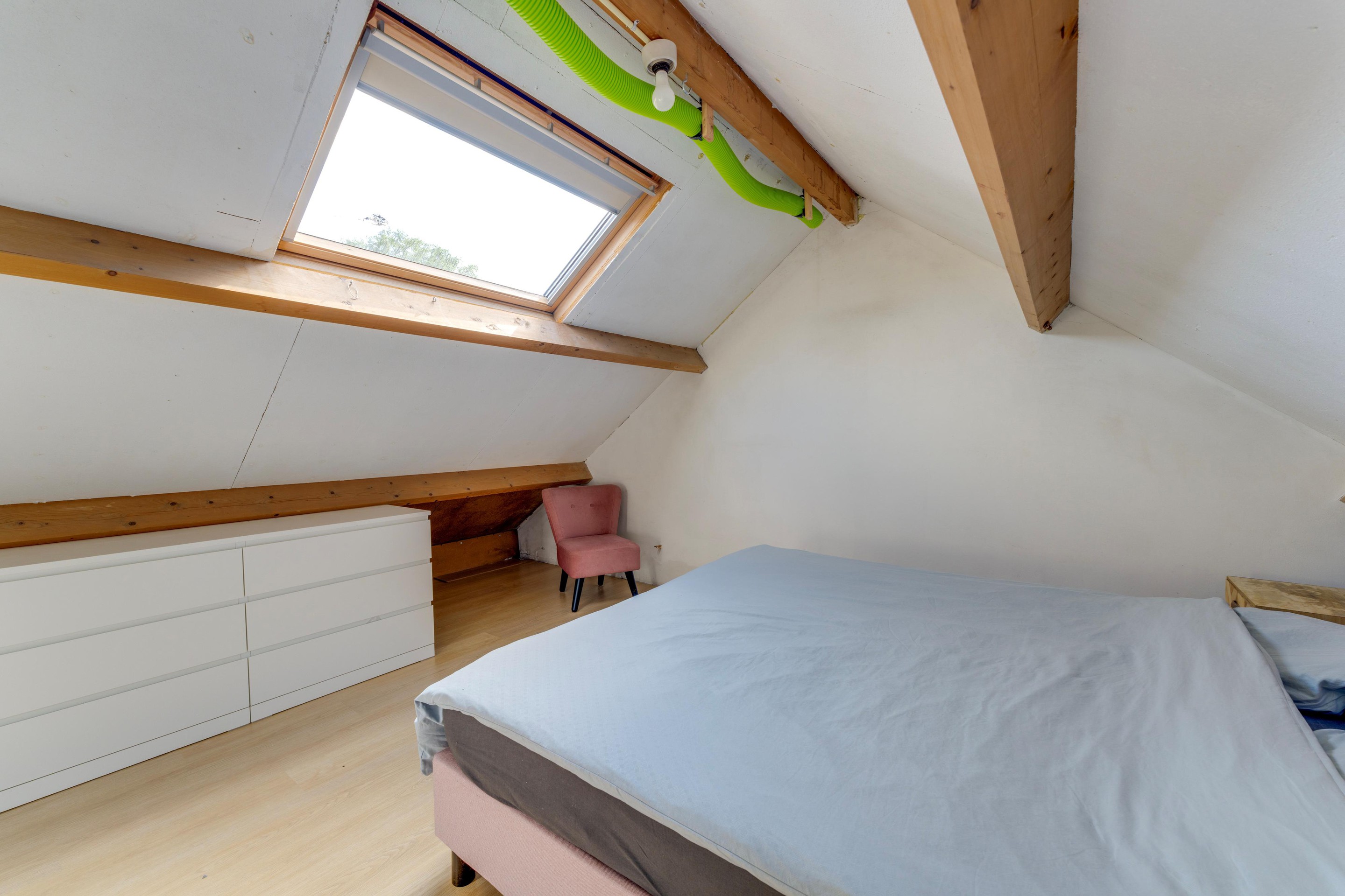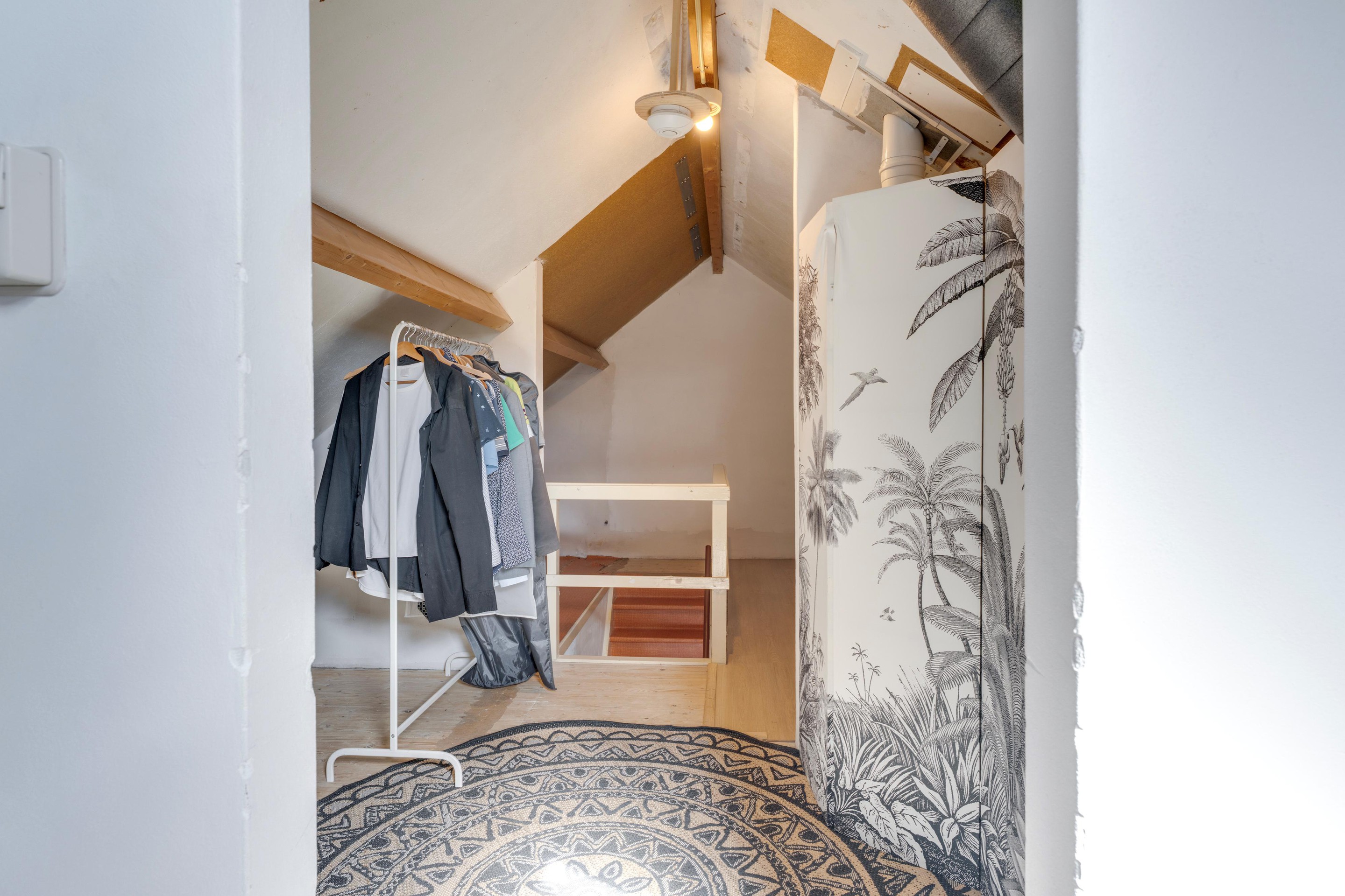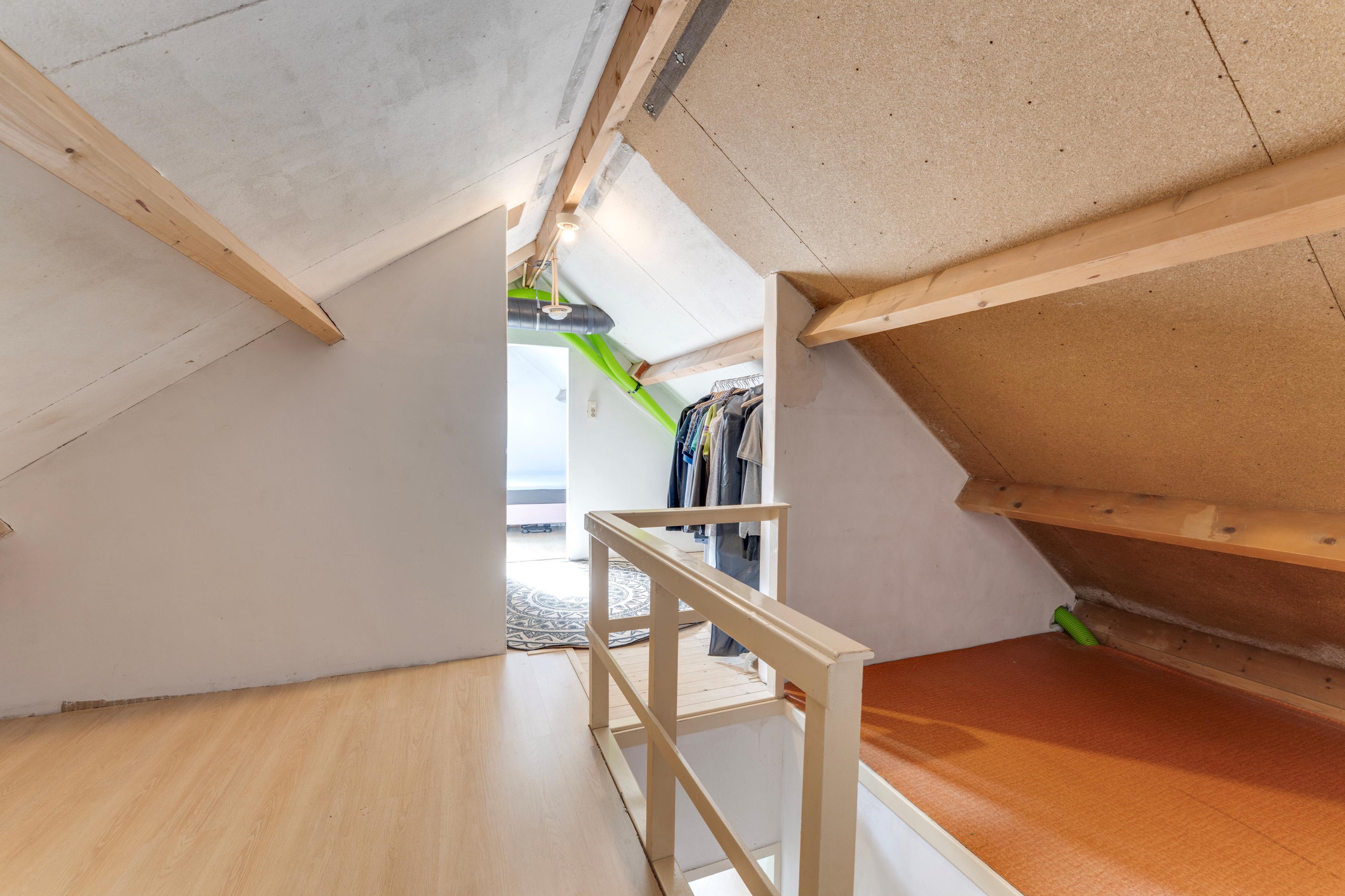 Tweede verdieping Via een vaste trap bereik je de tweede verdieping. Hier tref je een ruime slaapkamer met dakraam. De overloop biedt extra bergruimte en hier is ook de cv-installatie geplaatst. Het betreft een Nefit Trendline HRC25 / CW 4 II combiketel uit 2015, die zorgt voor zowel de verwarming als het warme water in de douche en keuken. De woning is grotendeels voorzien van vloerverwarming – zowel op de begane grond als de eerste verdieping – wat bijdraagt aan een aangenaam en gelijkmatig binnenklimaat. Daarnaast is er op deze verdieping een modern balansventilatiesysteem (Orcon HRC-500 MaxComfort) aanwezig, terwijl de begane grond is voorzien van natuurlijke ventilatie. Deze verdieping biedt volop mogelijkheden: een comfortabele extra slaapkamer, een logeerplek of juist een rustige werkruimte. Dankzij de slimme indeling blijft er bovendien voldoende bergruimte over onder de schuine dakvlakken.