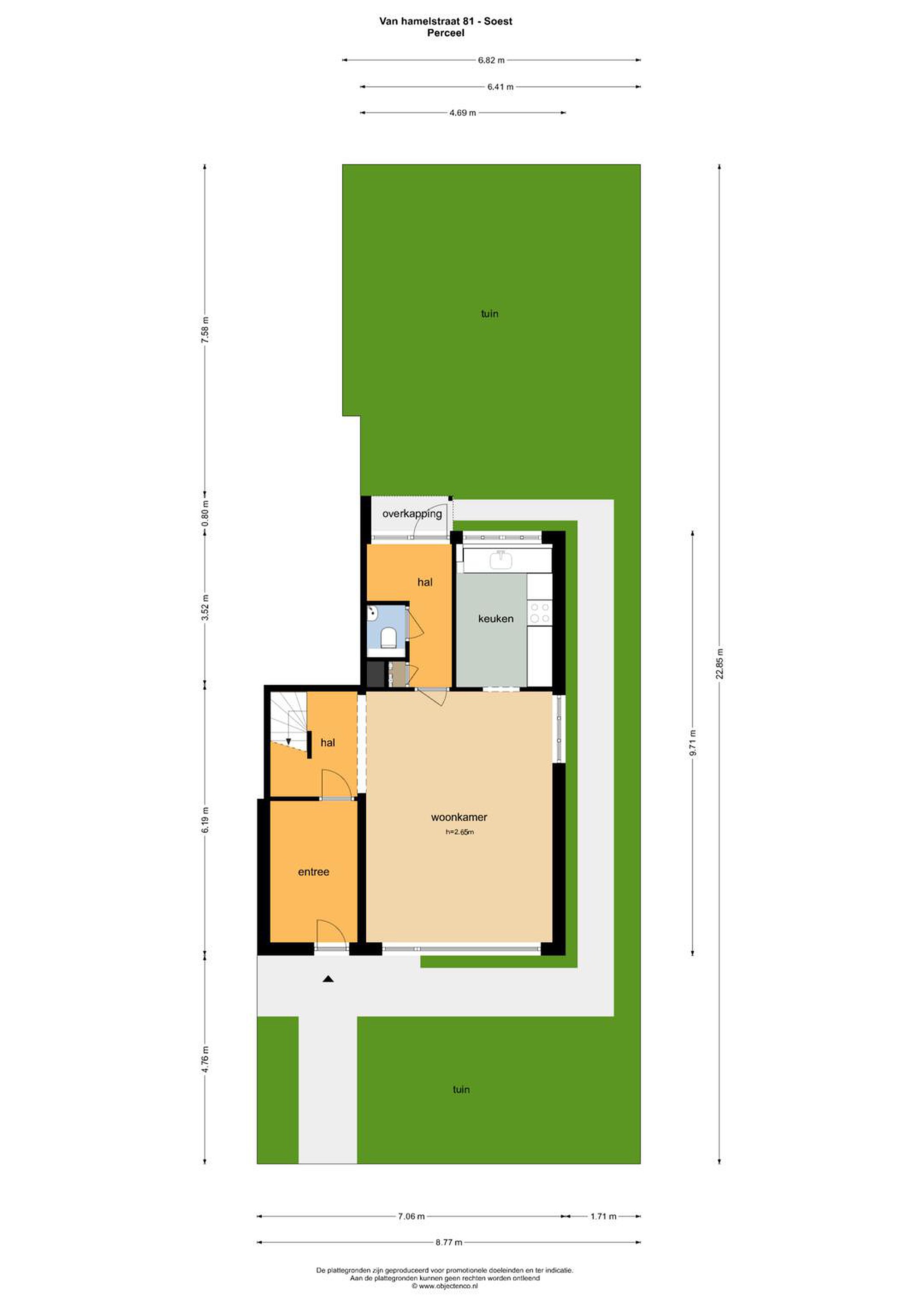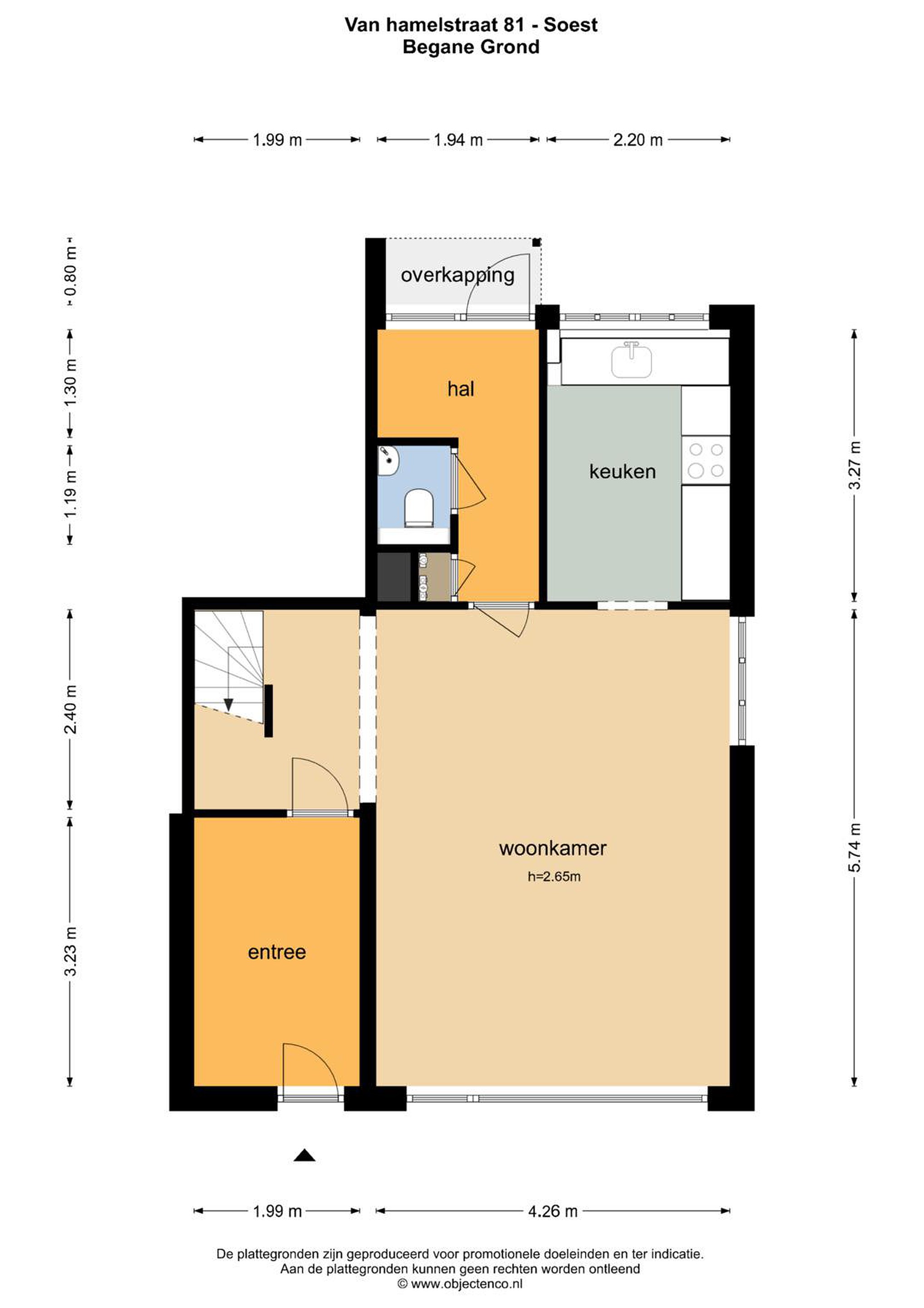 Begane grond De woning is zowel via de voor- als achterzijde te betreden, wat zorgt voor extra praktische gebruiksmogelijkheden. Aan de voorzijde kom je binnen in de hal, waar zich de meterkast en het toilet bevinden. Vanuit hier heb je toegang tot de keuken en de woonkamer. De keuken is praktisch ingedeeld en voorzien van diverse inbouwapparatuur, waaronder een oven met magnetronfunctie, een keramische 4-pits kookplaat, afzuigkap en een close-in boiler. Vanuit de keuken heb je direct toegang tot de tuin. De woonkamer bevindt zich aan de achterzijde van de woning en is ruim en licht dankzij de grote raampartijen. Hier ligt een fraaie Bruynzeel parketvloer, die zorgt voor een warme en sfeervolle uitstraling. In de woonkamer bevindt zich tevens de trapopgang naar de eerste verdieping.