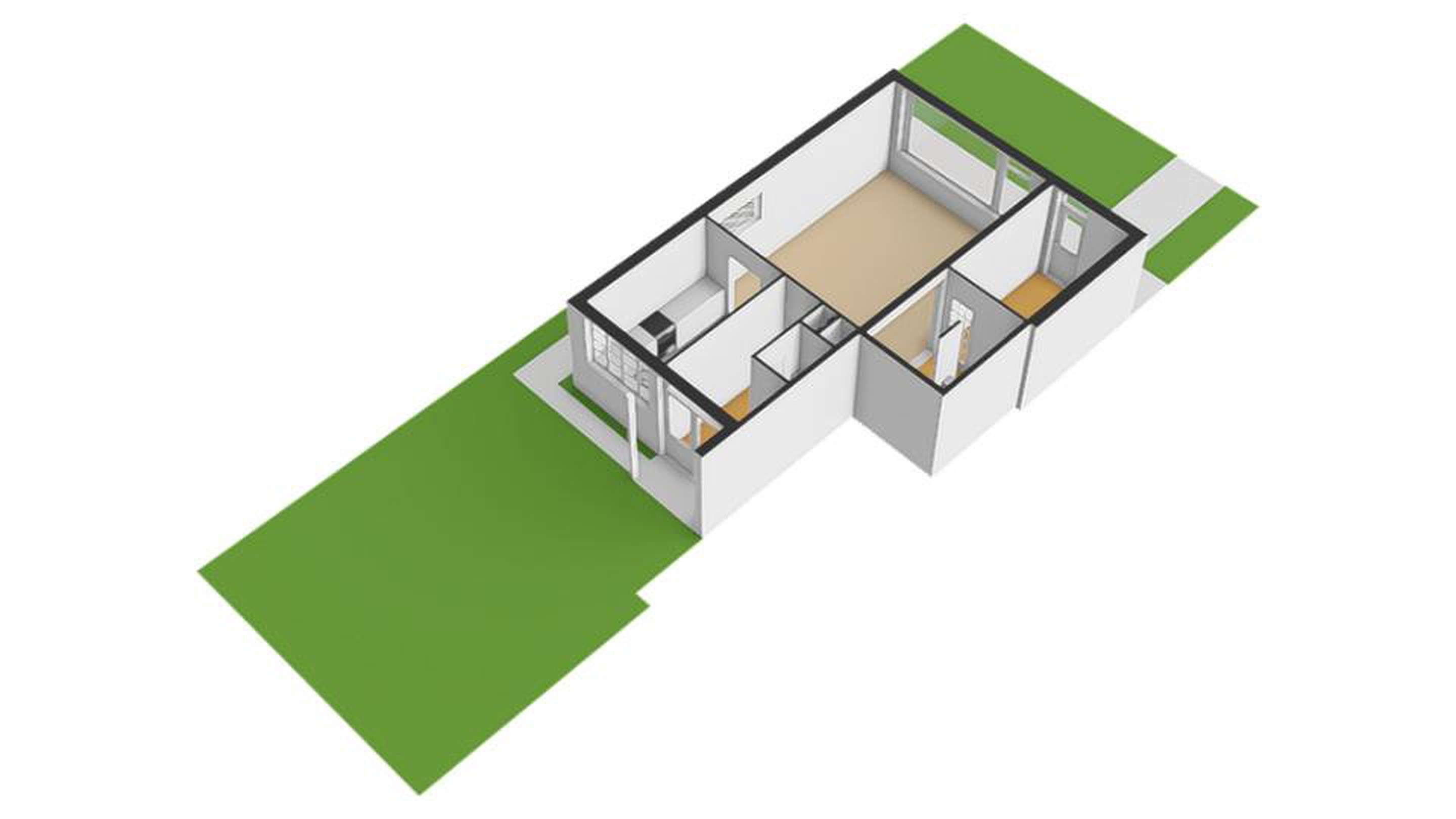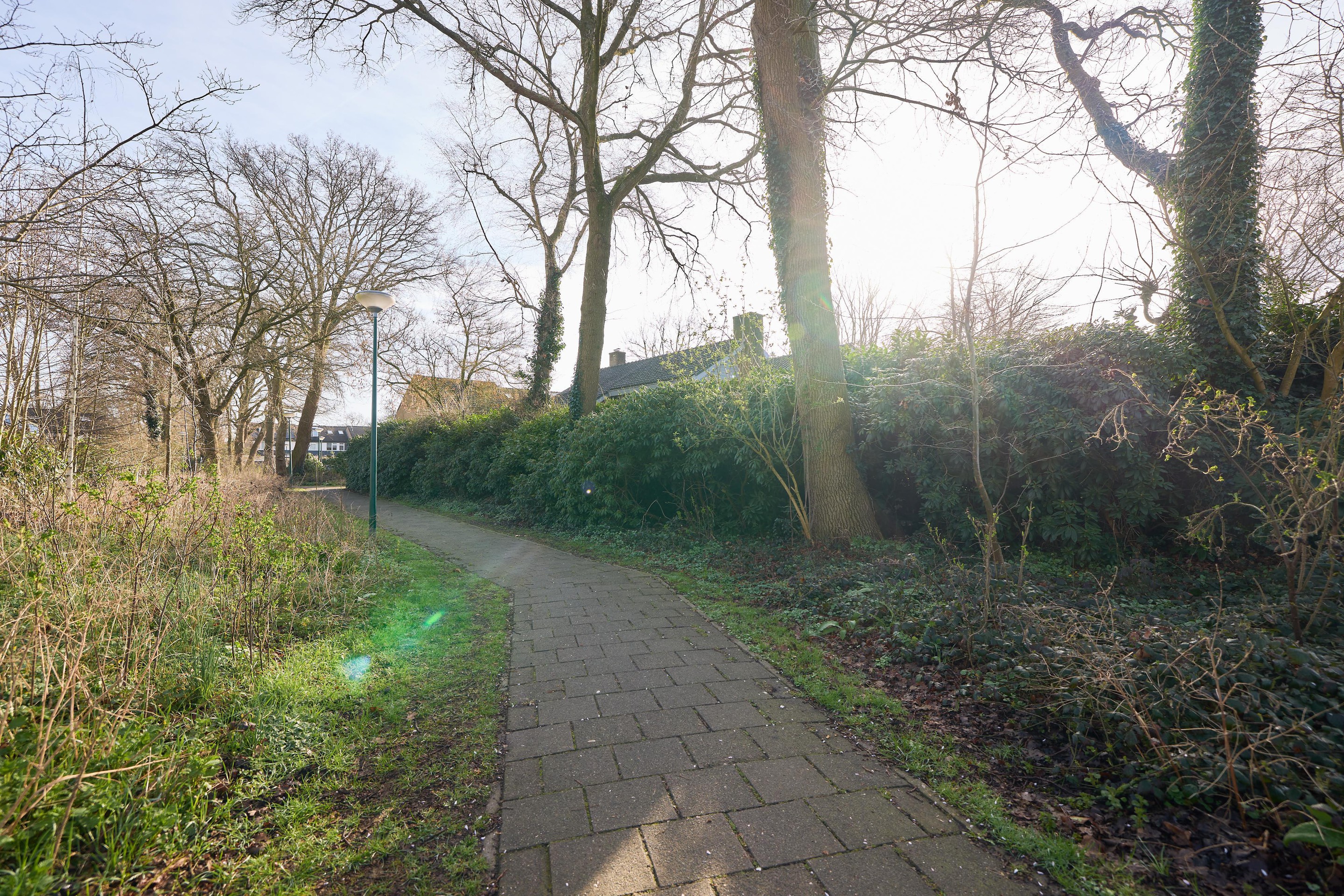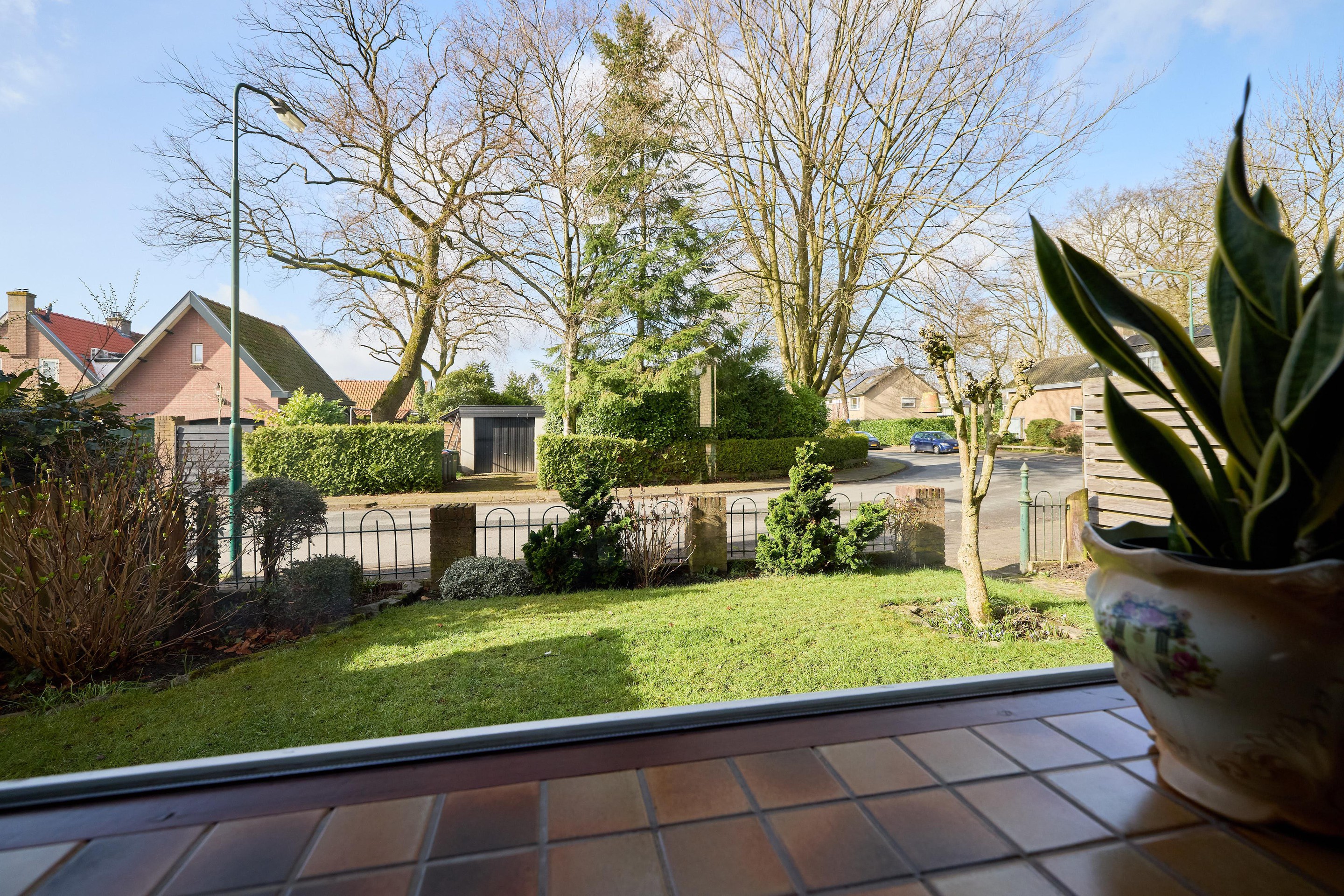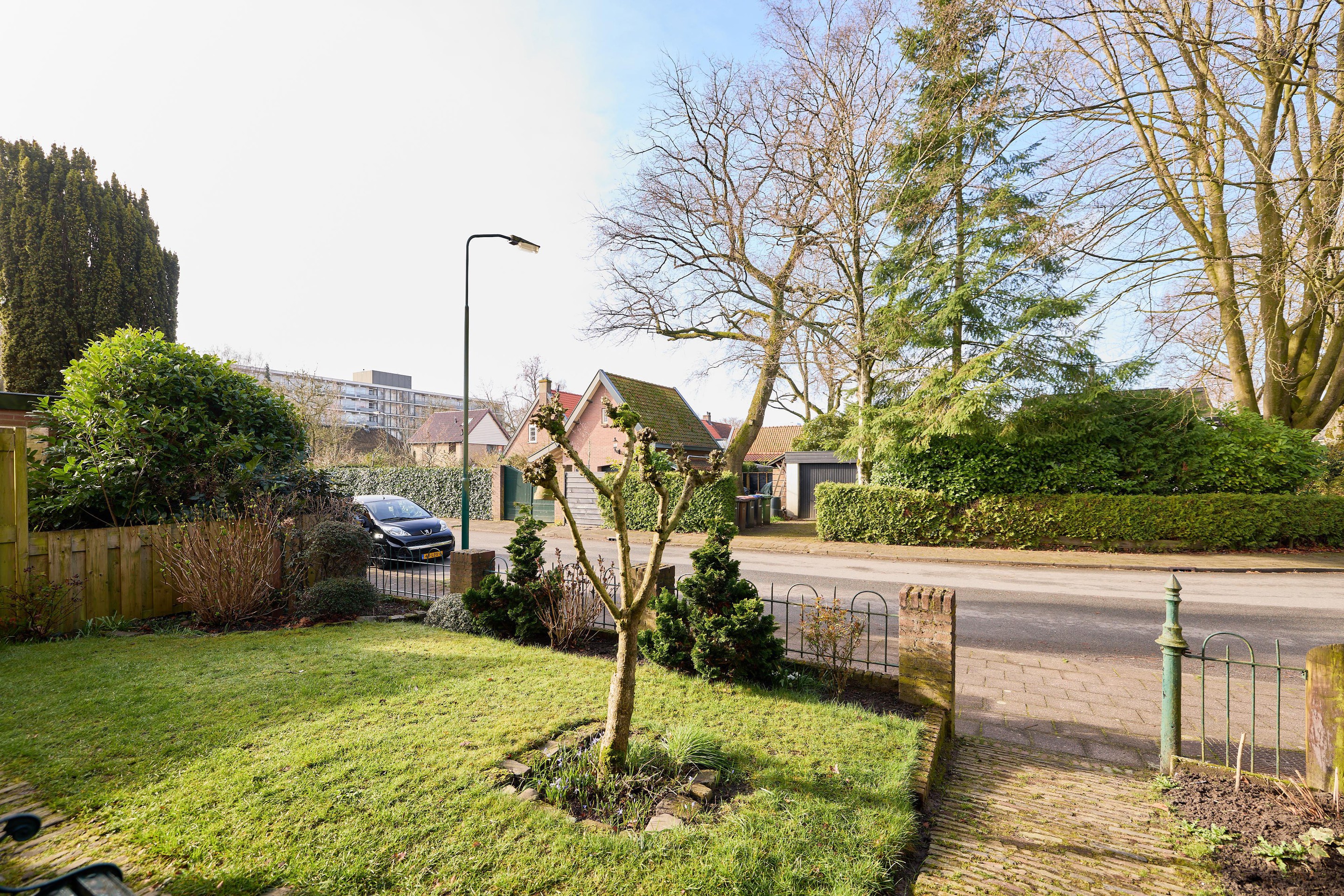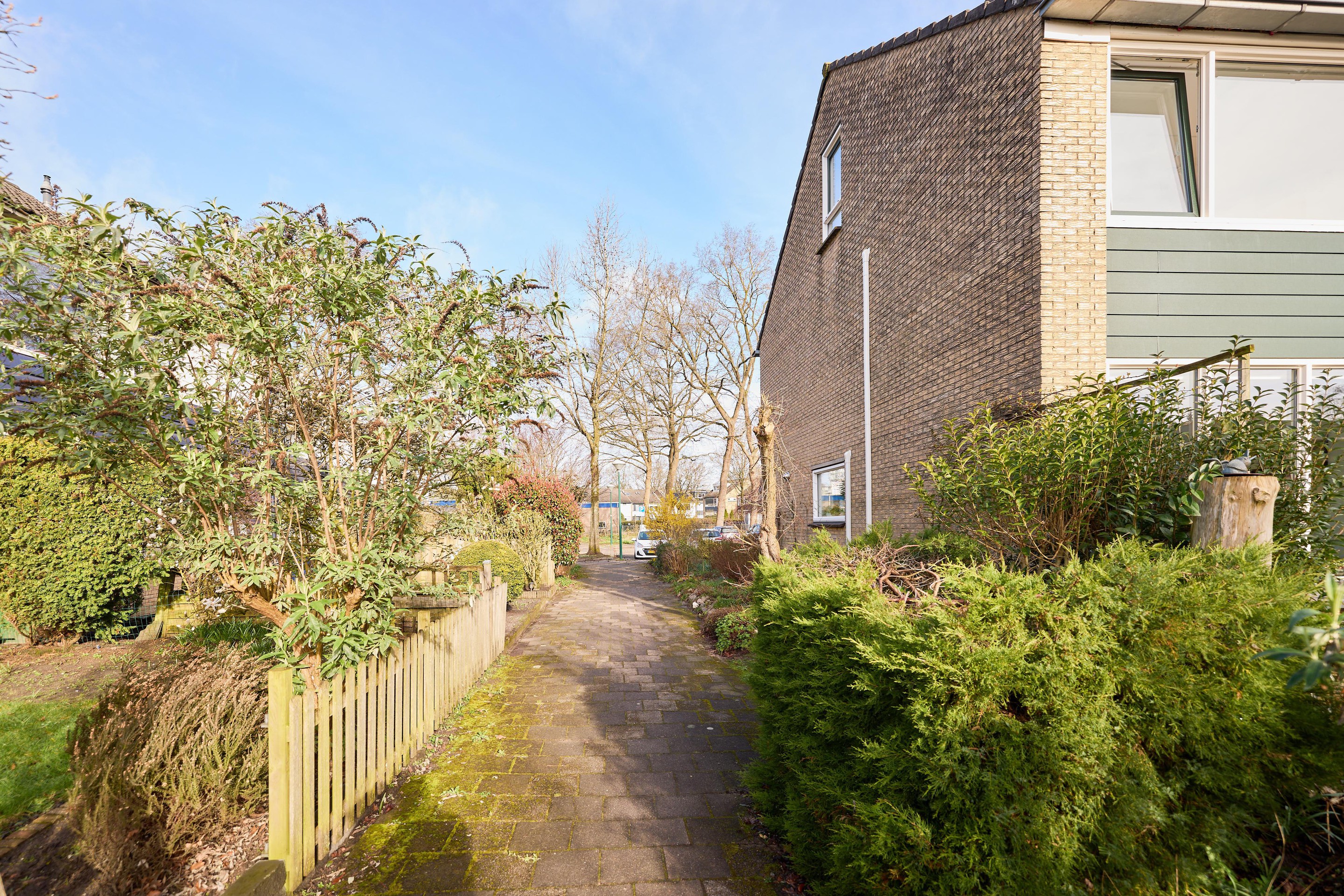 - Voortuin, grenzend aan een rustig doodlopend pad met uitsluitend bestemmingsverkeer