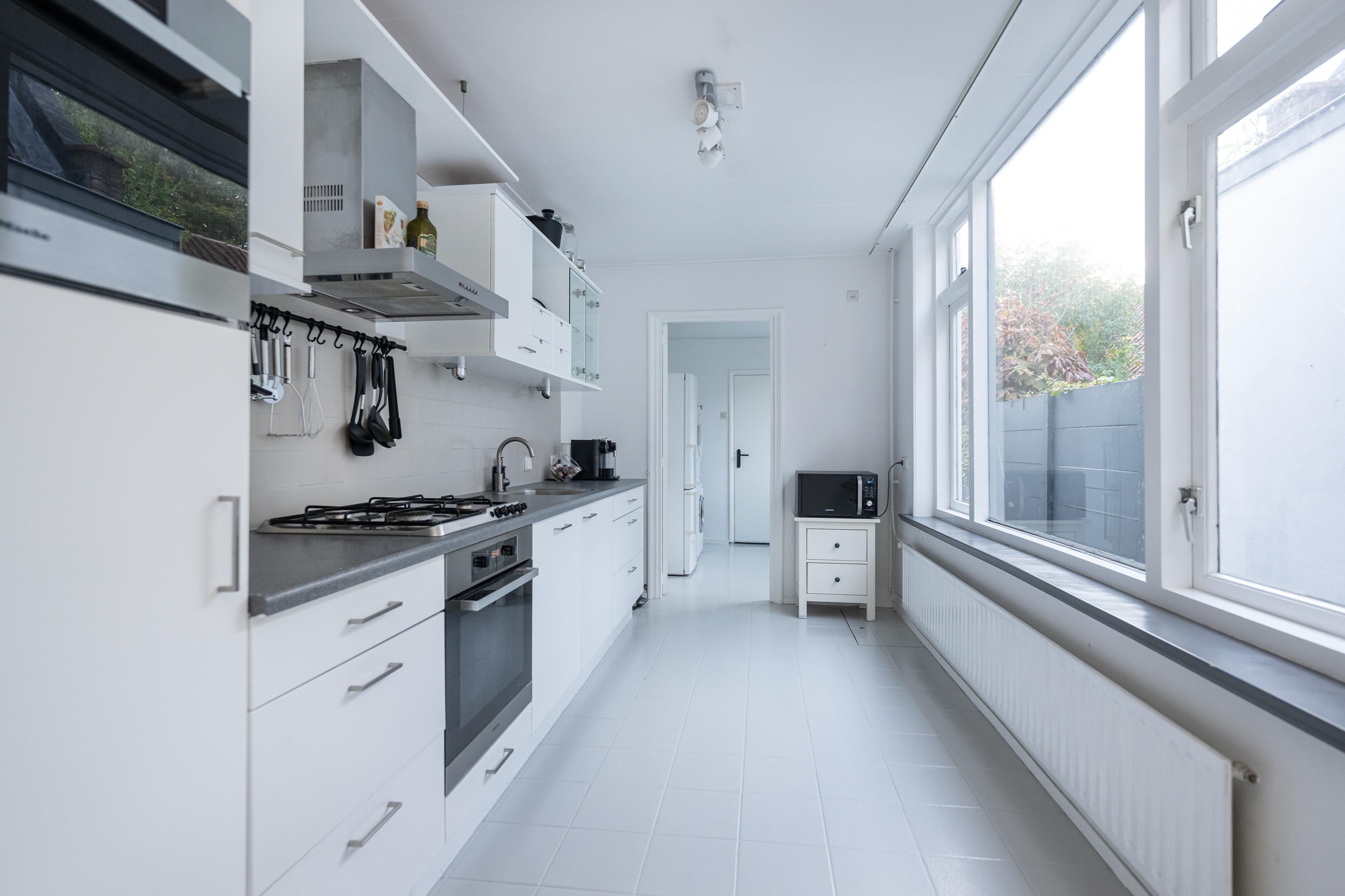 De keuken sluit harmonieus aan op de woonkamer en biedt alles wat u van een moderne keuken mag verwachten. Vanuit hier heeft u toegang tot de achtertuin, die veel privacy biedt en een fijne plek is om in de zomer te genieten van de zon of gezellig te tafelen met familie en vrienden.