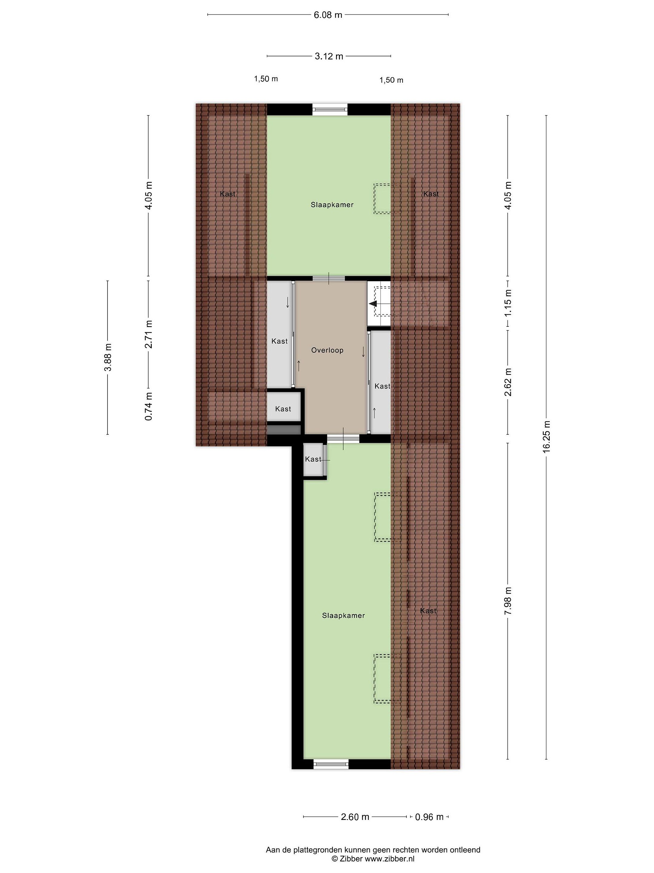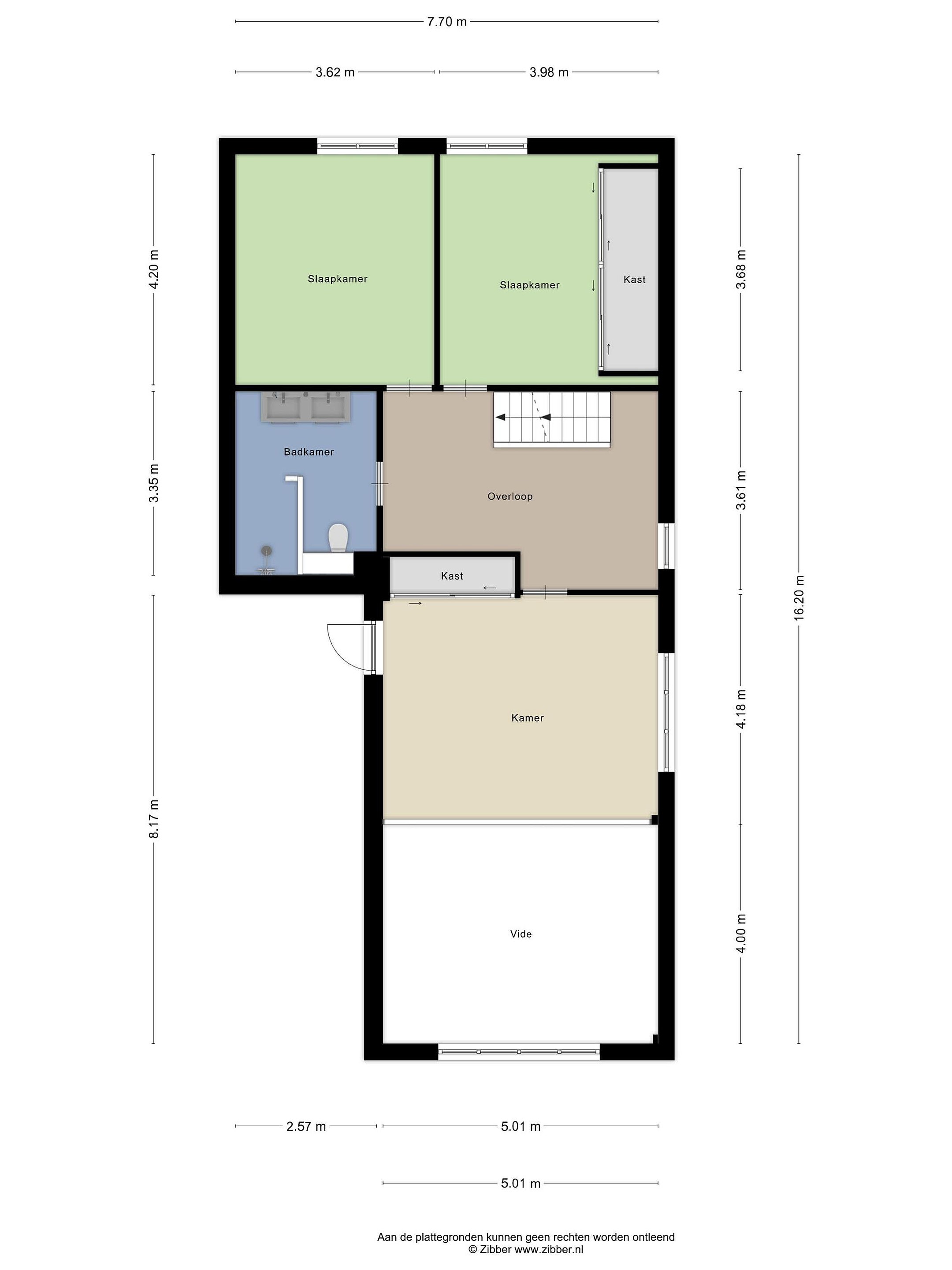 Tweede verdieping Overloop, 2 slaapkamers, bergruimte en dakramen voor veel licht.