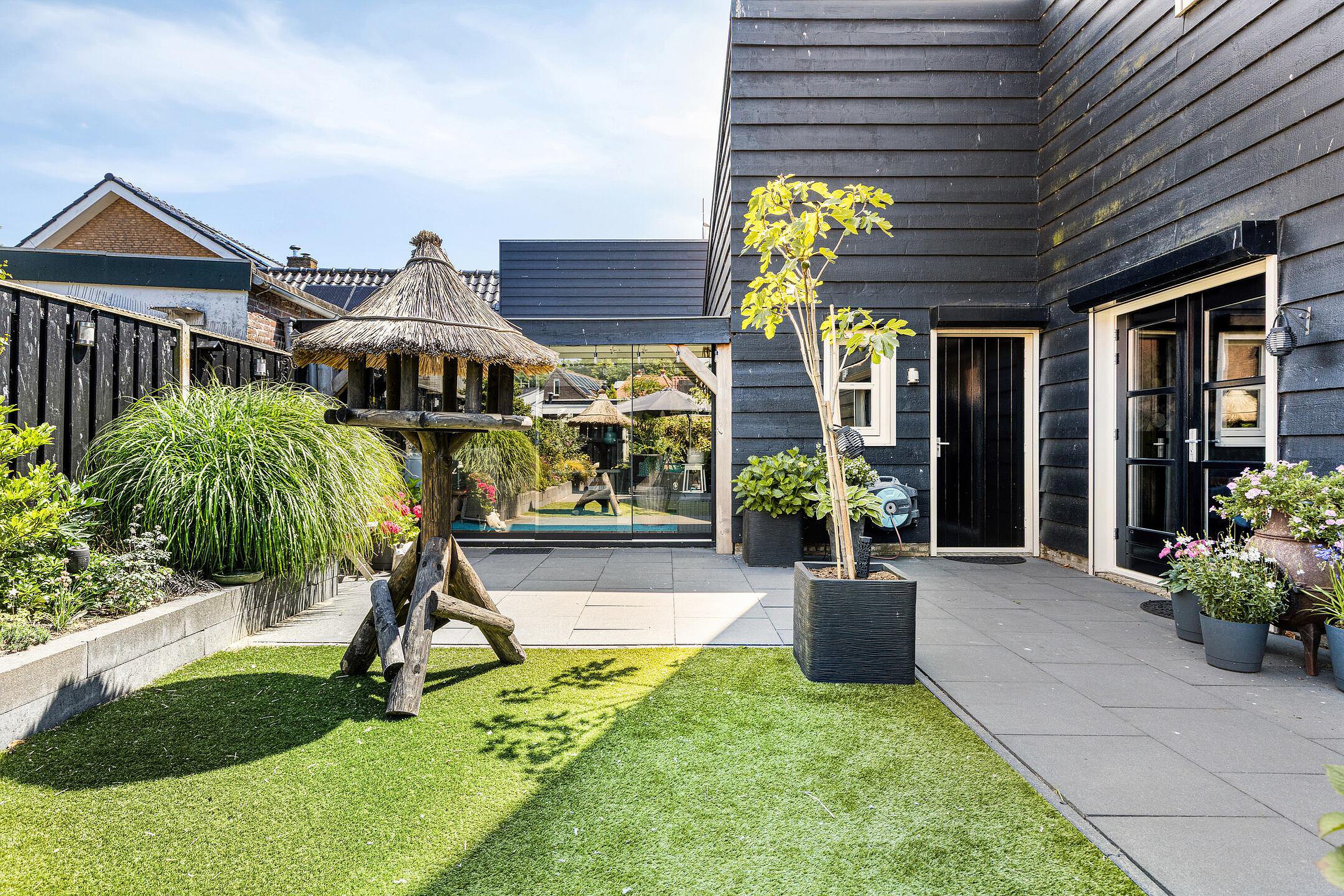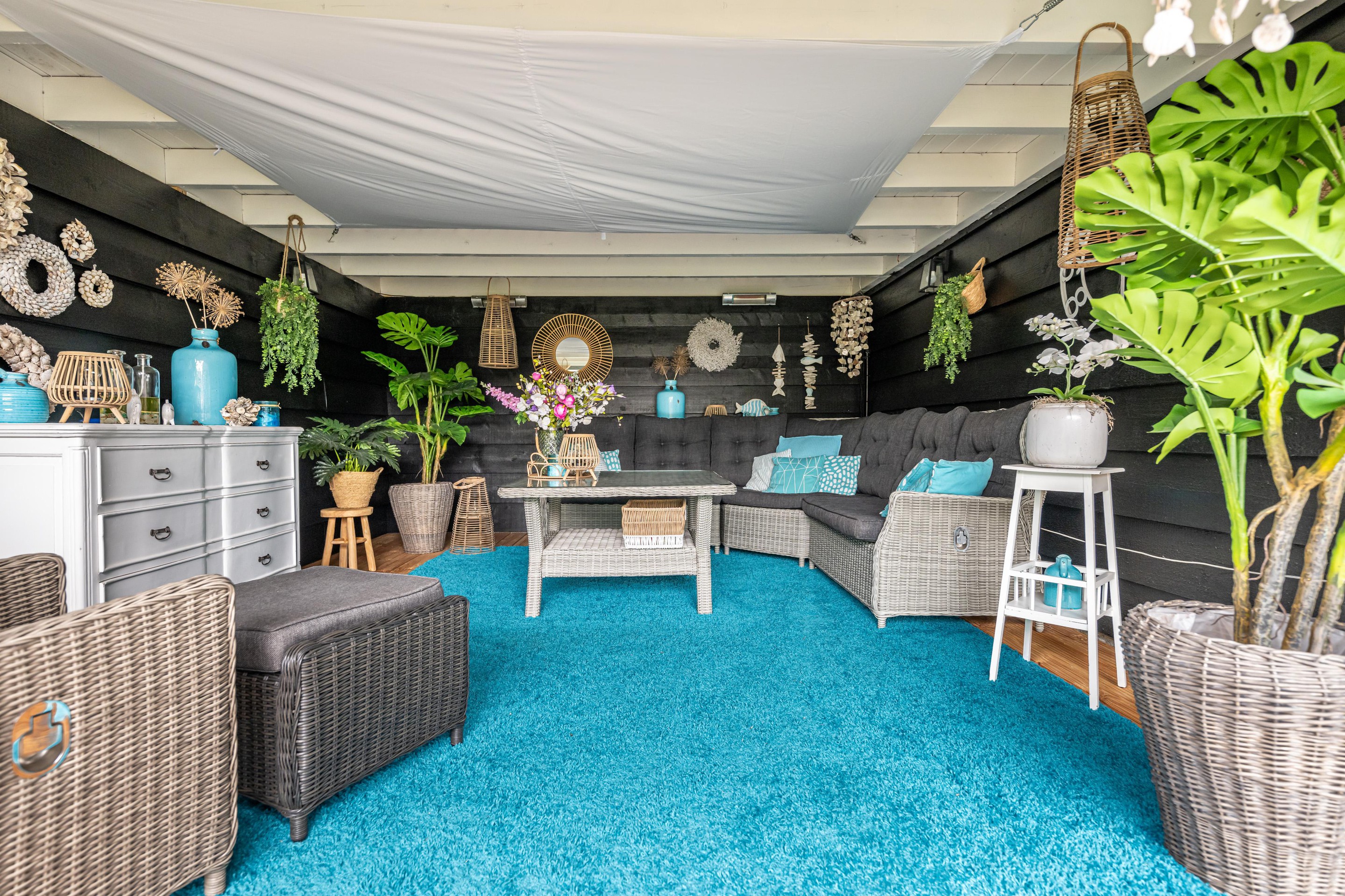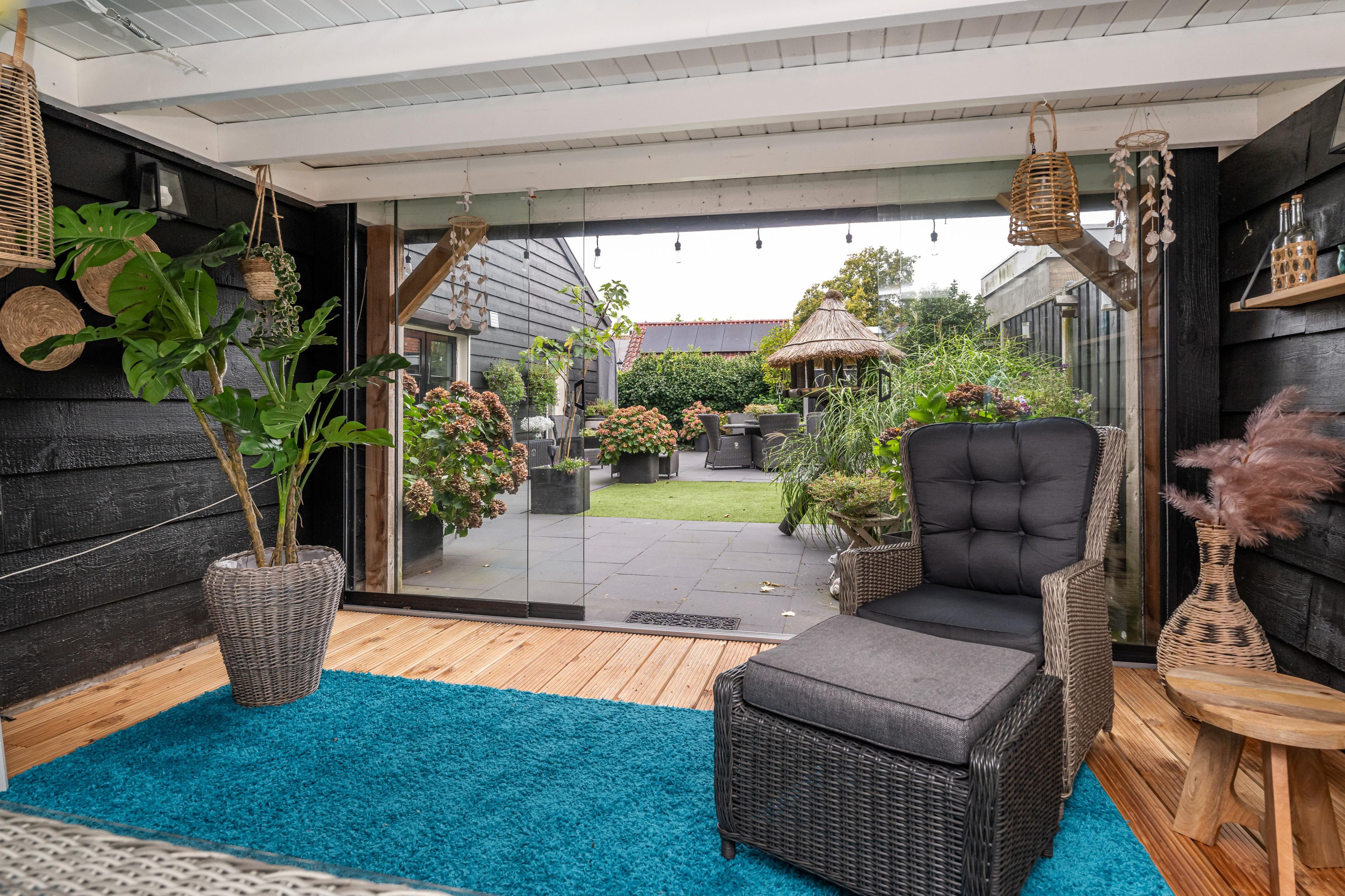 Tuin Buiten vind je een eigen oprit met ruimte voor twee auto’s, een nieuw hekwerk in wording, een onderhoudsvriendelijke achtertuin met kunstgras en borders, en een fraaie overkapping met glazen schuifwanden en elektra.