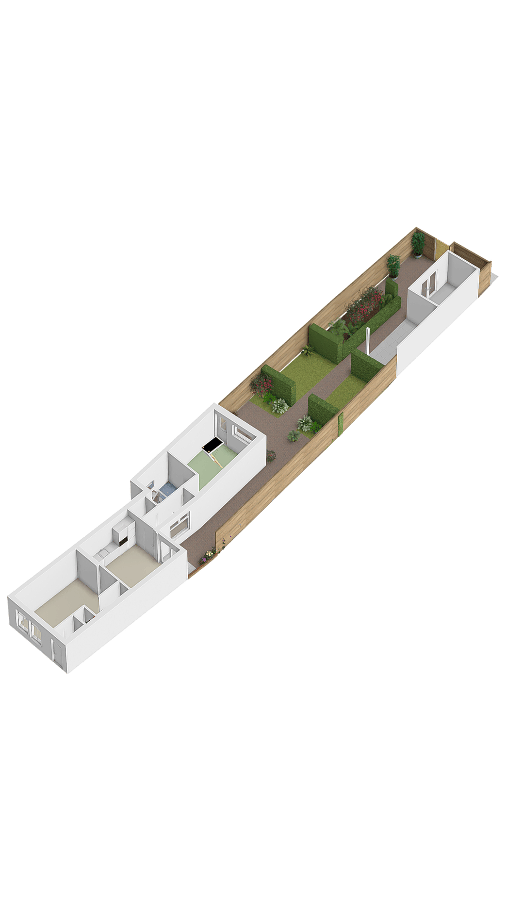 Tuin Achter de woning ligt een bijzonder diepe tuin die je veel privacy en mogelijkheden biedt. Het eerste deel van de tuin is onderhoudsvriendelijk aangelegd met terrassen en groen, waarna je via het pad bij de berging uitkomt. Hier vind je ook de overkapping, perfect voor lange zomeravonden.
