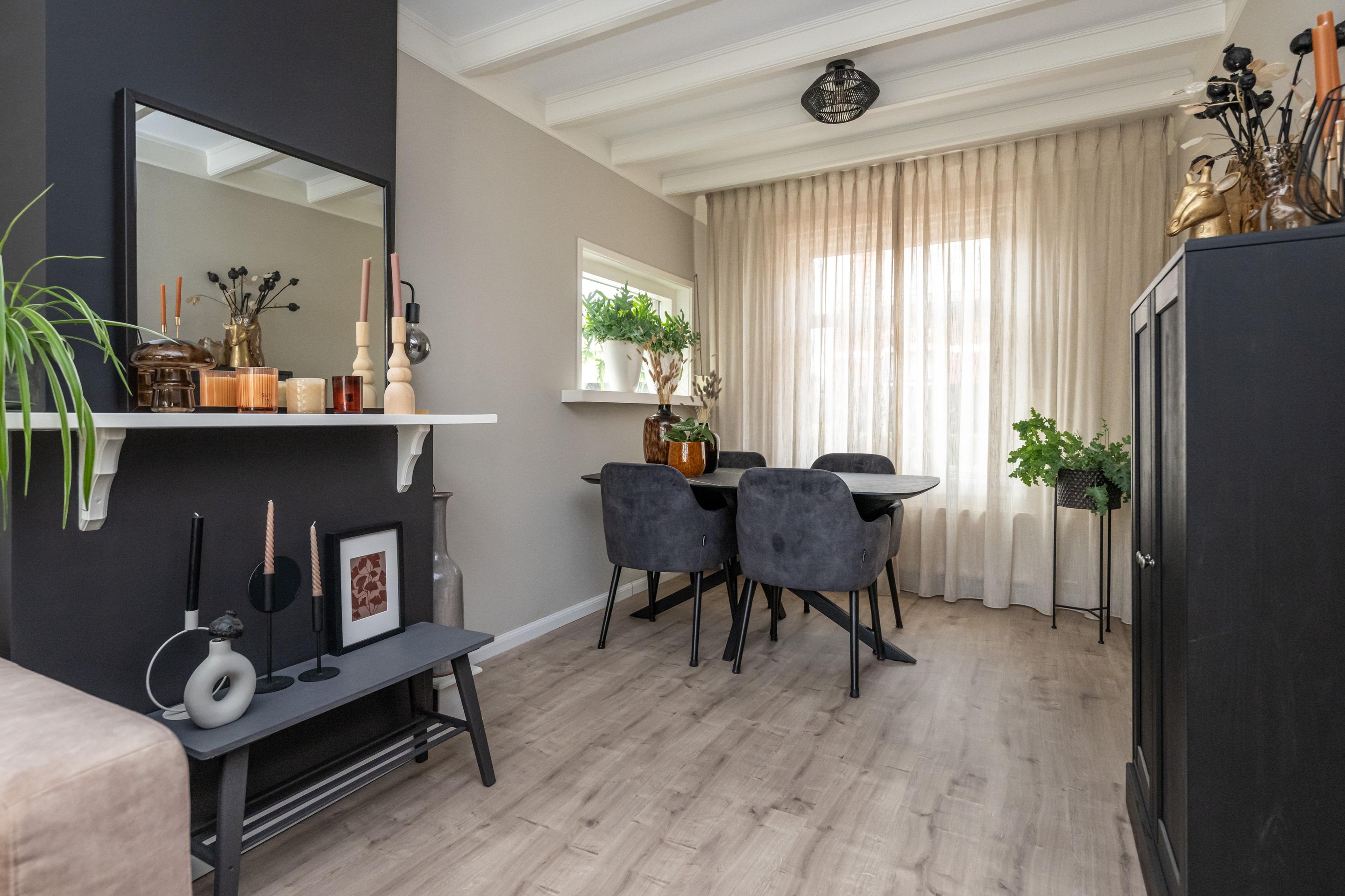 Laminaatvloer, schouw, rolluiken (deels elektrisch en deels handmatig) en radiator.