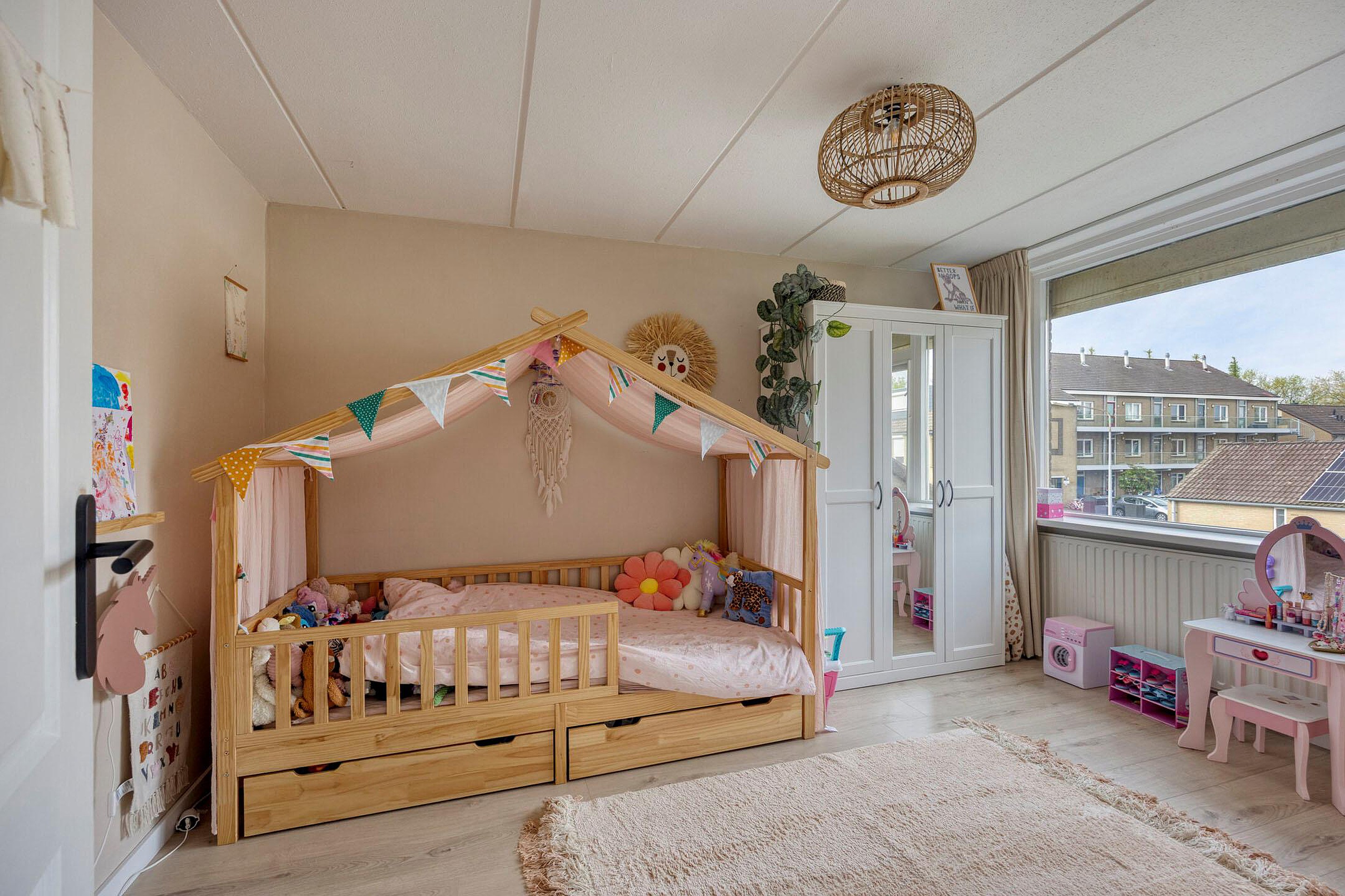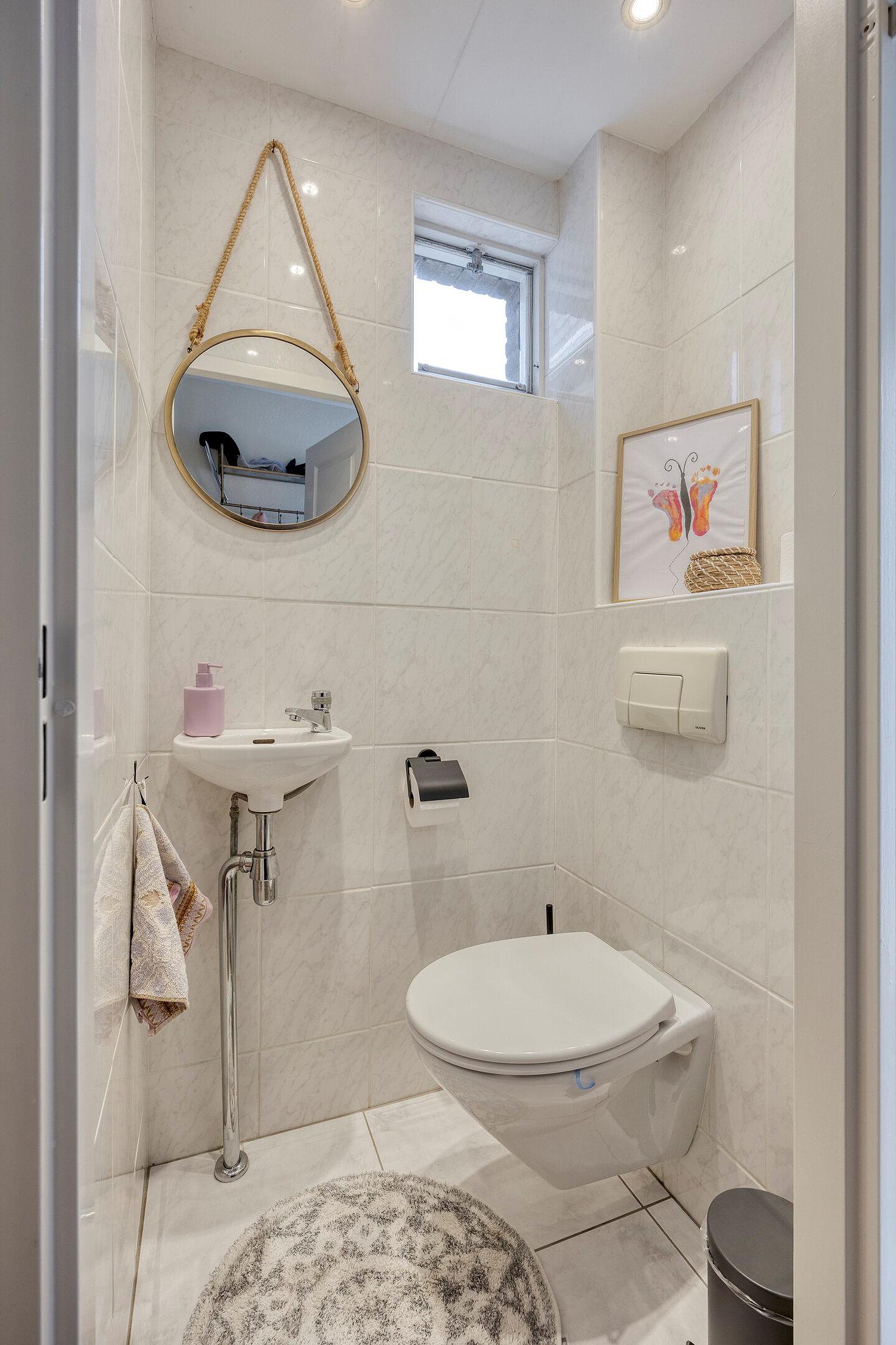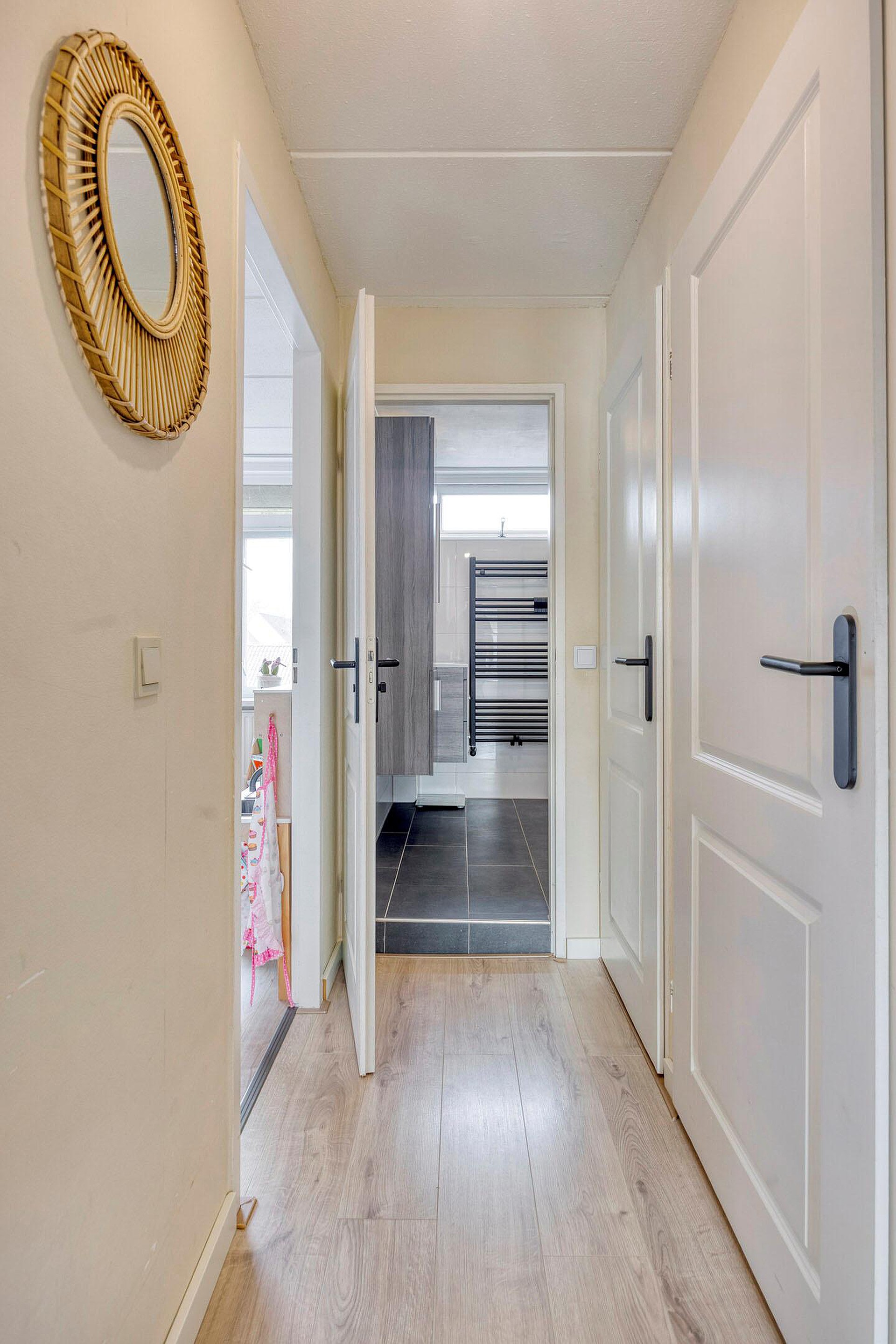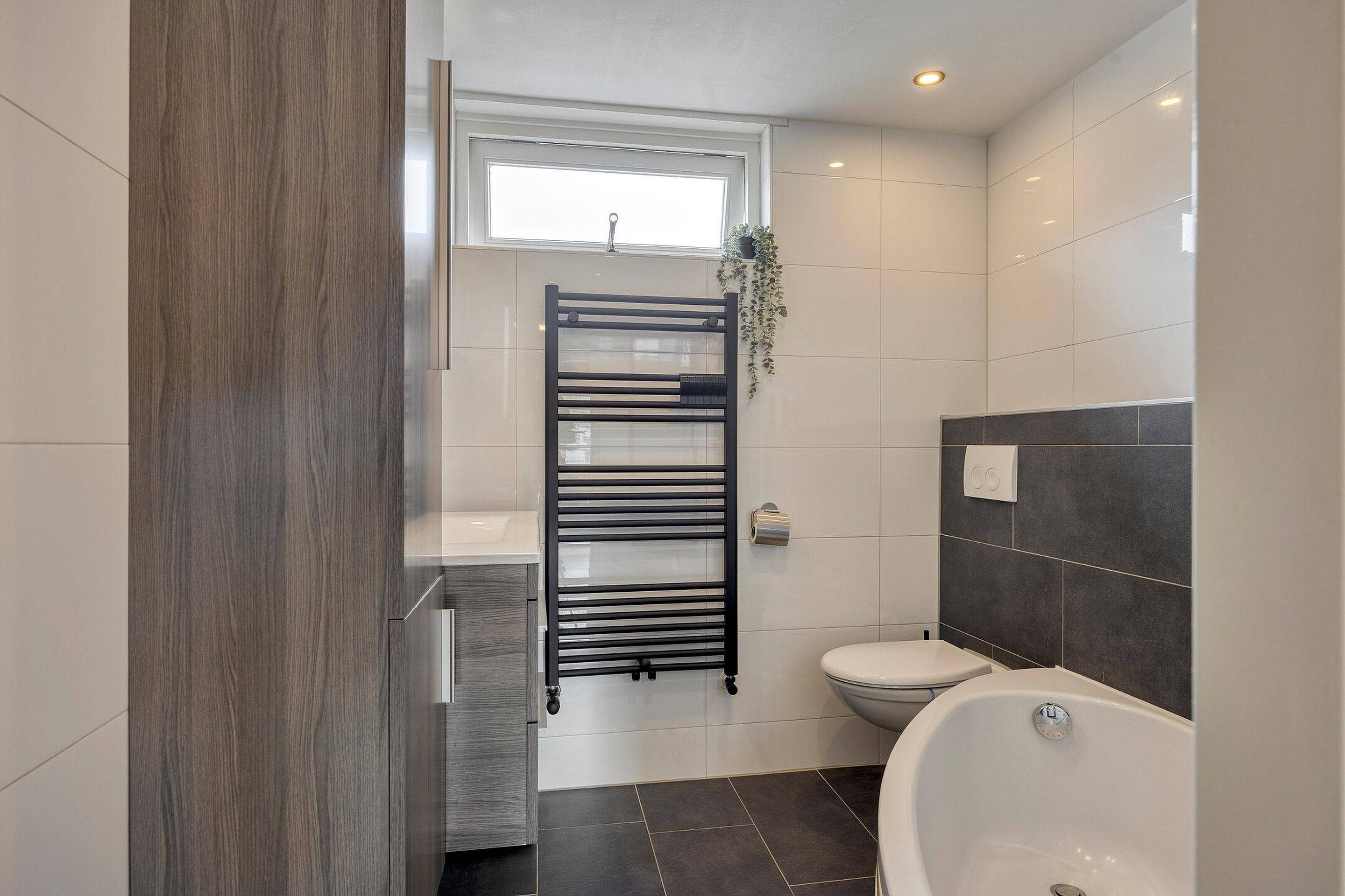 Op de eerste verdieping bevinden zich drie slaapkamers van goed formaat. De badkamer is uitgerust met een bad-douchecombinatie, wastafelmeubel en toilet. Ook is er een aparte ruimte waar wasapparatuur kan worden aangesloten. De ruimtes maken deze verdieping geschikt voor zowel een gezin als voor bijvoorbeeld een thuiswerkplek.