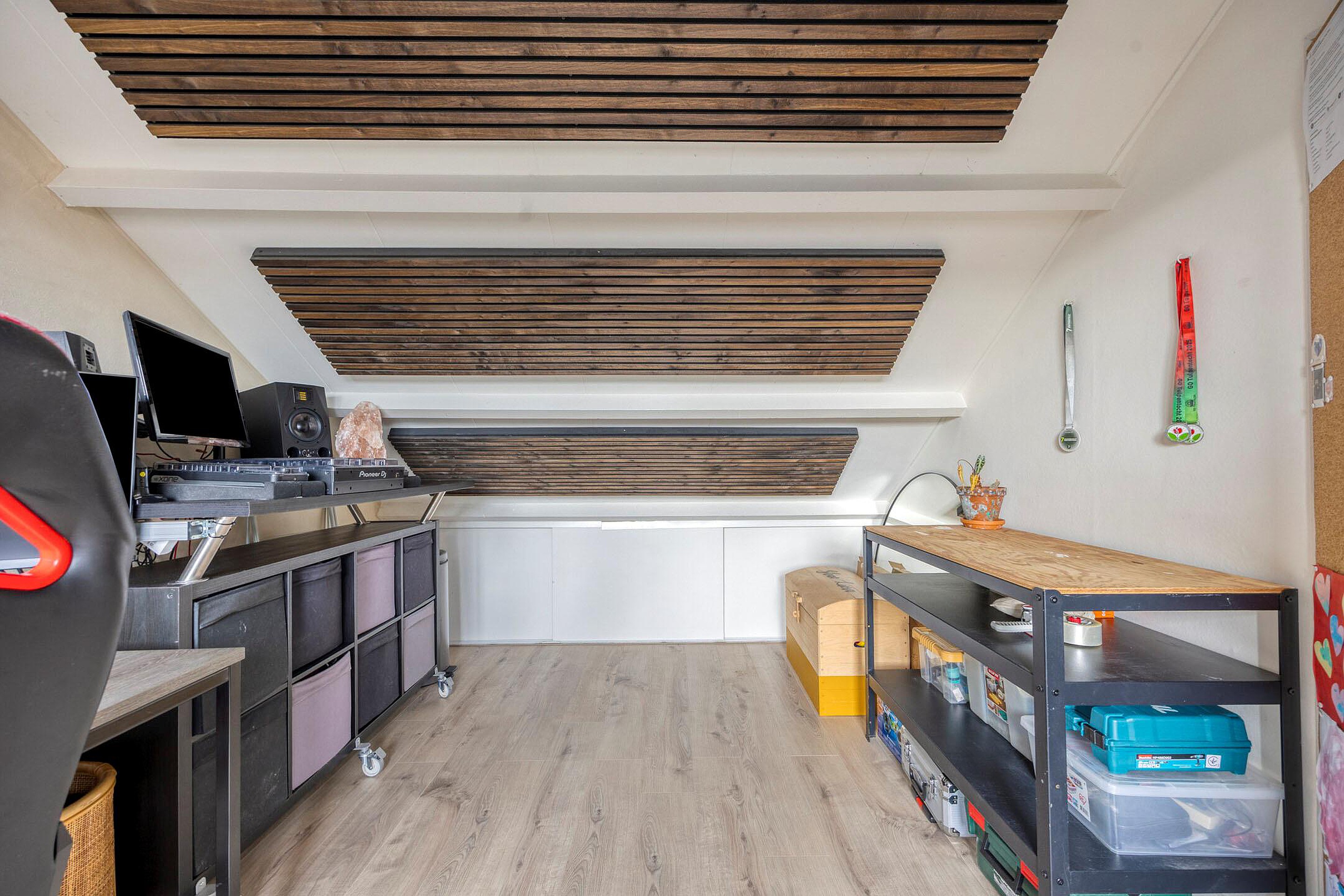 De zolderverdieping is bereikbaar via een vaste trap. Hier is een ruime zolderkamer aanwezig, dat door de dakkapel kan dienen als extra slaapkamer, werkruimte of hobbykamer. Daarnaast is er bergruimte onder de schuine kap.
