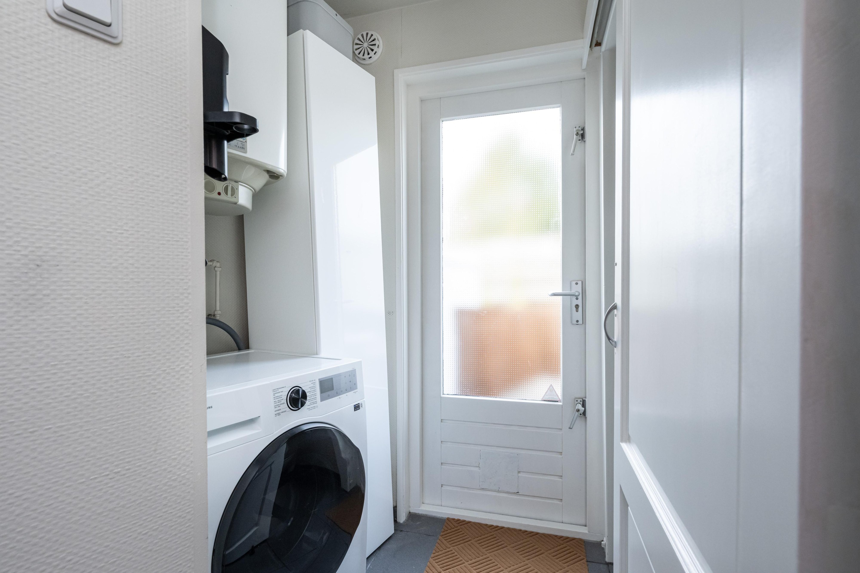 Plavuizenvloer, douchecabine, elektrische afzuiging, zwevend toilet, wastafel, elektrische handdoekenradiator, spots in plafond, witgoedaansluitingen, warm water boiler (80 liter) en toegang tot achterplaats.
