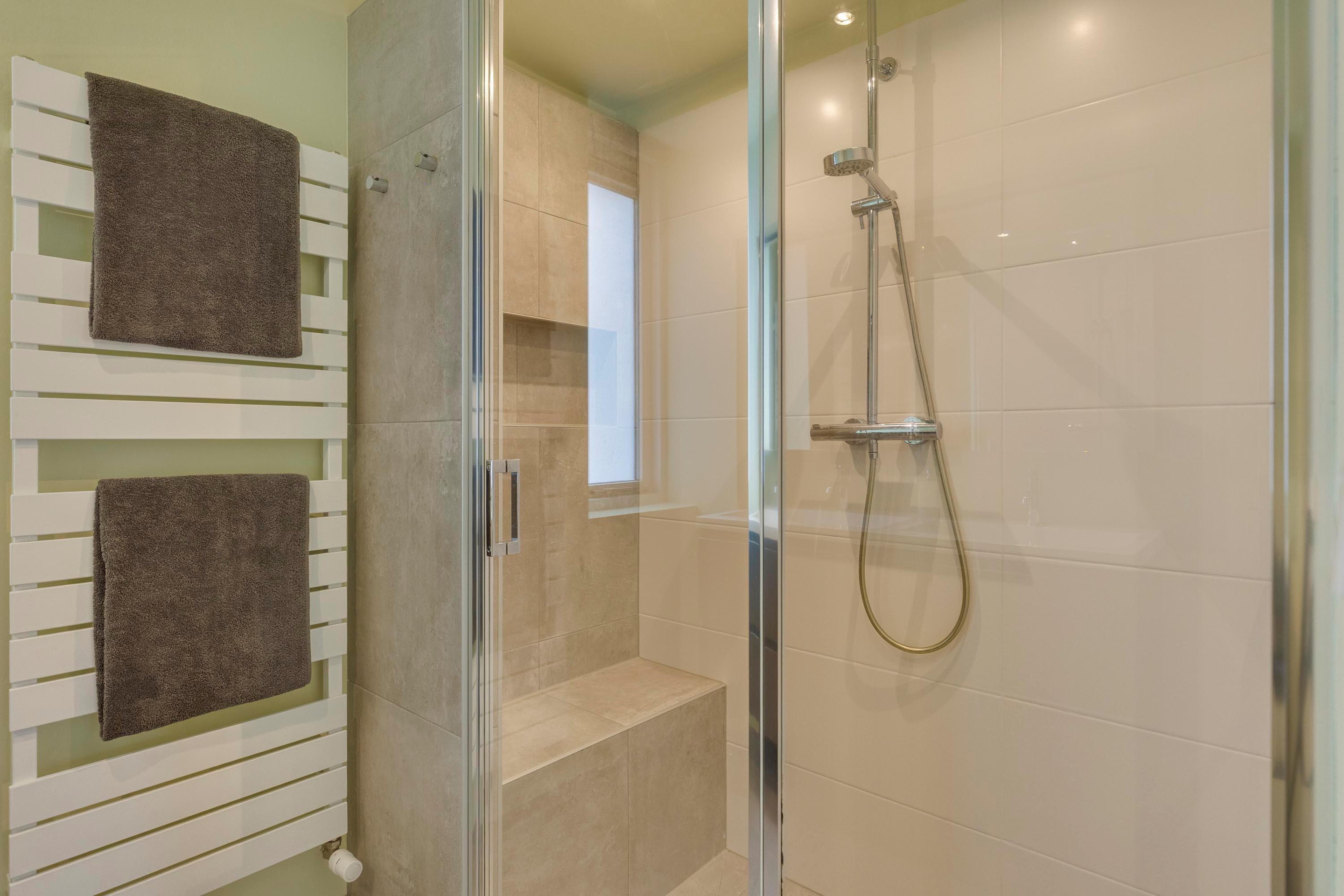 Hier beschikt u over drie ruime slaapkamers. Alle kamers zijn uitgerust met een nette radiatorombouw. Bij de slaapkamer aan de voorzijde is het raam voorzien van een hor en de slaapkamer aan achterzijde heeft een vaste schuifwandkast. De badkamer is modern en volledig betegeld (2018). U vindt hier een ruime inloopdouche, een badmeubel met spiegelkast en dubbele wastafel, een handdoekradiator en inbouwspotjes. De separate toiletruimte is voorzien van een vrijdragend toilet en inbouwspot.