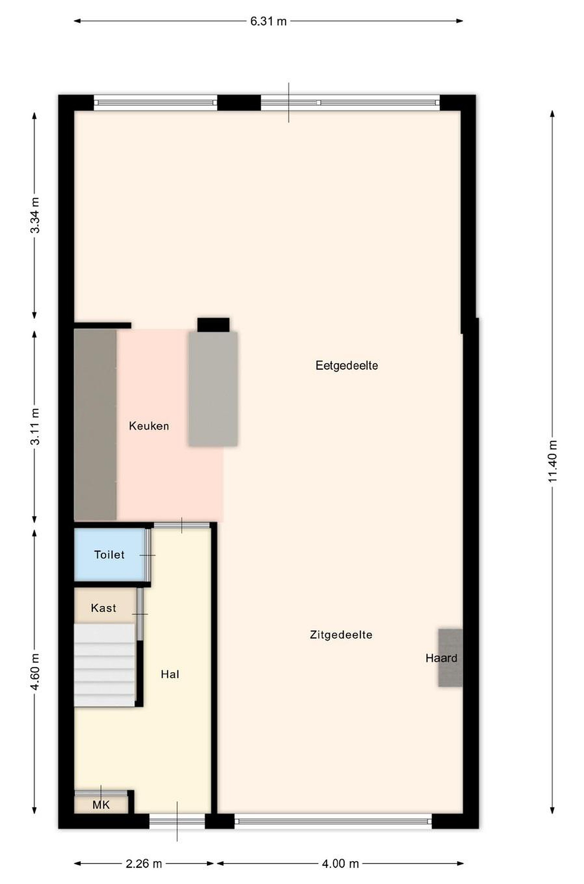 - Over de volle breedte uitgebouwd aan de achterzijde.