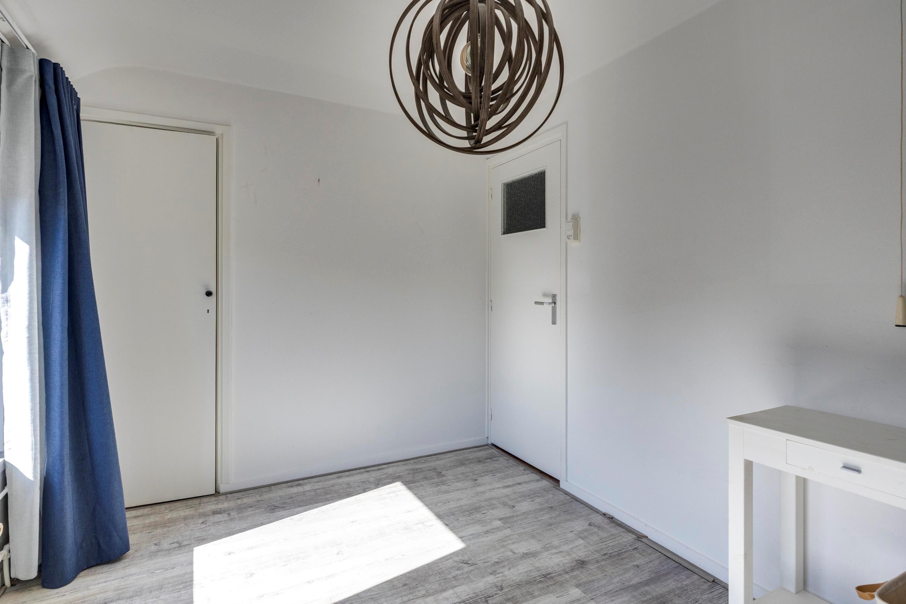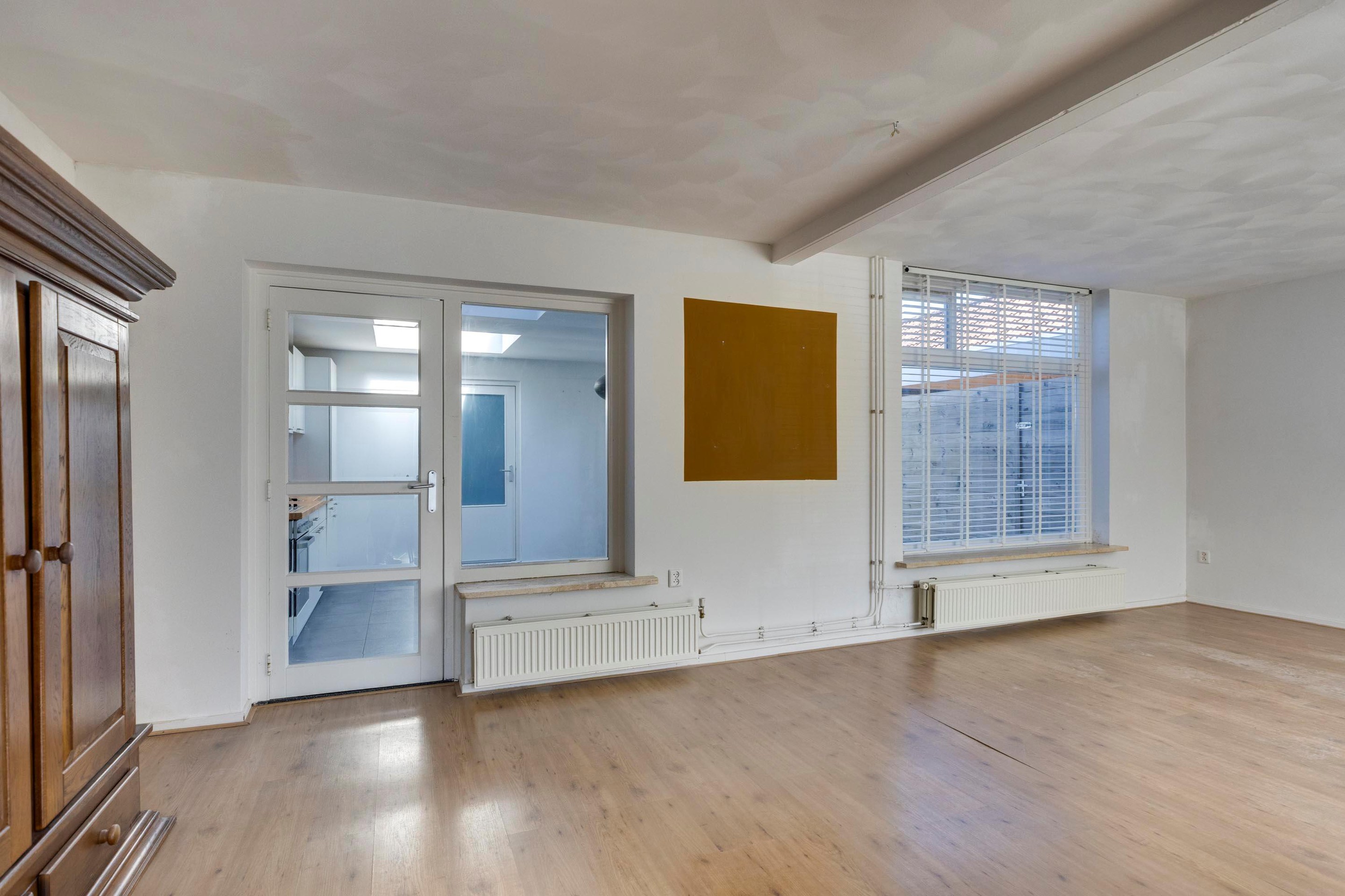 Begane grond De verzorgde voortuin geeft toegang tot de entree. U komt binnen in de ontvangsthal met tegelvloer, gestucte wanden/plafond en de trapopgang naar de verdieping. Hier bevinden zich tevens de meterkast en een deels betegelde toiletruimte met een vrijdragend toilet. De woonkamer in L-vorm, voorzien van een laminaatvloer en stucwerk wanden/plafond. Dankzij de diverse raampartijen, waaronder een extra zijgevelraam, geniet u hier van een prettige lichtinval. Aan de achterzijde is de woning uitgebouwd, waardoor een royale woonkeuken is ontstaan. Deze ruimte is afgewerkt met een tegelvloer, strak stucwerk en heeft veel lichtinval dankzij twee