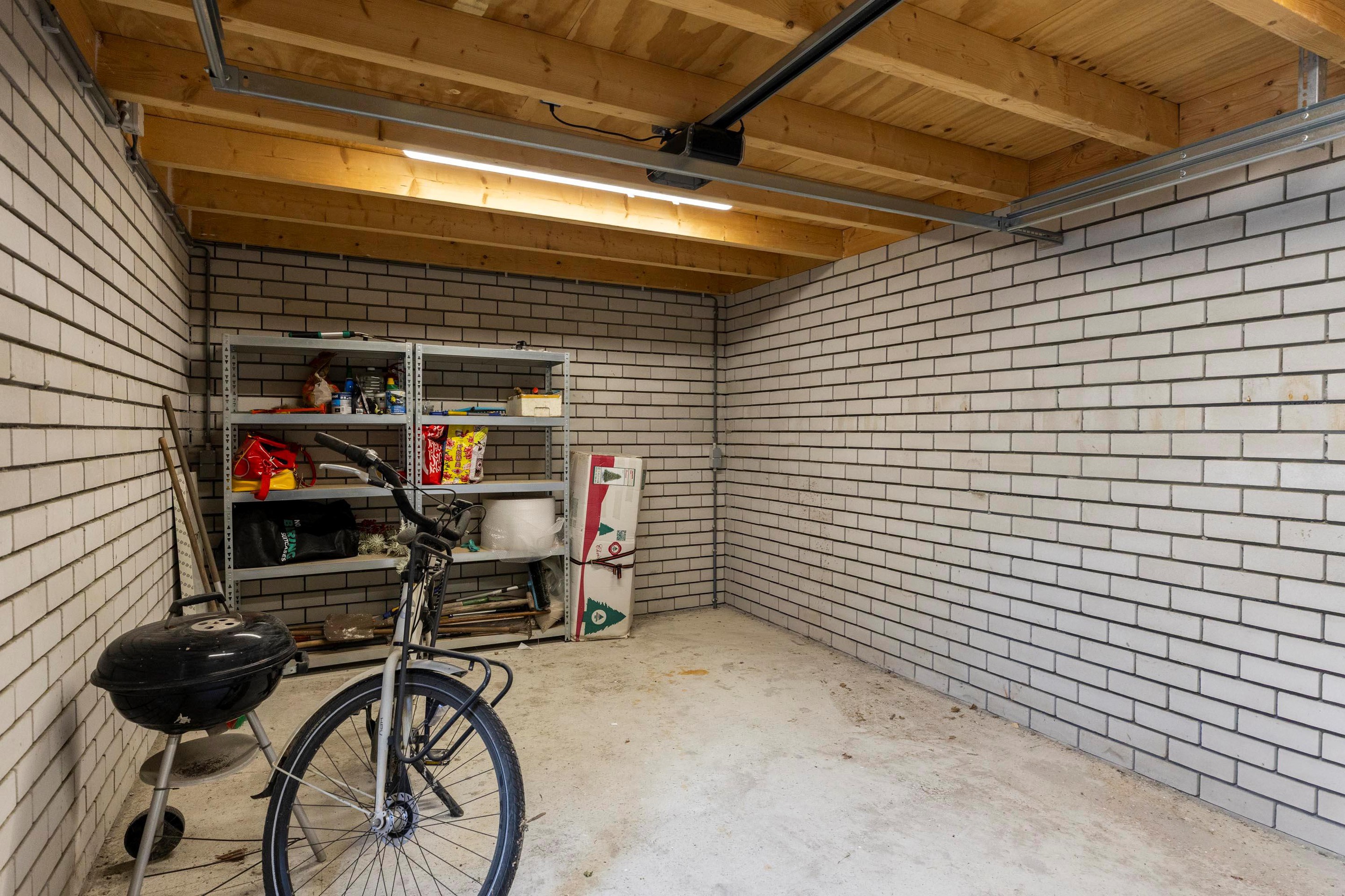 De garage is voorzien van elektra, een loopdeur naar de tuin en een elektrisch bedienbare sectionaaldeur. Aansluitend bevindt zich de carport, en extra ruimte voor het parkeren van meerdere auto’s.
