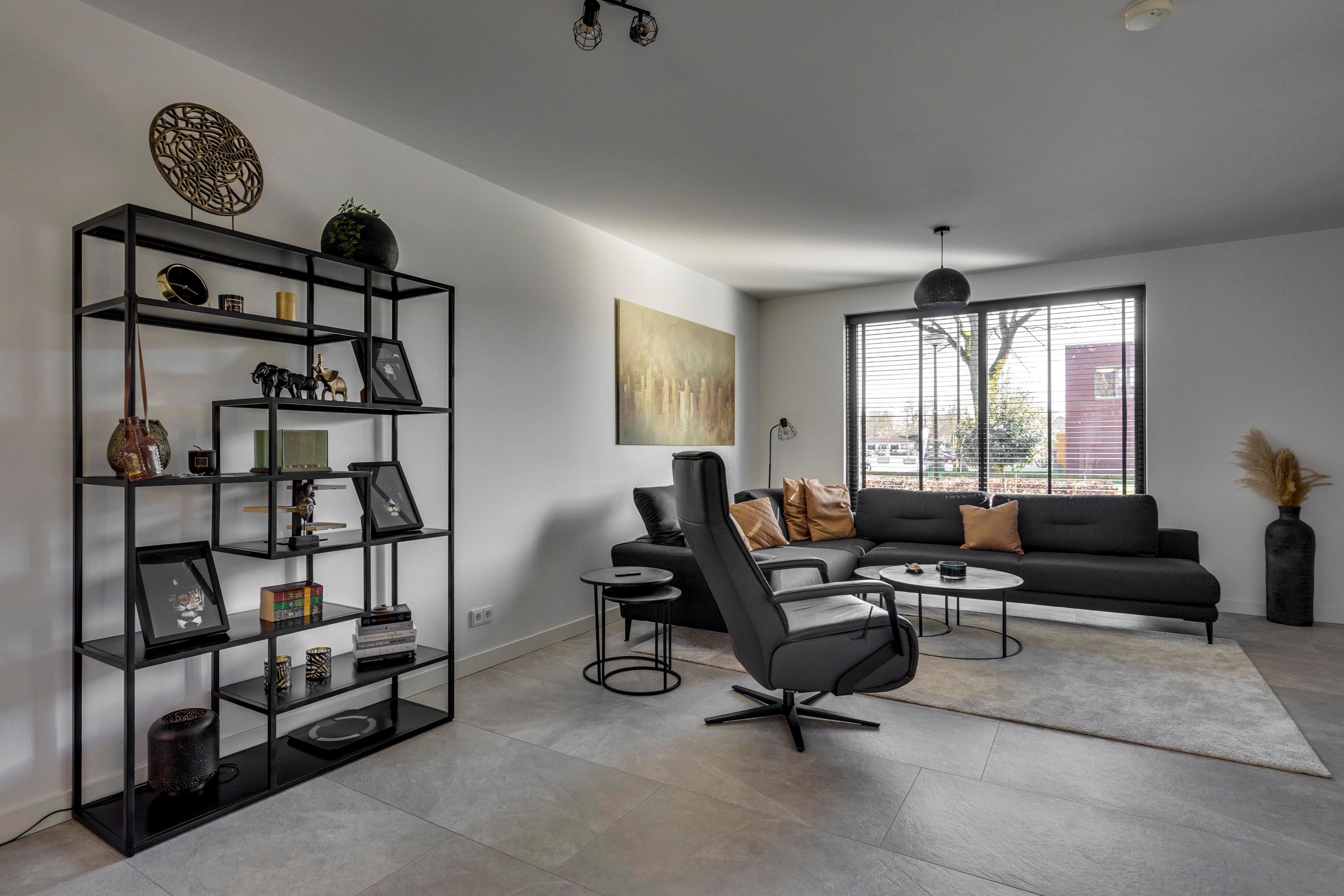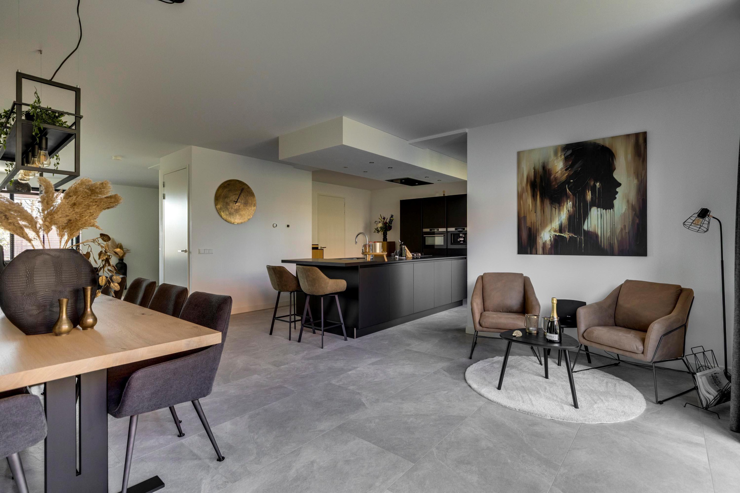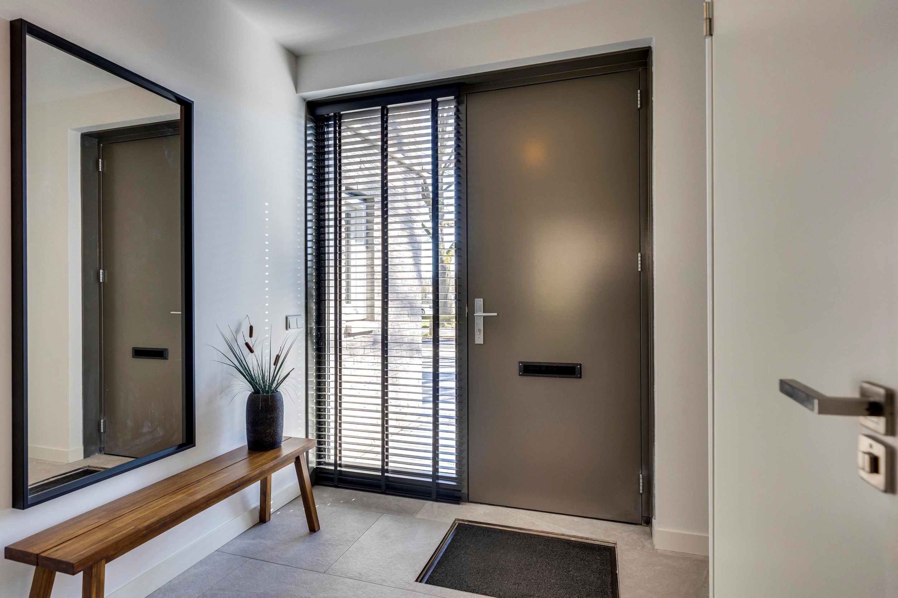 Via de ruime oprit, met plaats voor twee auto’s, bereikt u de verzorgde entree van de woning. Binnen wordt u direct verrast door de hoogwaardige afwerking. De gehele begane grond is voorzien van een moderne tegelvloer met comfortabele vloerverwarming, strak gestucte wanden en stijlvolle hoge plinten. De deels aangebrachte akoestische wandpanelen zorgen niet alleen voor een luxe uitstraling, maar dragen ook bij aan een aangename leefomgeving.