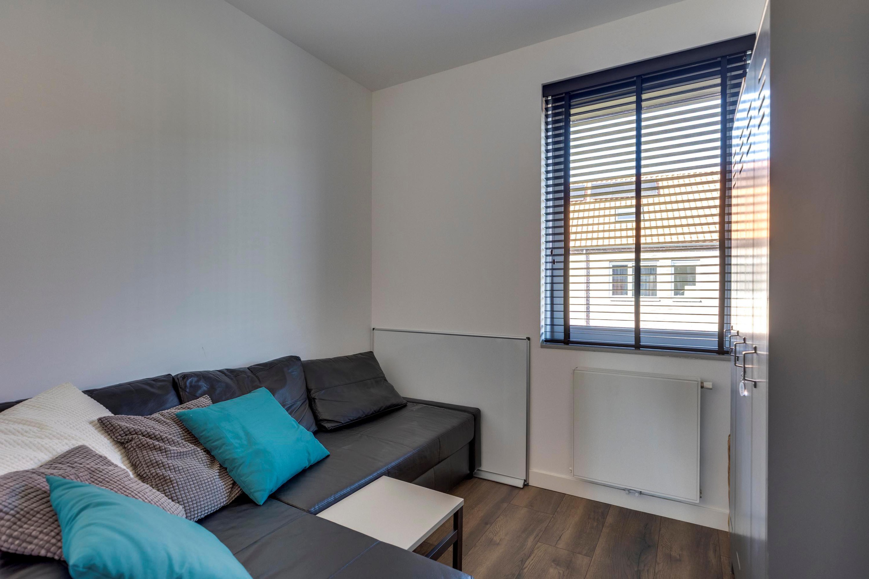 De twee slaapkamers aan de achterzijde zijn eveneens keurig afgewerkt en bieden volop mogelijkheden als kinder-, werk- of logeerkamer. Ook hier vindt u dezelfde hoogwaardige afwerking met laminaatvloer, hoge plinten, strak stucwerk en gedeeltelijk akoestische panelen.