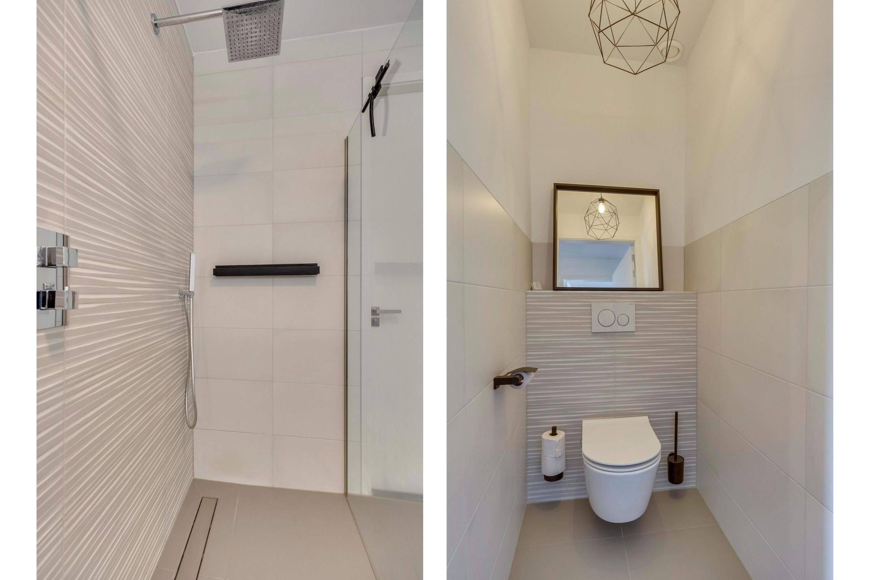 De moderne badkamer is volledig betegeld en straalt luxe en comfort uit. U beschikt hier over een royale inloopdouche, een dubbele wastafel met stijlvol badmeubel. De elektrische vloerverwarming zorgt voor extra comfort, terwijl de verwarmde en verlichte spiegel, samen met de handdoekenradiator, het geheel compleet maken. Daarnaast is er op deze verdieping nog een separate toiletruimte aanwezig, deels betegeld en voorzien van een vrijdragend toilet.