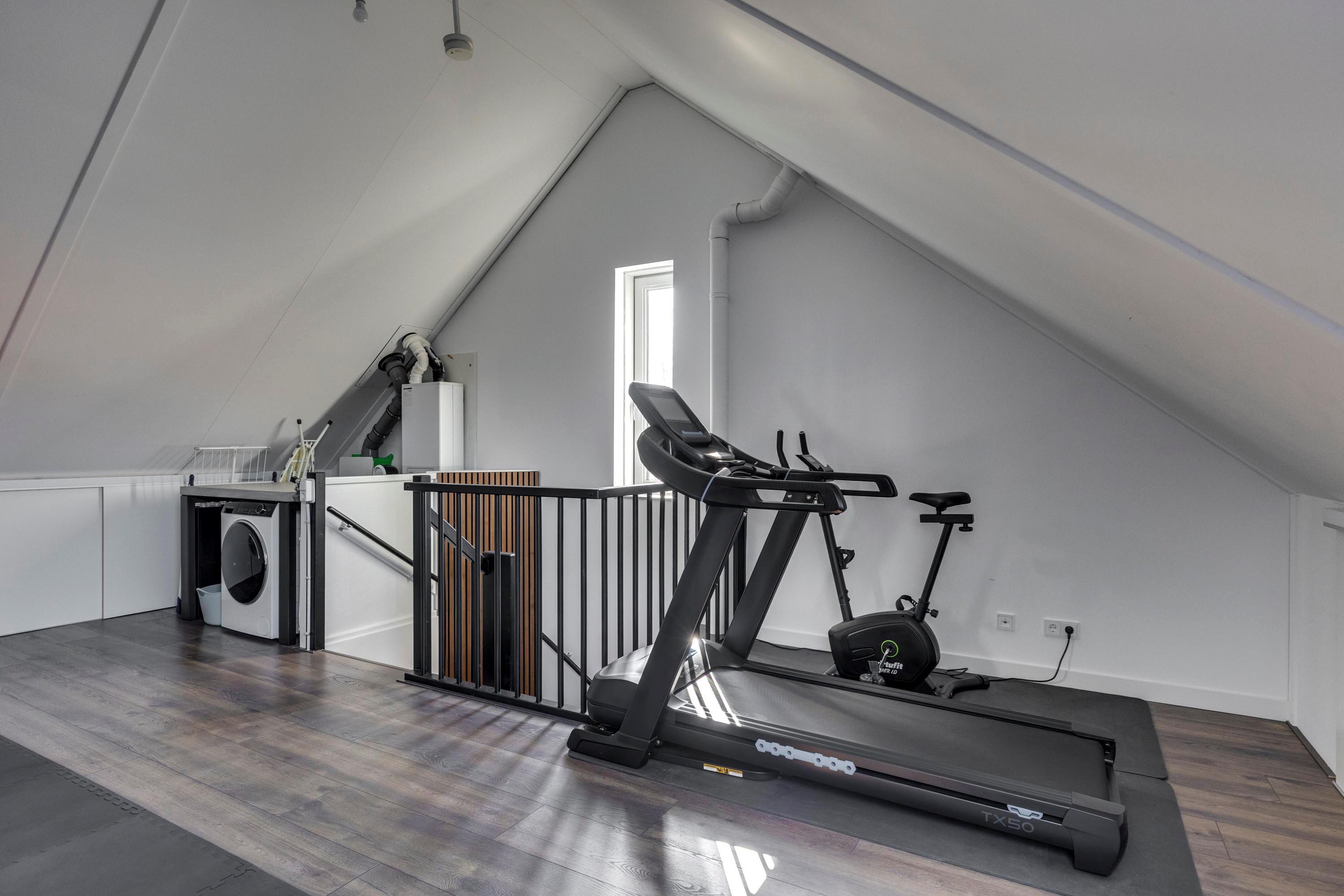 Aan beide zijden is praktische bergruimte aanwezig achter de knieschotten. Tevens vindt u hier de opstelling van de HR-combiketel (Intergas, 2019), de mechanische ventilatie-unit, omvormer t.b.v. de zonnepanelen en de aansluitingen voor uw wasapparatuur. Een veelzijdige verdieping die zich uitstekend leent als werk-/hobbyruimte, extra slaapkamer of beiden.