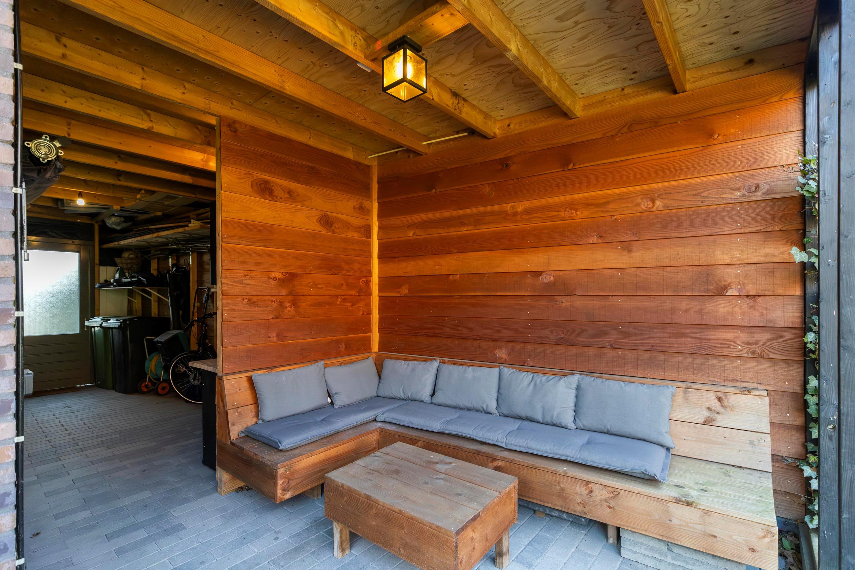 De tuin is met zorg aangelegd en biedt volop mogelijkheden om te genieten. Met maar liefst drie terrassen – waaronder een sfeervol overdekt terras – is er altijd wel een plek in de zon of schaduw te vinden. Aansluitend aan het overdekte terras bevindt zich de houten berging v.v. elektra en een deur naar de oprit (achterom).