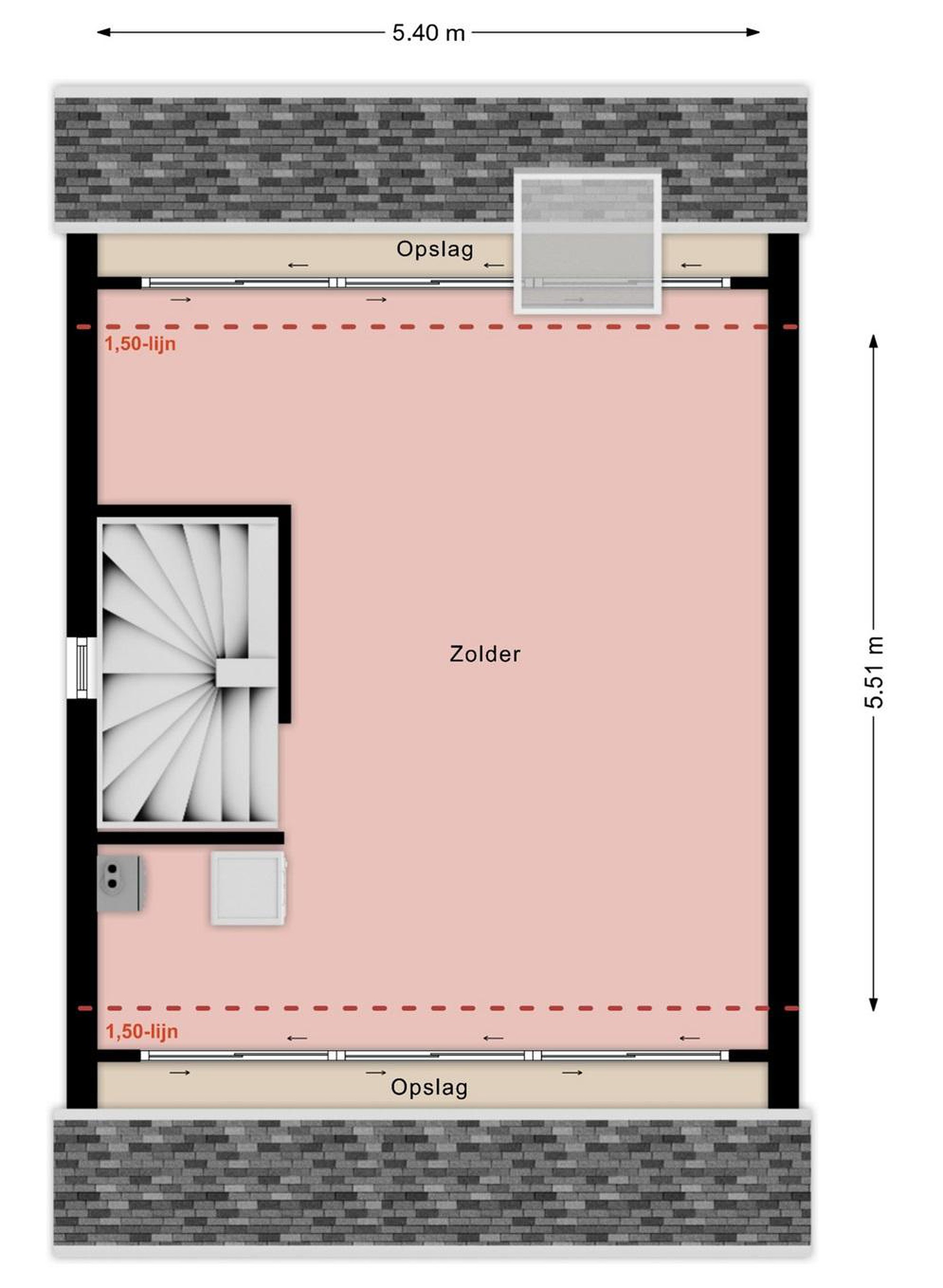 De zolderverdieping vormt een volwaardige en verrassend ruime extra woonlaag. U treft hier één grote open ruimte die, net als de rest van de woning, keurig is afgewerkt met een laminaatvloer, hoge plinten en stucwerk. Dankzij het extra zijgevelraam en het Velux dakvenster geniet u van prettig daglicht.