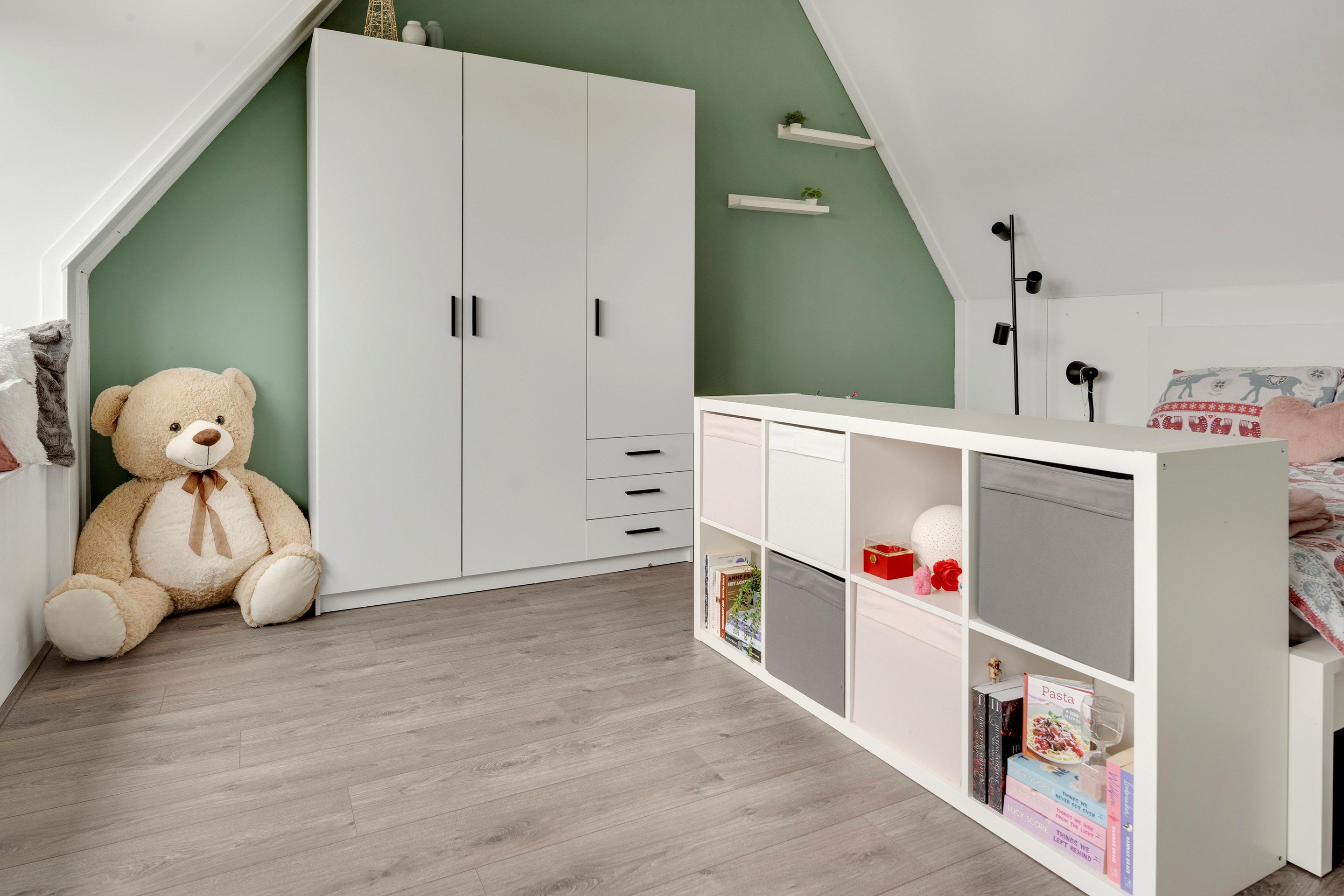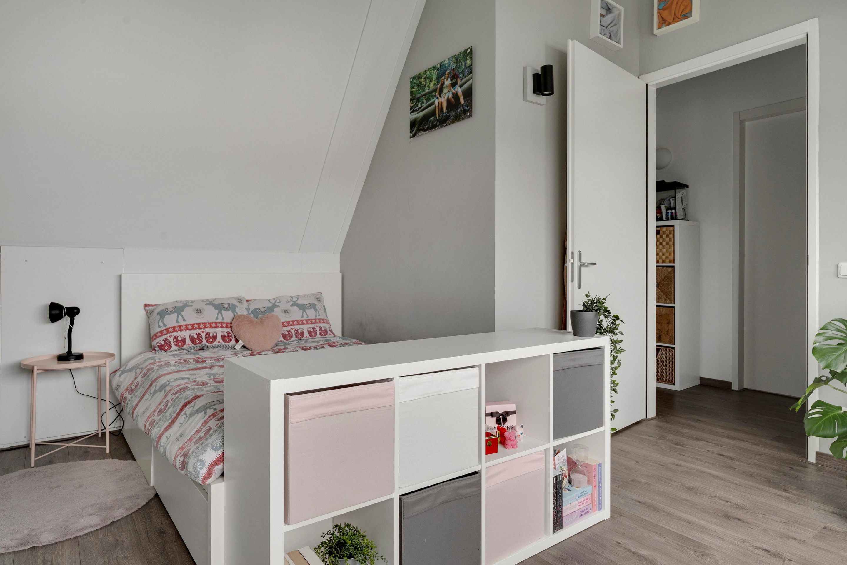 Tweetal grote slaapkamers waarvan één met dakkapel en één met een tweetal dakramen.